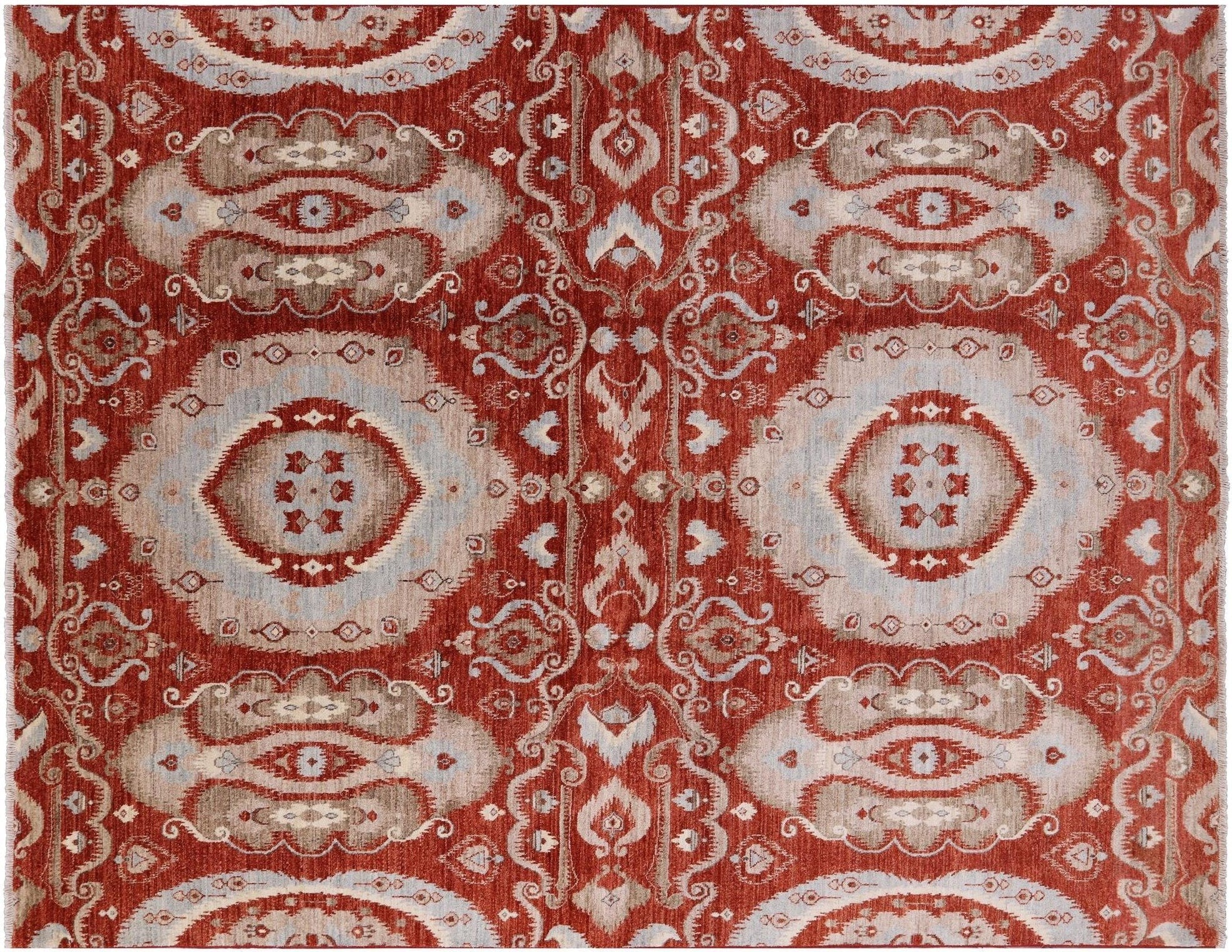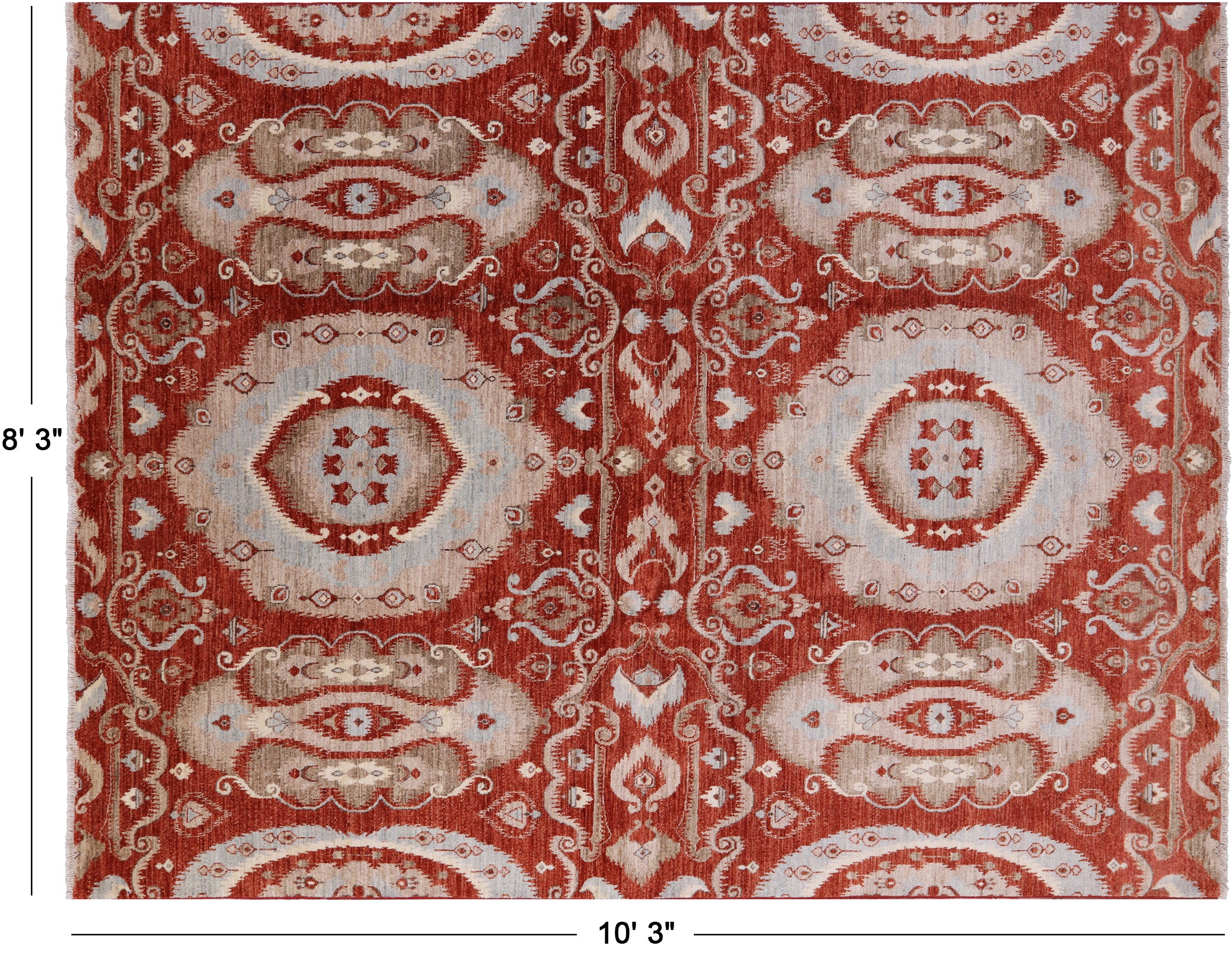 Red 8' 3" X 10' 3" Ikat Hand Knotted Wool Rug - H5960