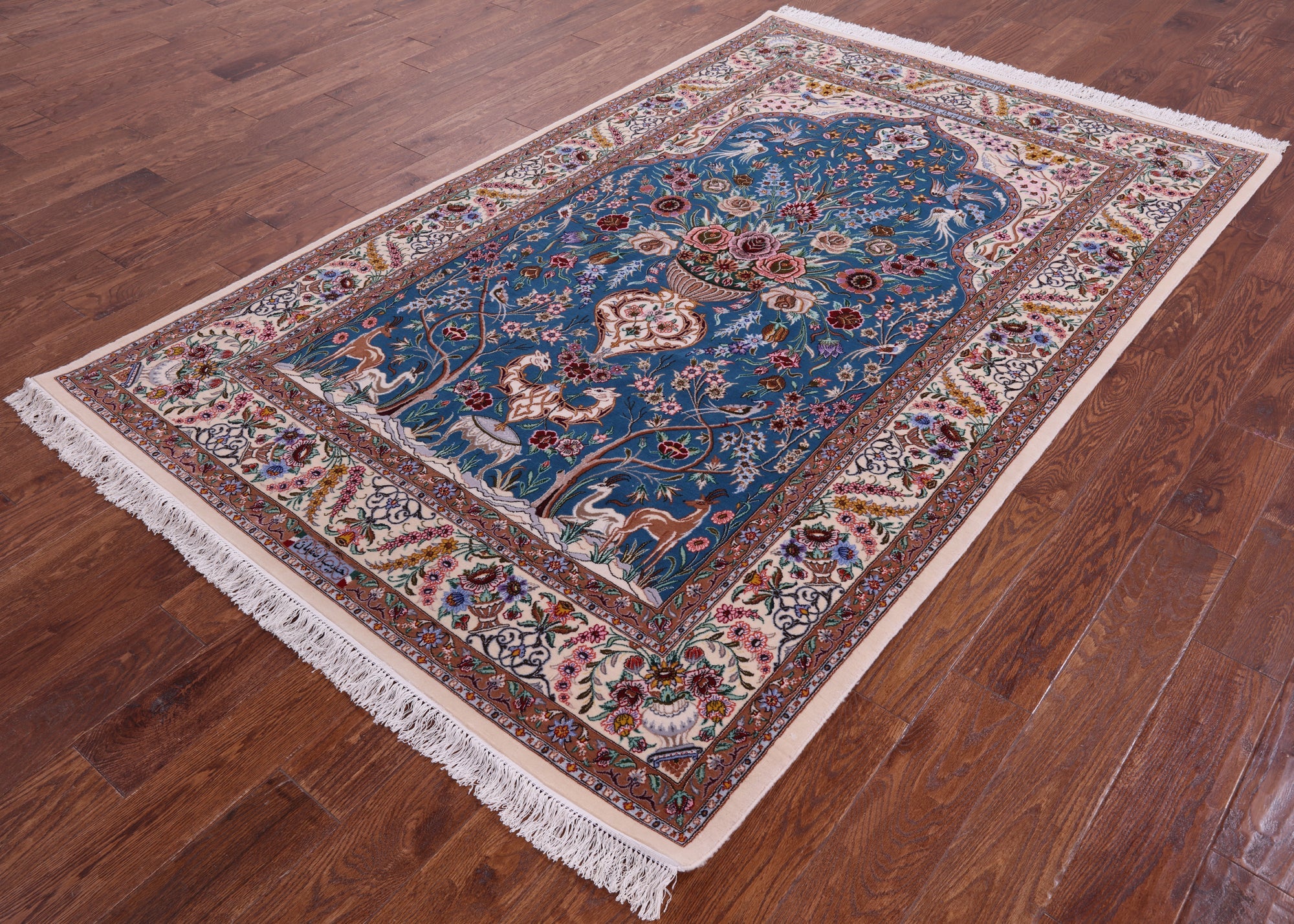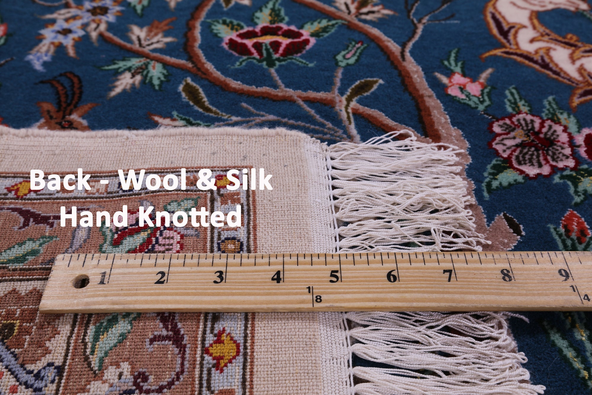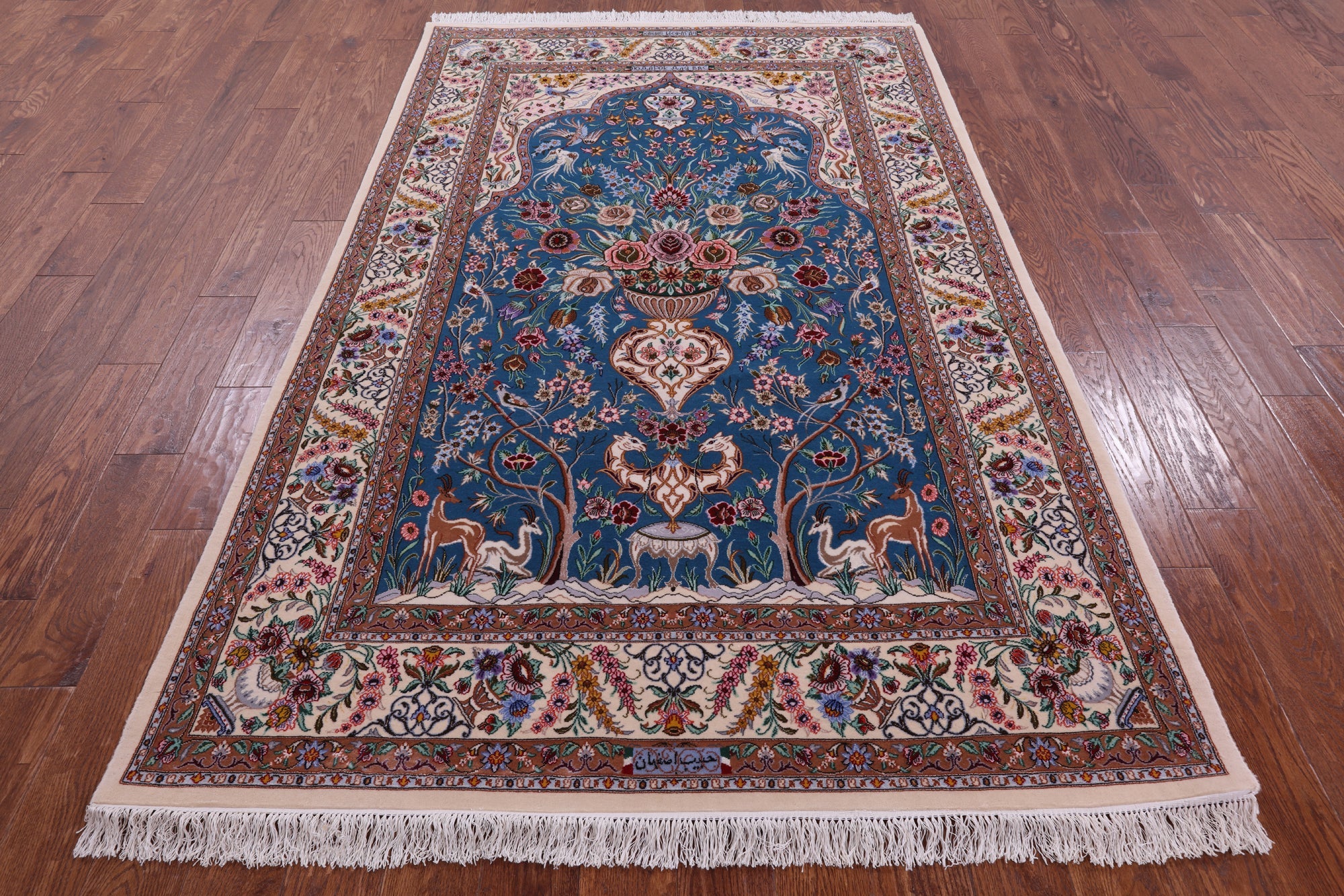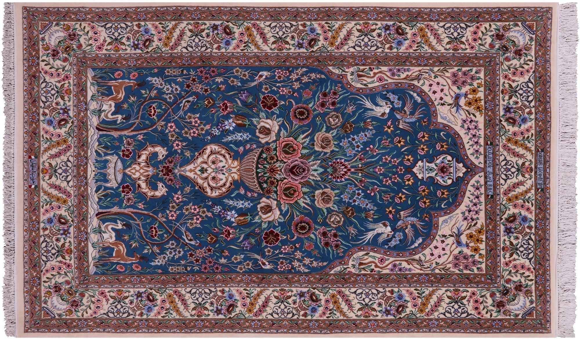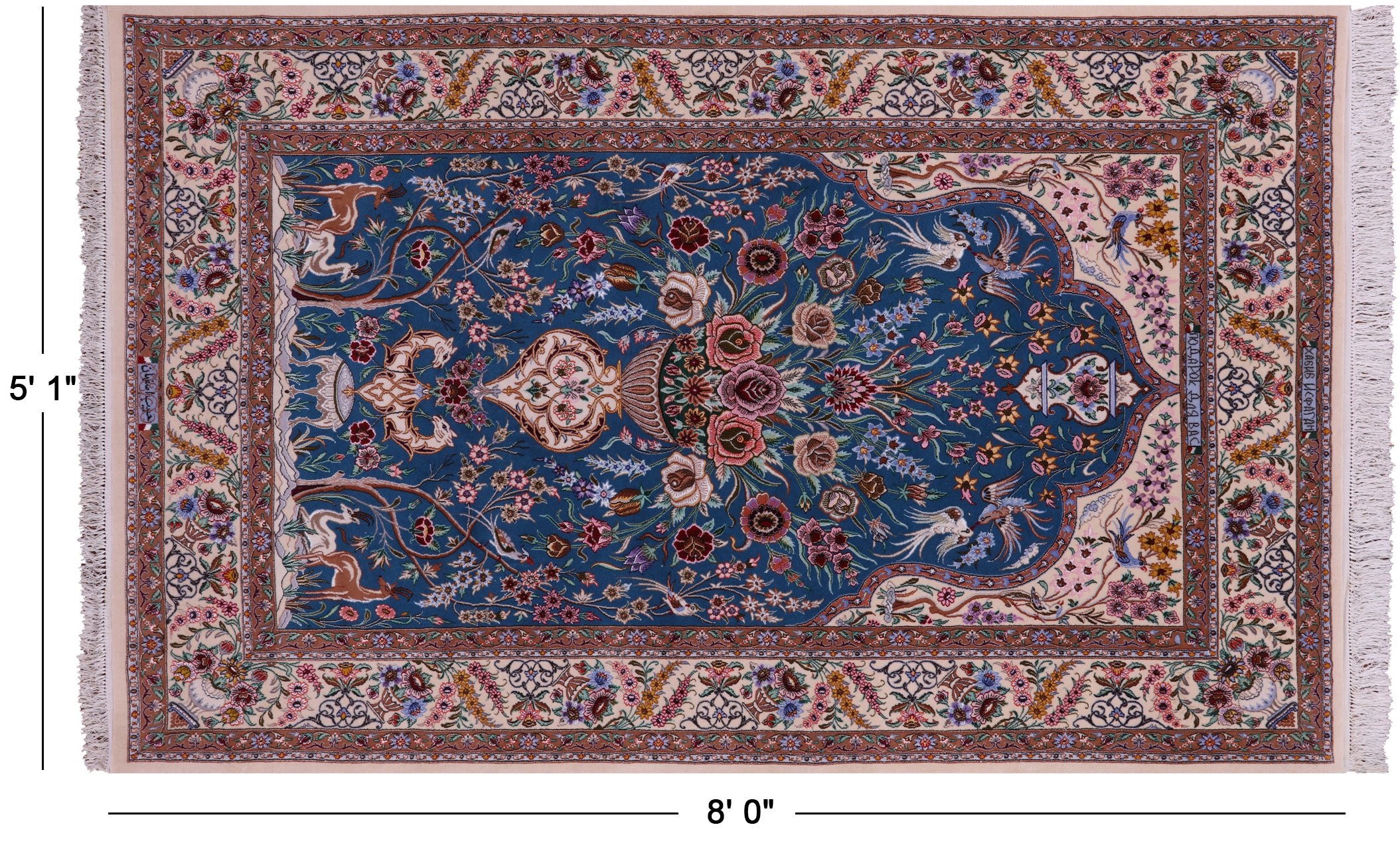 Blue Hand Knotted Wool & Silk Persian Signed Isfahan Area Rug 5' 1" X 8' 0" - SA2701