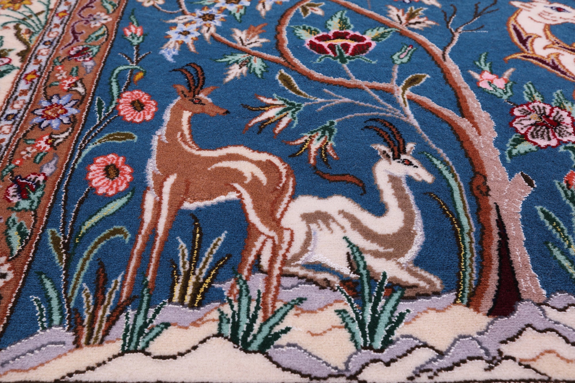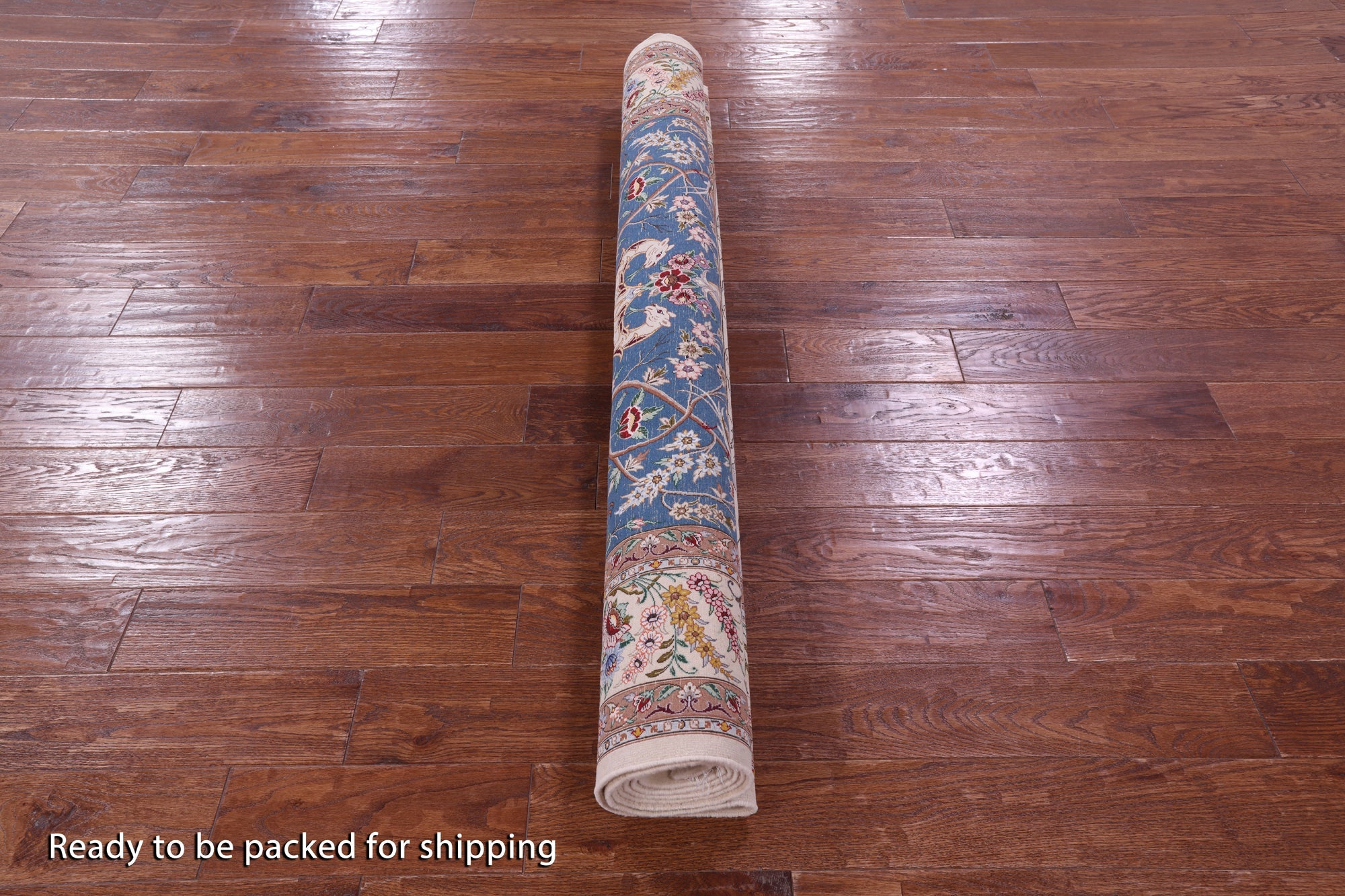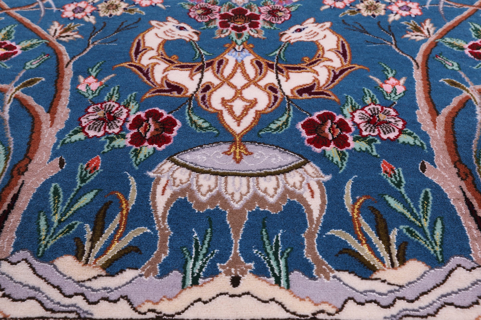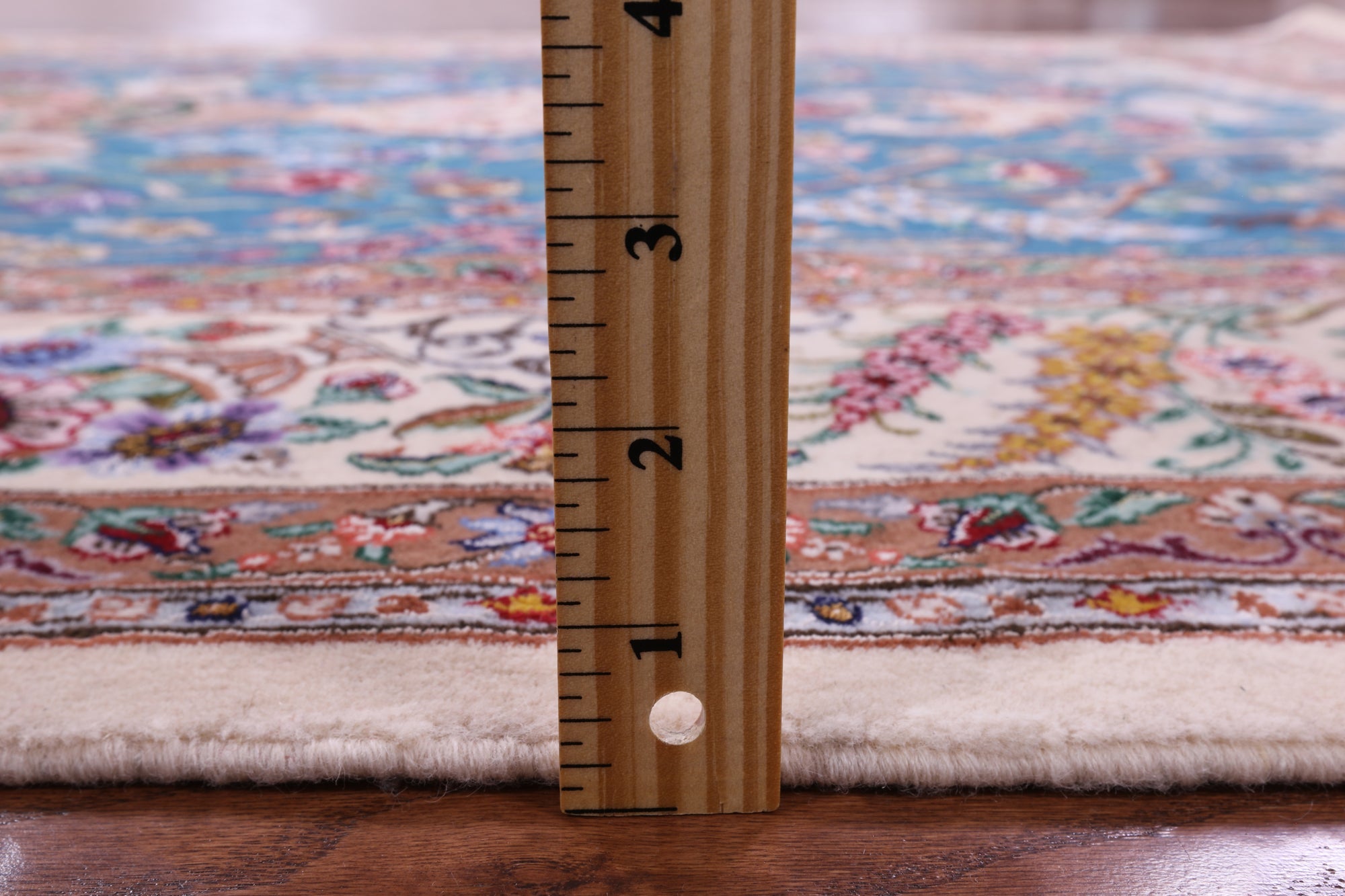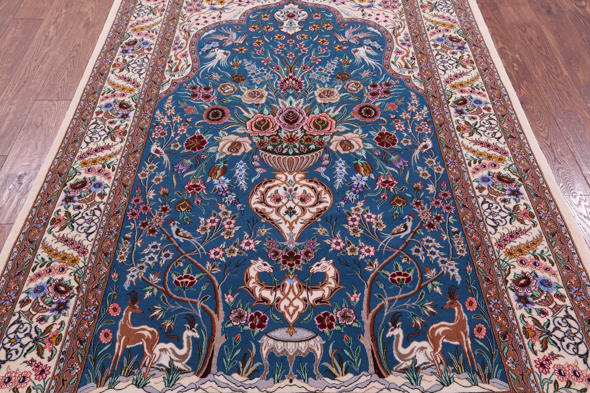 Blue Hand Knotted Wool & Silk Persian Signed Isfahan Area Rug 5' 1" X 8' 0" - SA2701