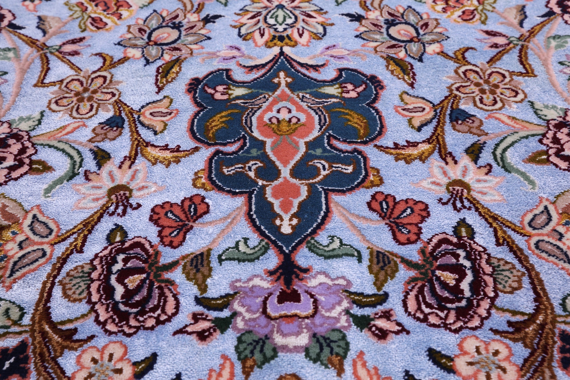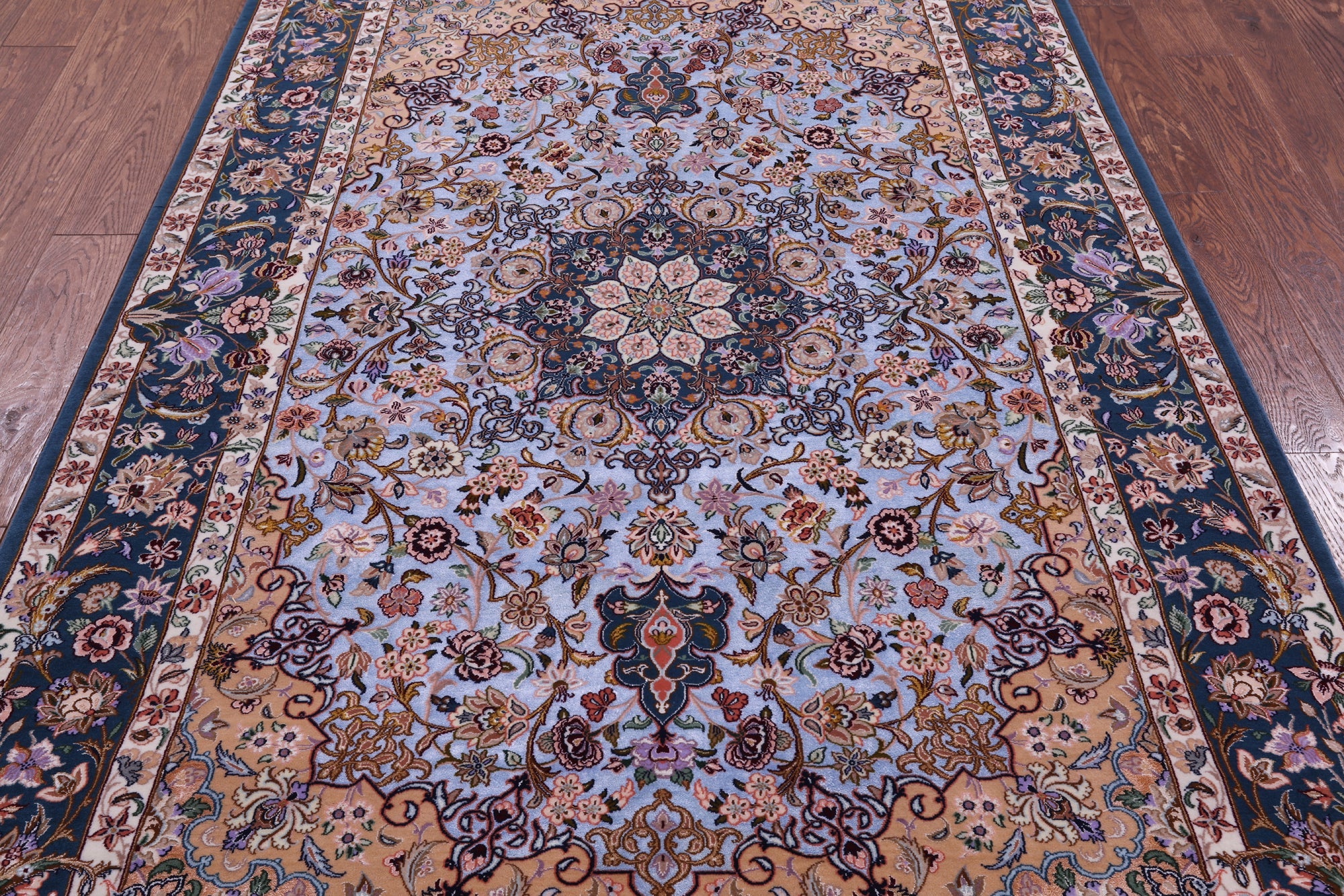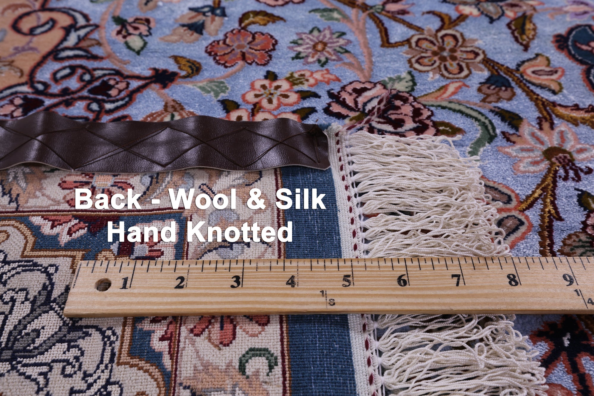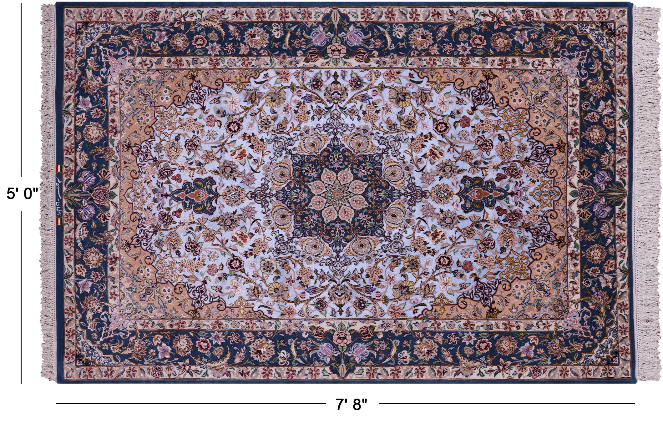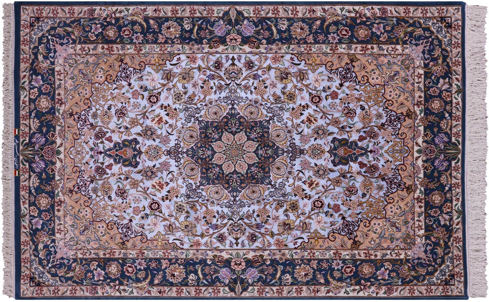 Blue 5' 0" X 7' 8" Super Fine Signed Persian Isfahan Hand Knotted Wool & Silk Rug - SA2686