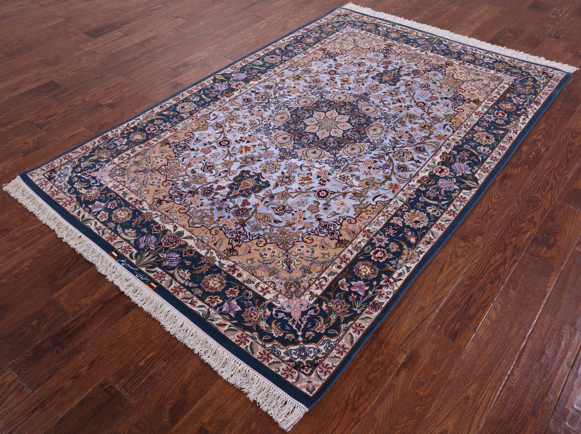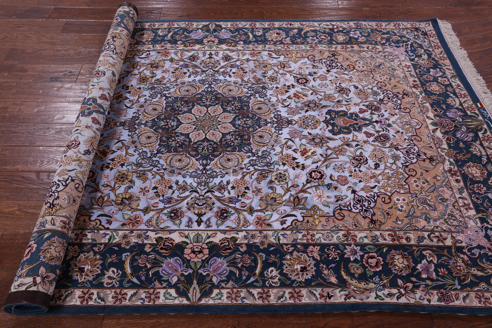 Blue 5' 0" X 7' 8" Super Fine Signed Persian Isfahan Hand Knotted Wool & Silk Rug - SA2686 is backordered and will ship as soon as it is back in stock.