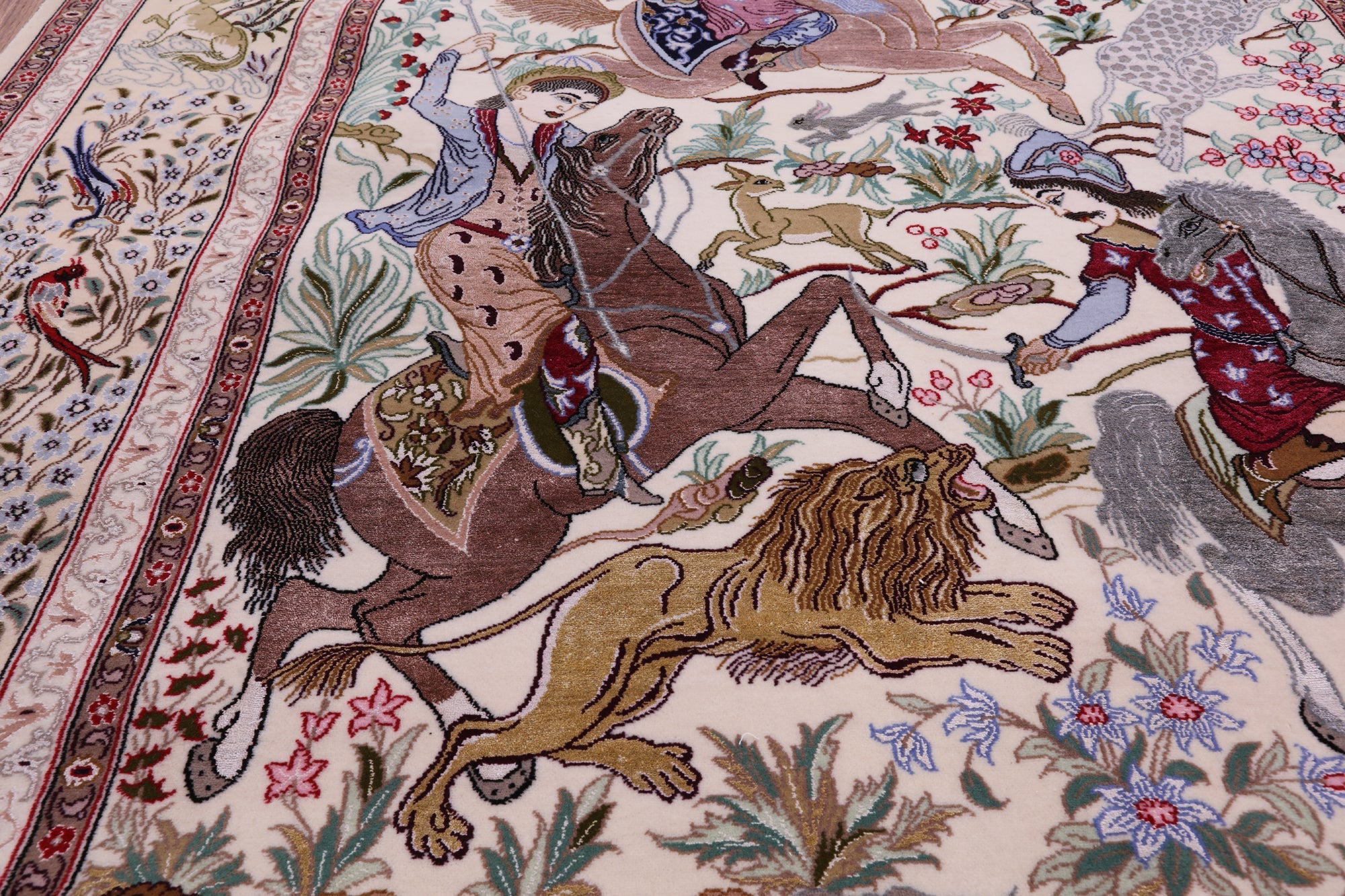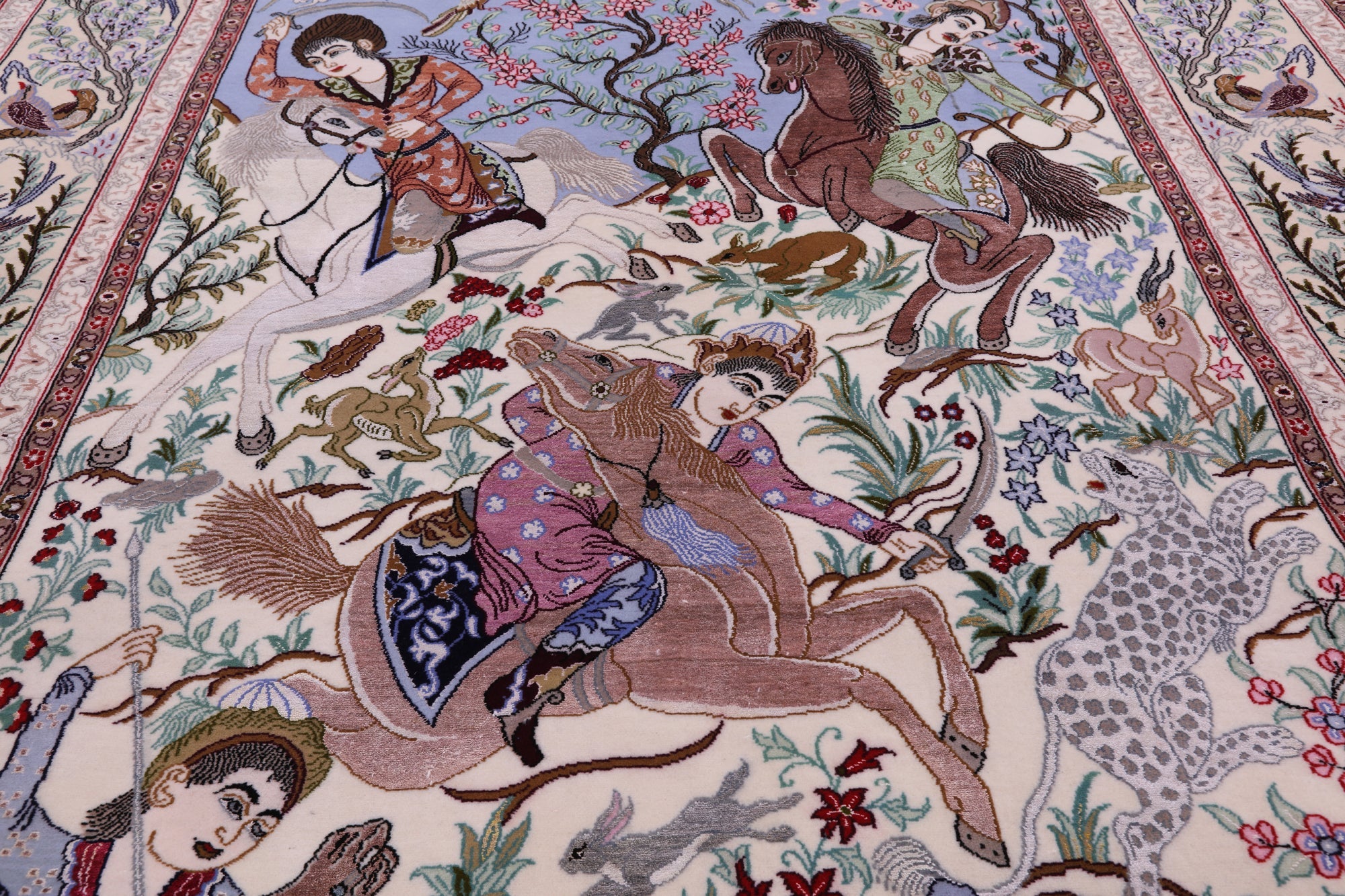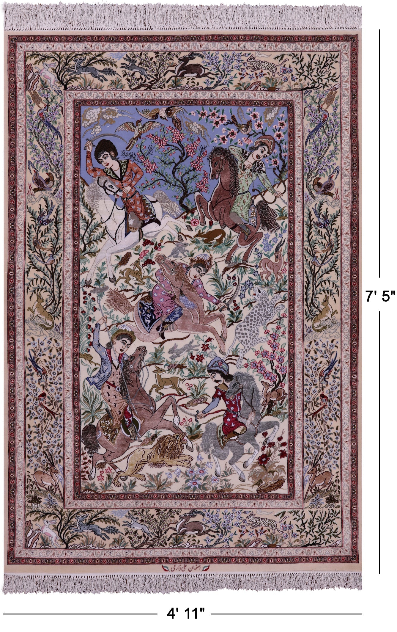 4' 11" X 7' 5" Hand Knotted Wool & Silk Signed Persian Isfahan Hunting Scene Rug - SA2706 is backordered and will ship as soon as it is back in stock.