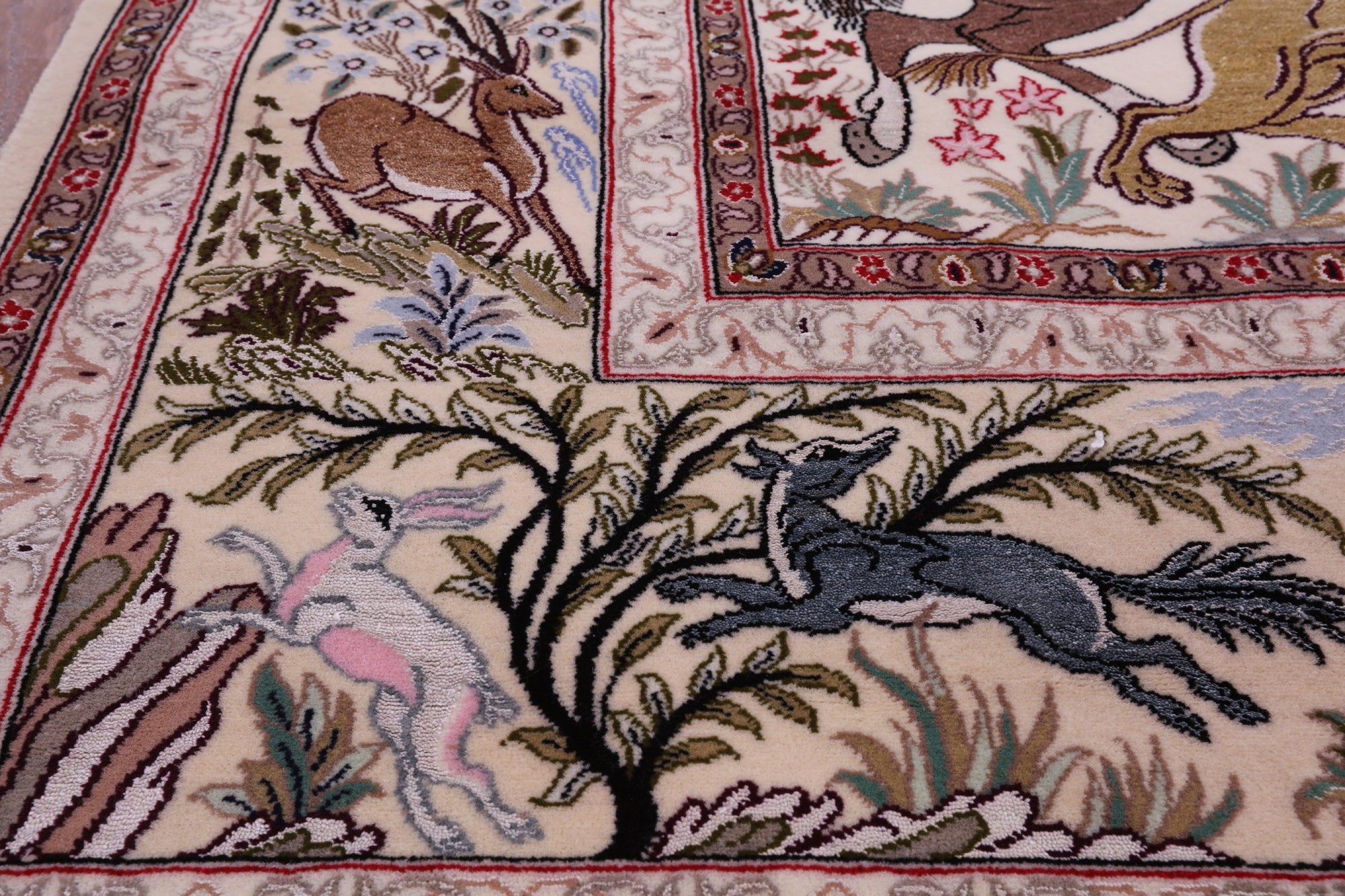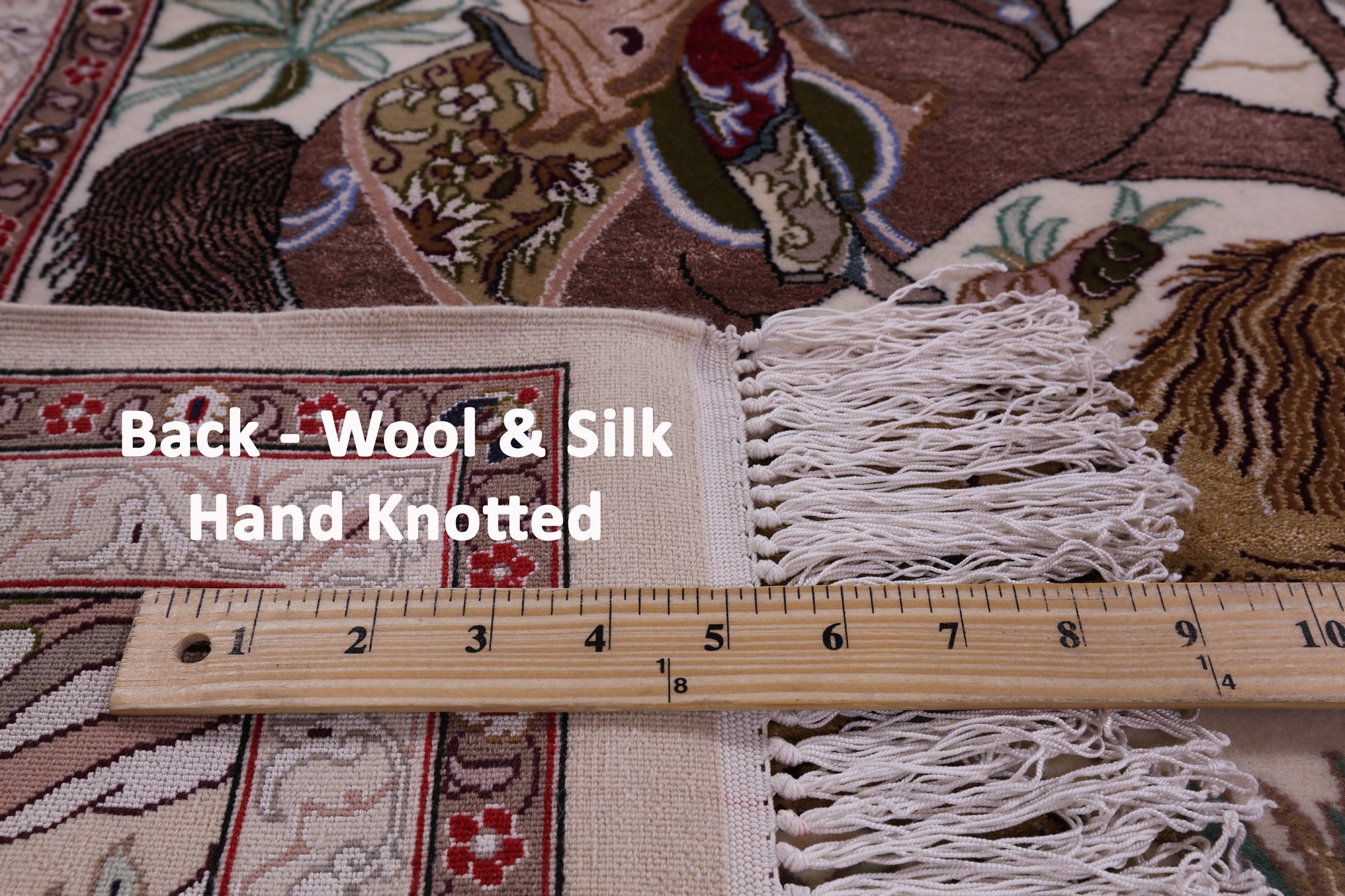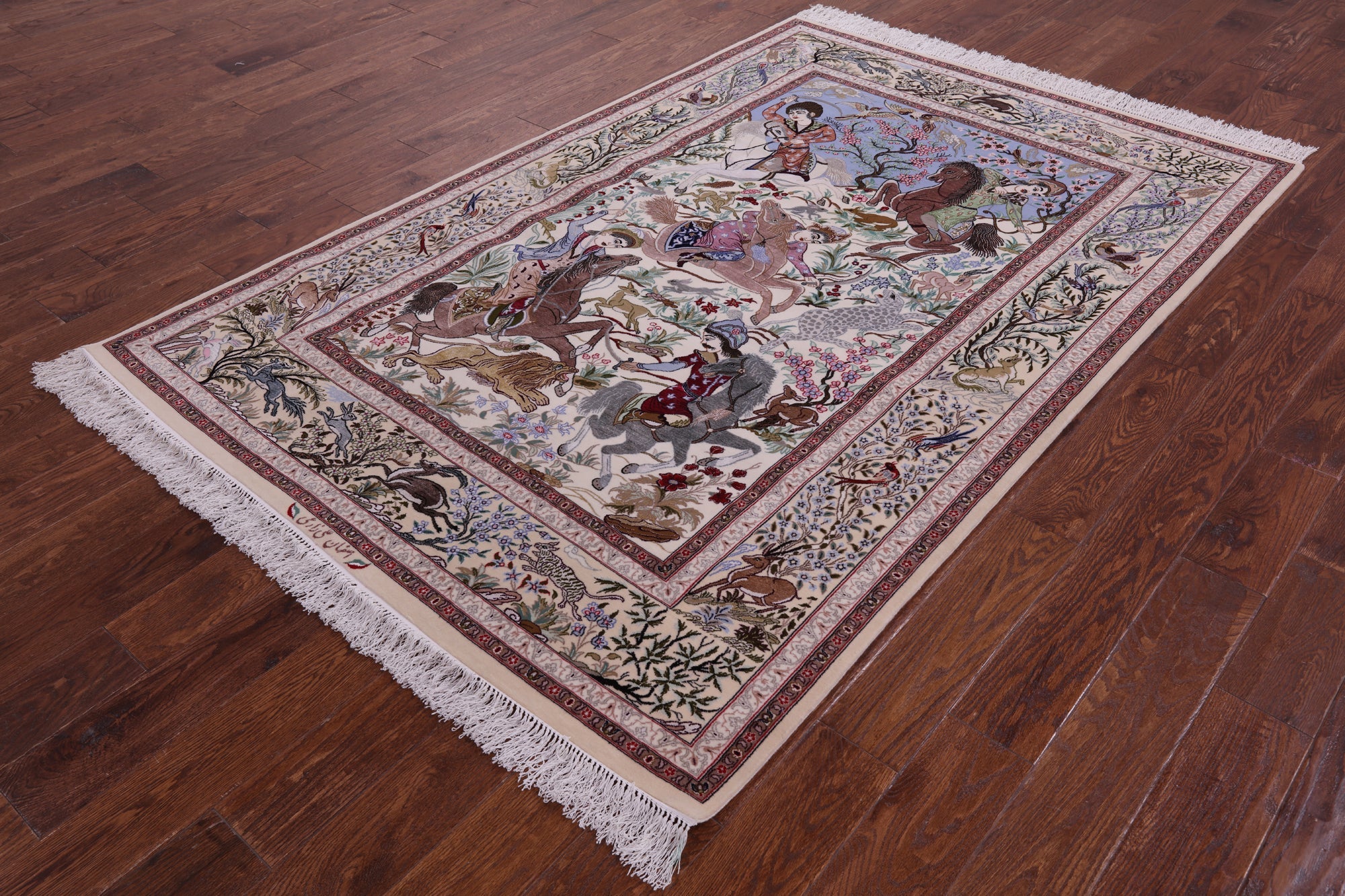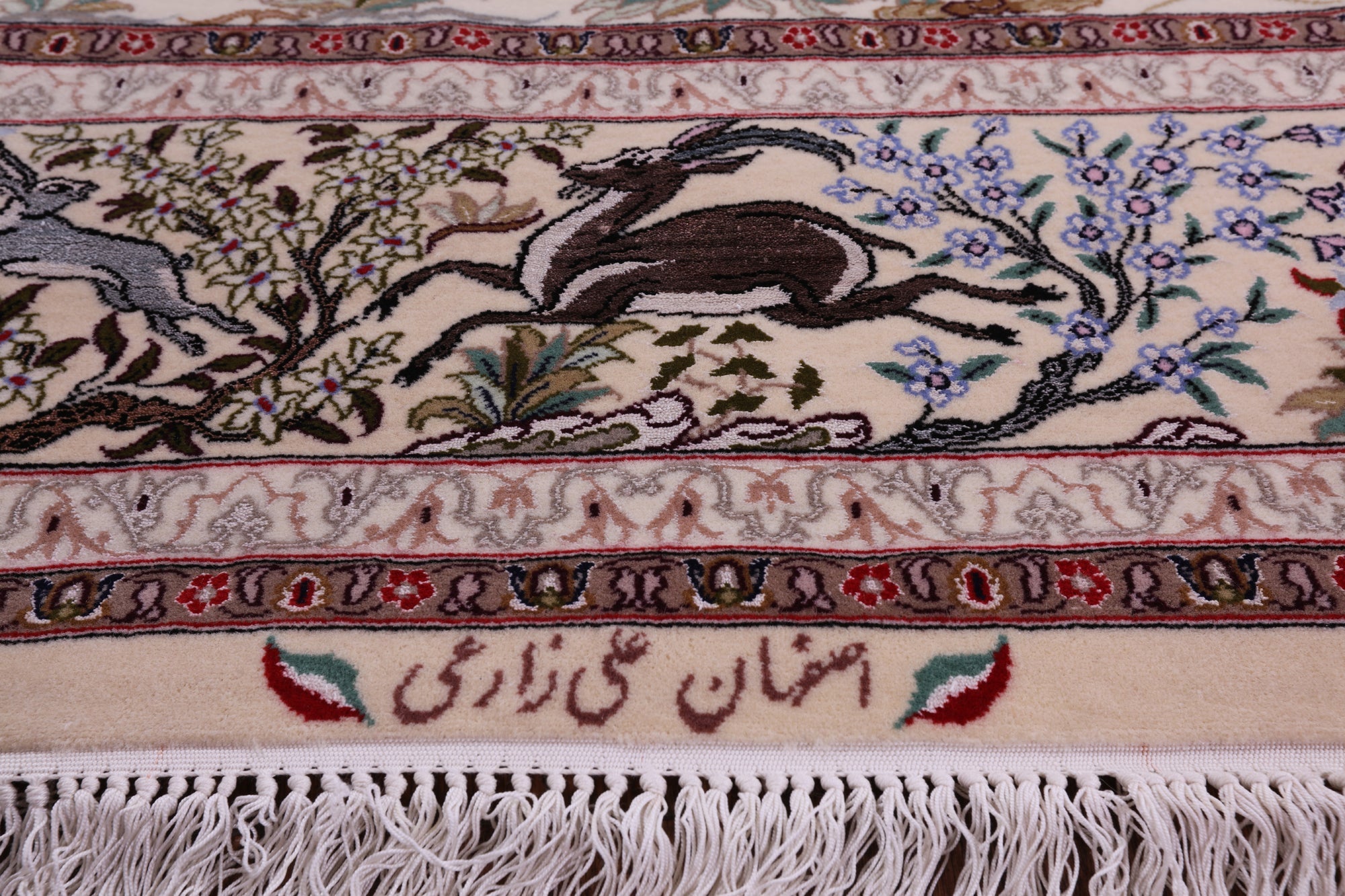 4' 11" X 7' 5" Hand Knotted Wool & Silk Signed Persian Isfahan Hunting Scene Rug - SA2706