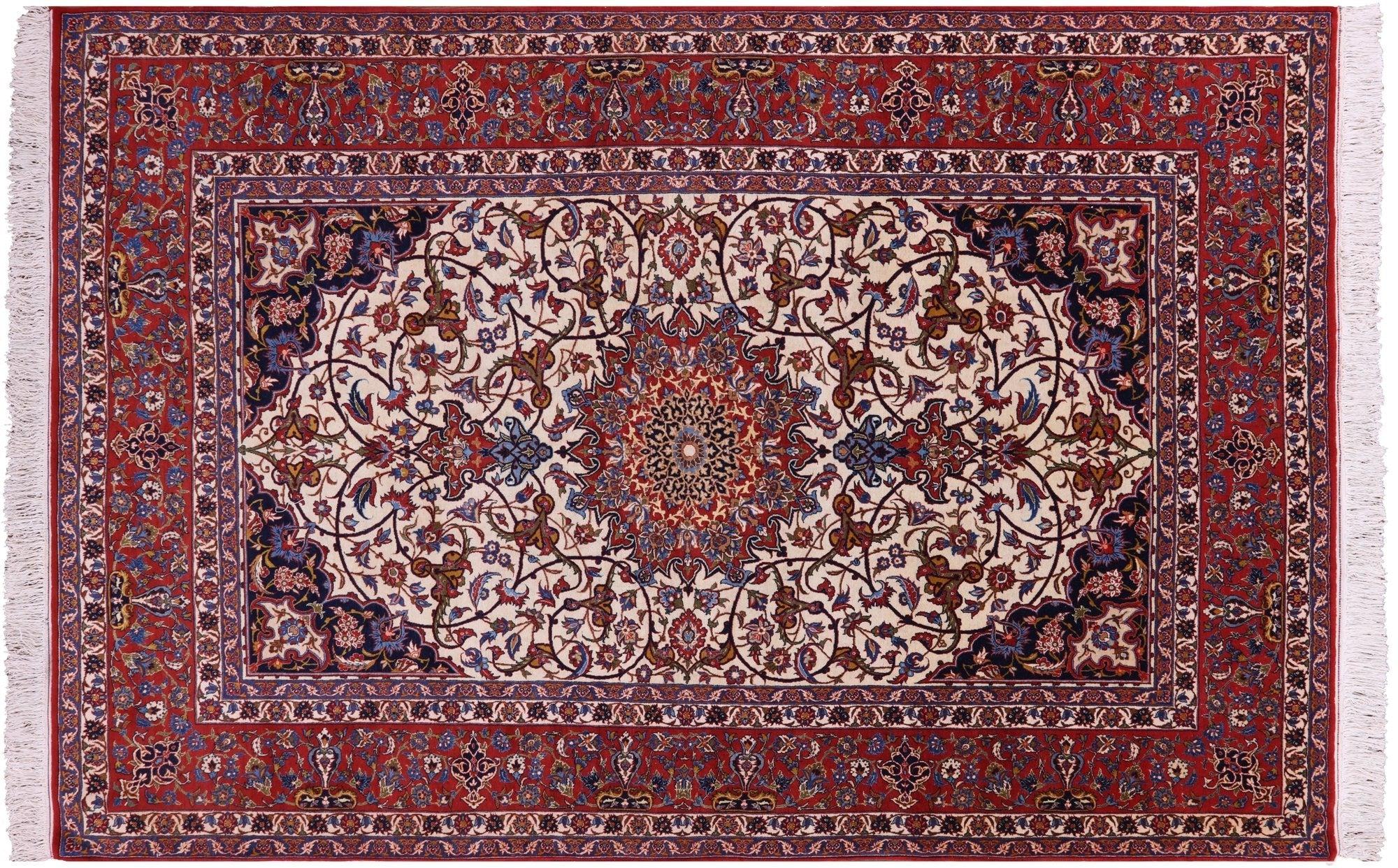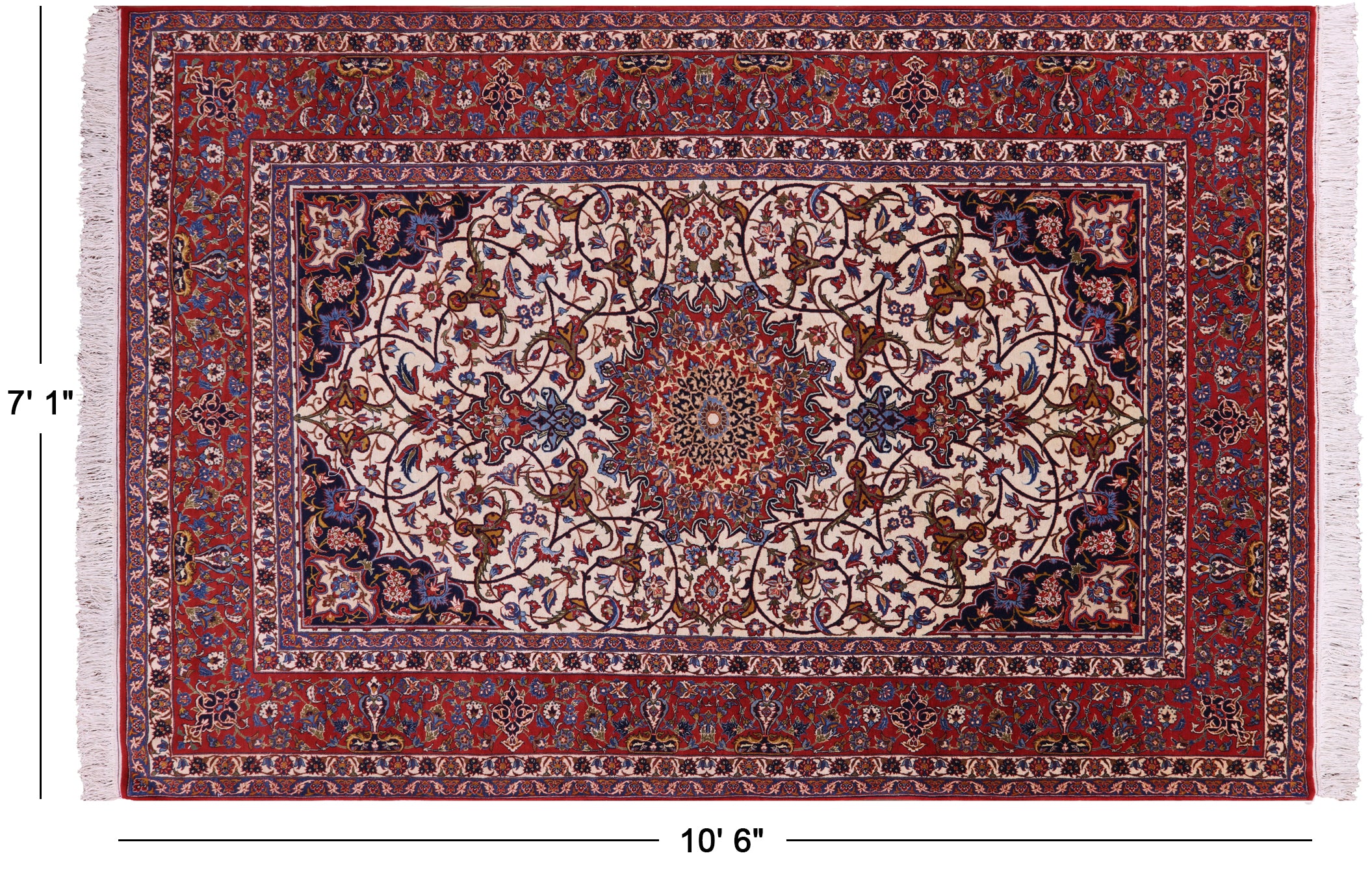 Ivory Antique Fine Persian Isfahan Hand Knotted Wool Rug 7' 1" X 10' 6"- SB2802