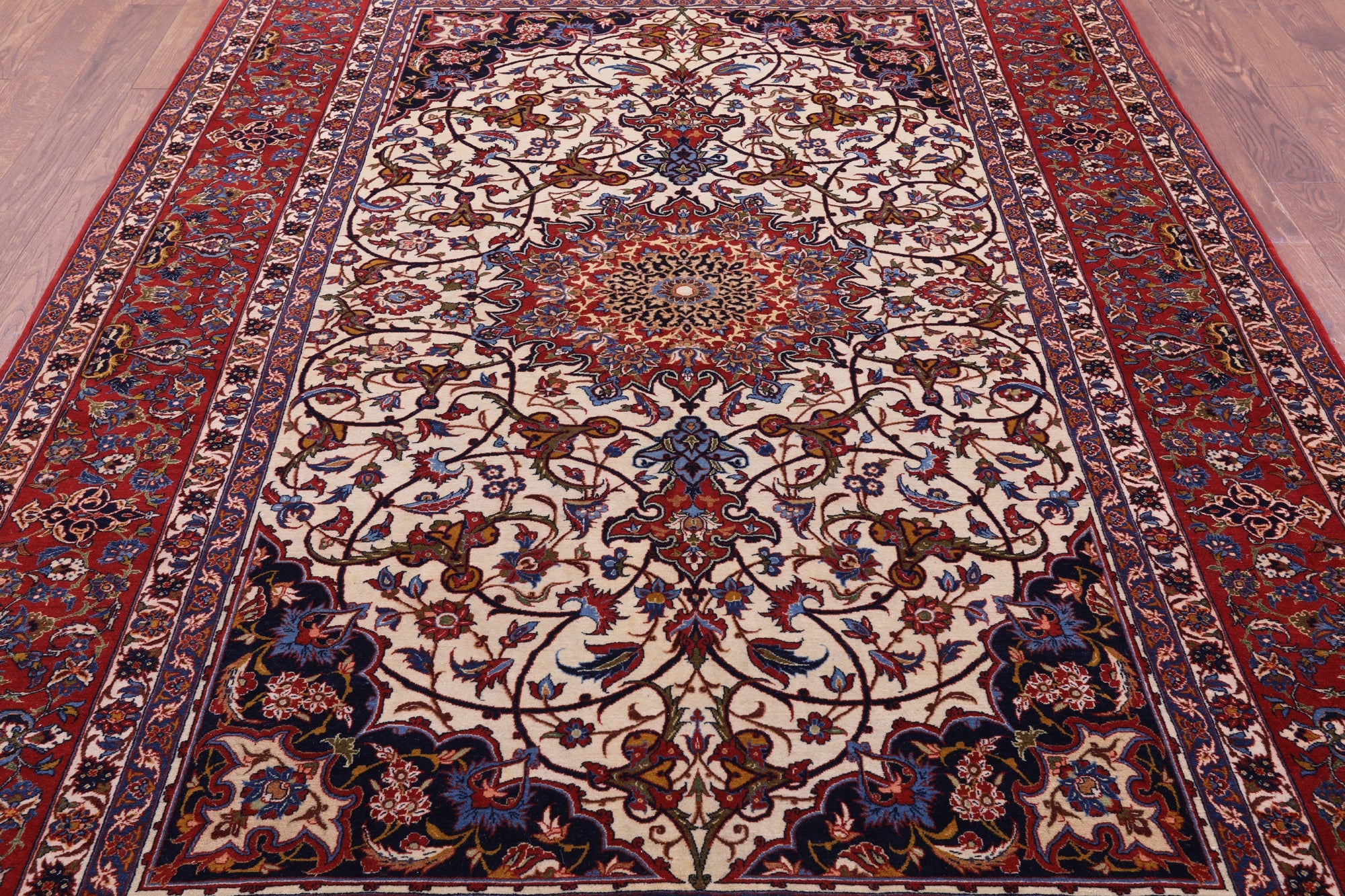Isfahan rugs date back to the seventeenth century. Isfahan was then the capital of Persia. These rugs are known to be classic and are hand knotted with either silk or wool foundations. They use variety vegetable dye colors such as reds, blues, ivory, beige, black and much more. Isfahan rugs are one of the highest quality rugs in the world.