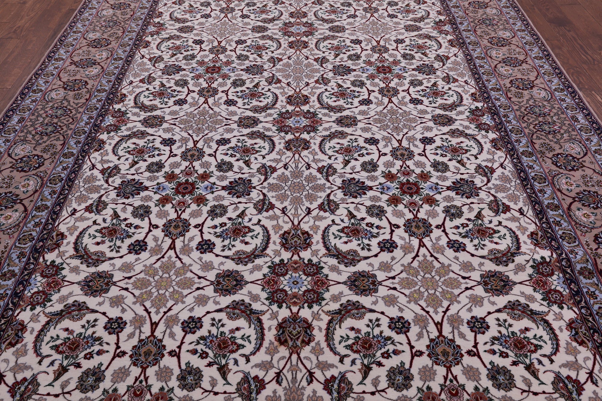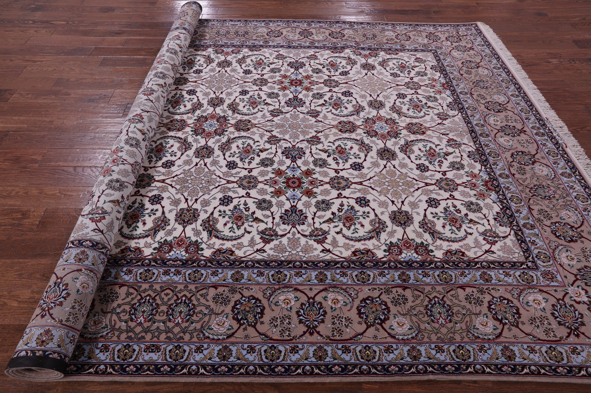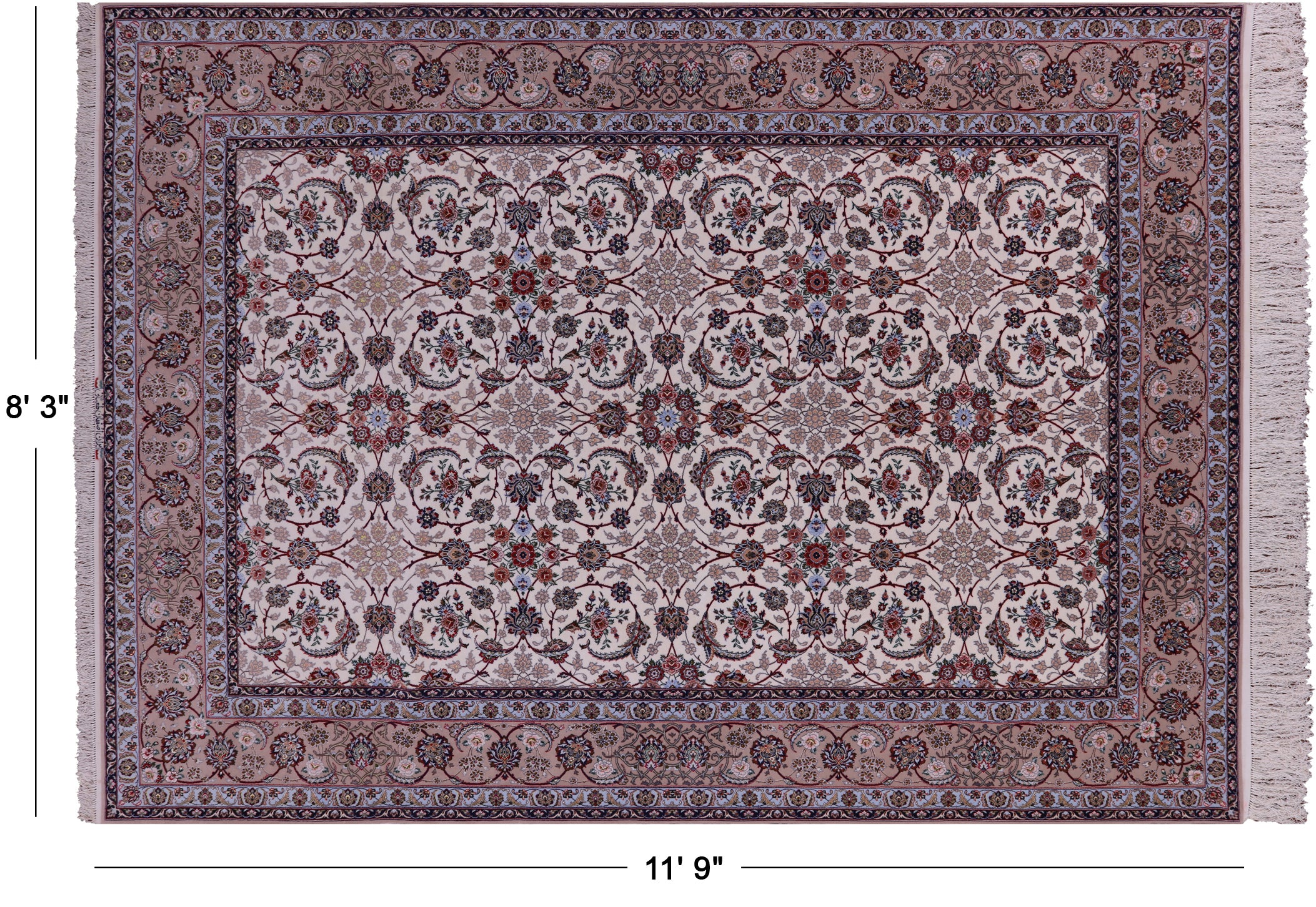 Ivory Hand Knotted Wool & Silk Signed Isfahan Persian Rug 8' 3" X 11' 9" - GZT403