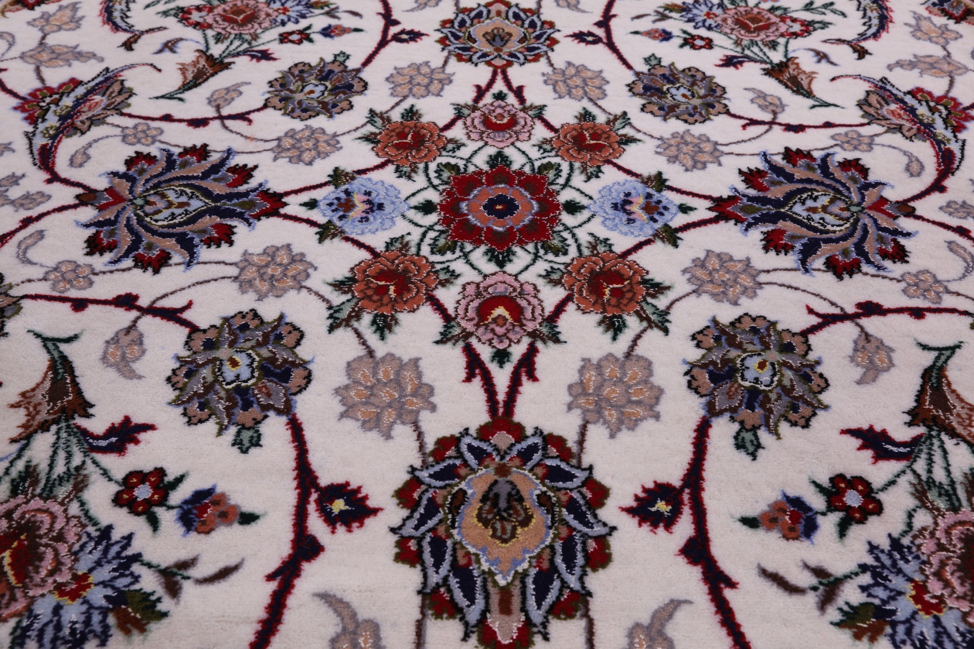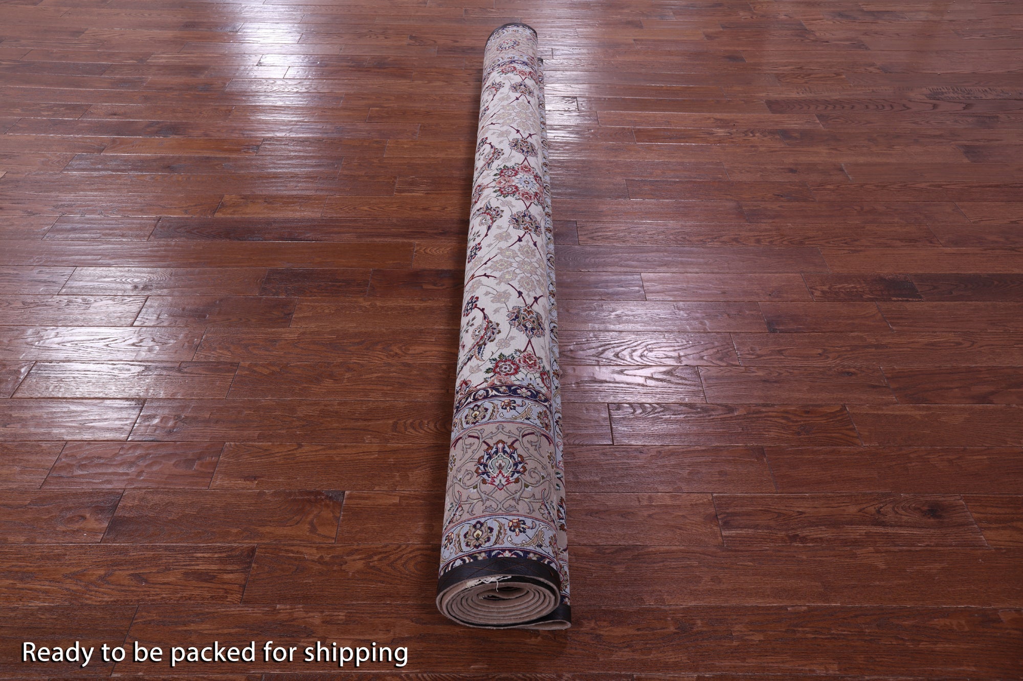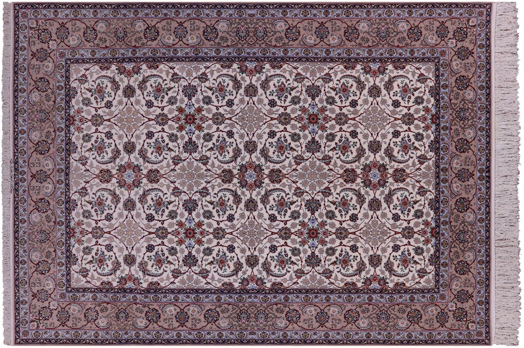 Ivory Hand Knotted Wool & Silk Signed Isfahan Persian Rug 8' 3" X 11' 9" - GZT403