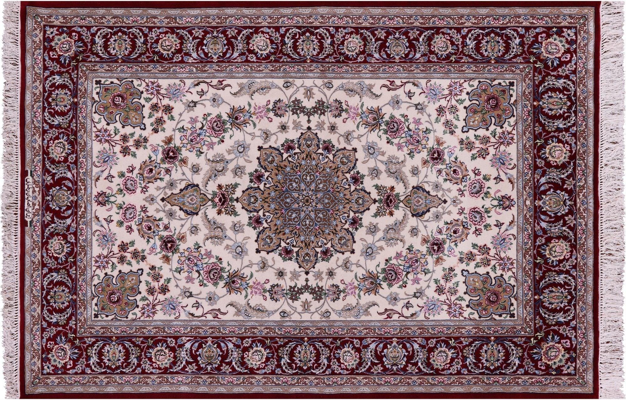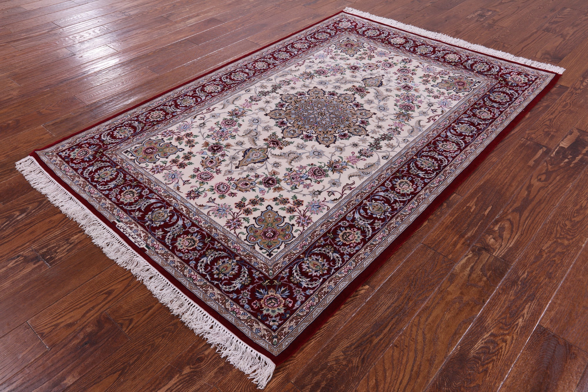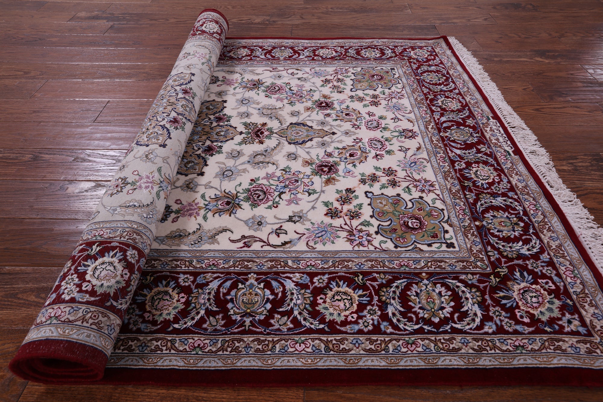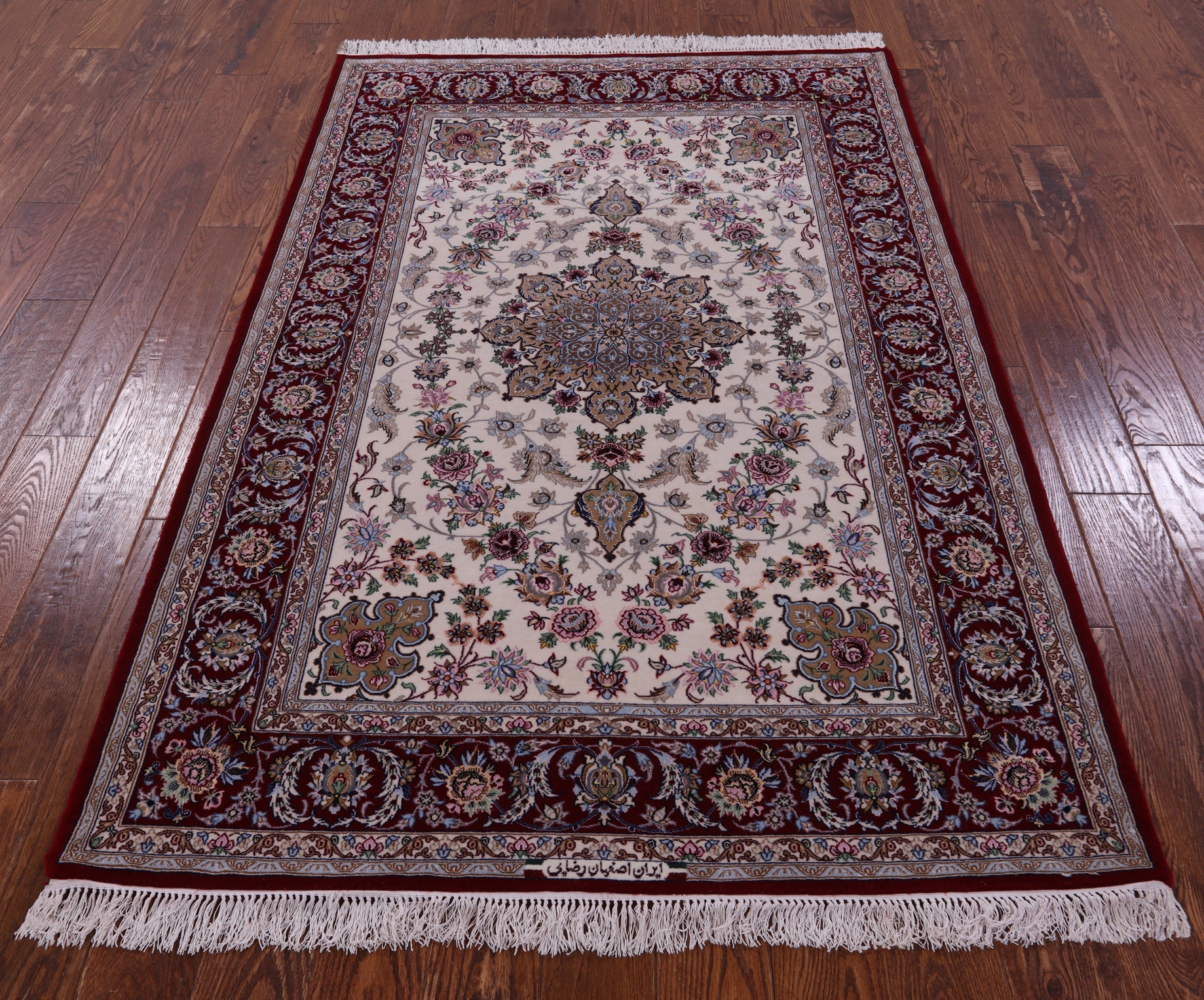 Ivory 4' 3" X 6' 7" Persian Isfahan Signed Wool & Silk Area Rug - SA2650 is backordered and will ship as soon as it is back in stock.