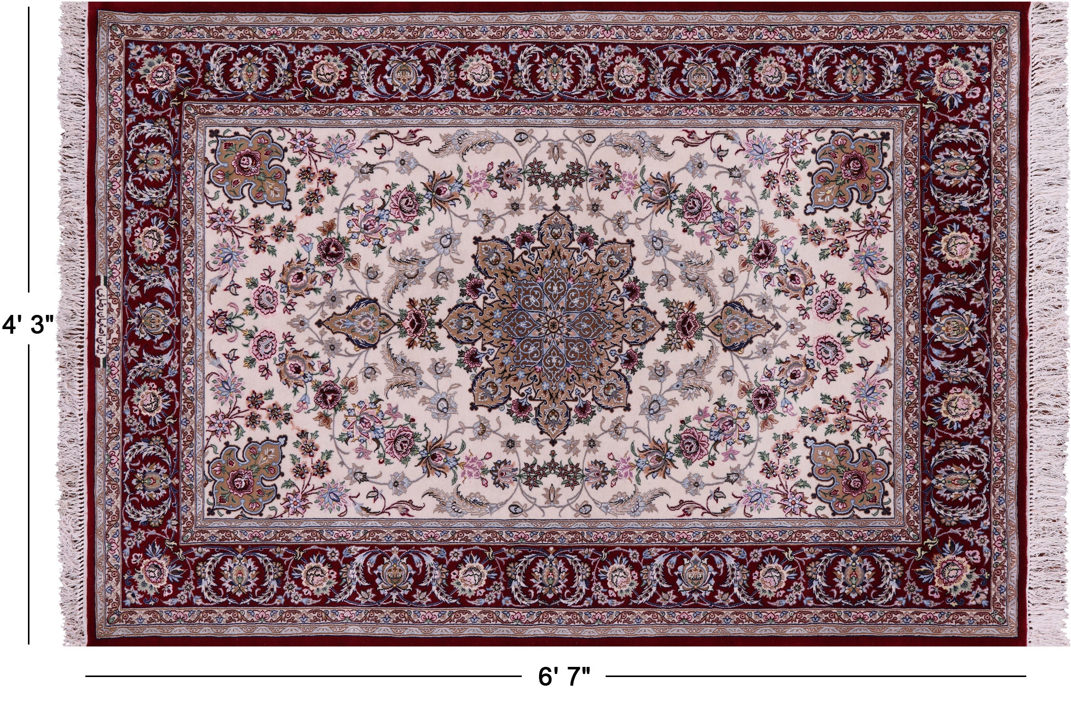Ivory 4' 3" X 6' 7" Persian Isfahan Signed Wool & Silk Area Rug - SA2650