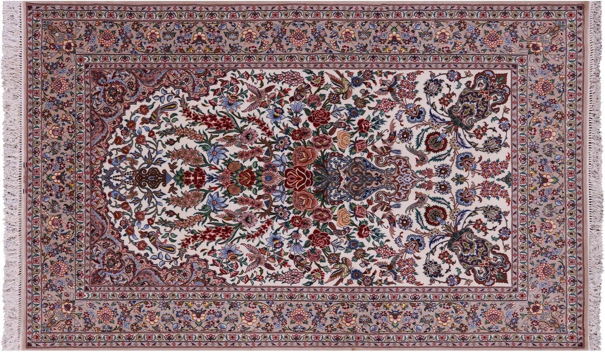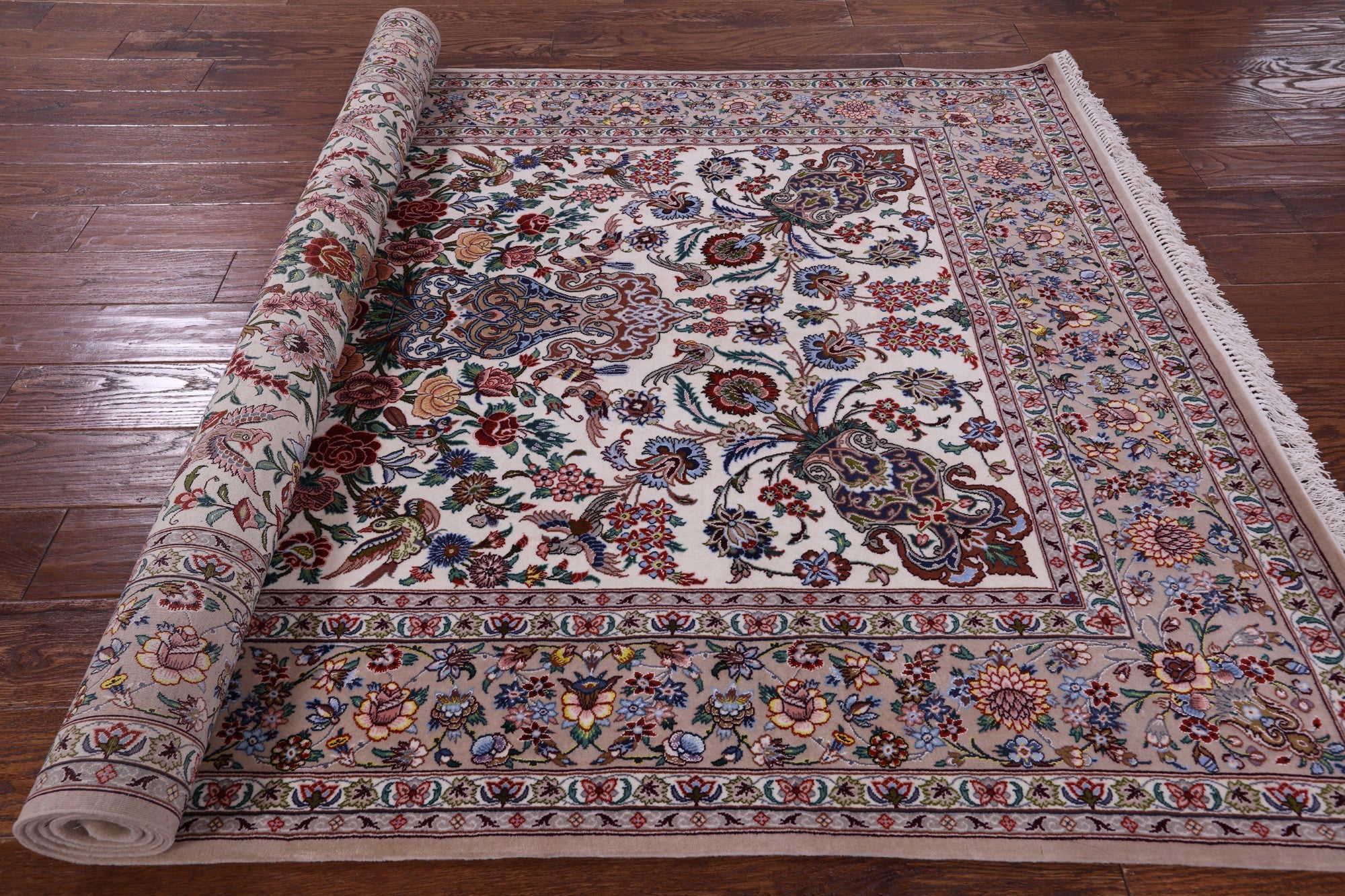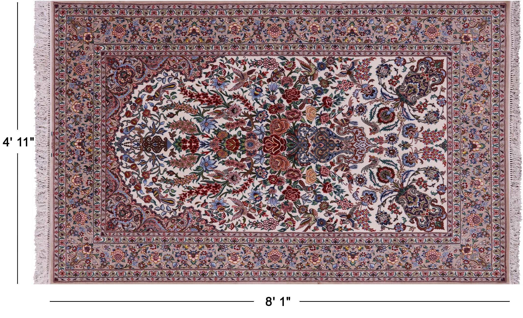 Ivory Persian Signed Isfahan Hand Knotted Wool & Silk Rug 4' 11" X 8' 1" - SA2790