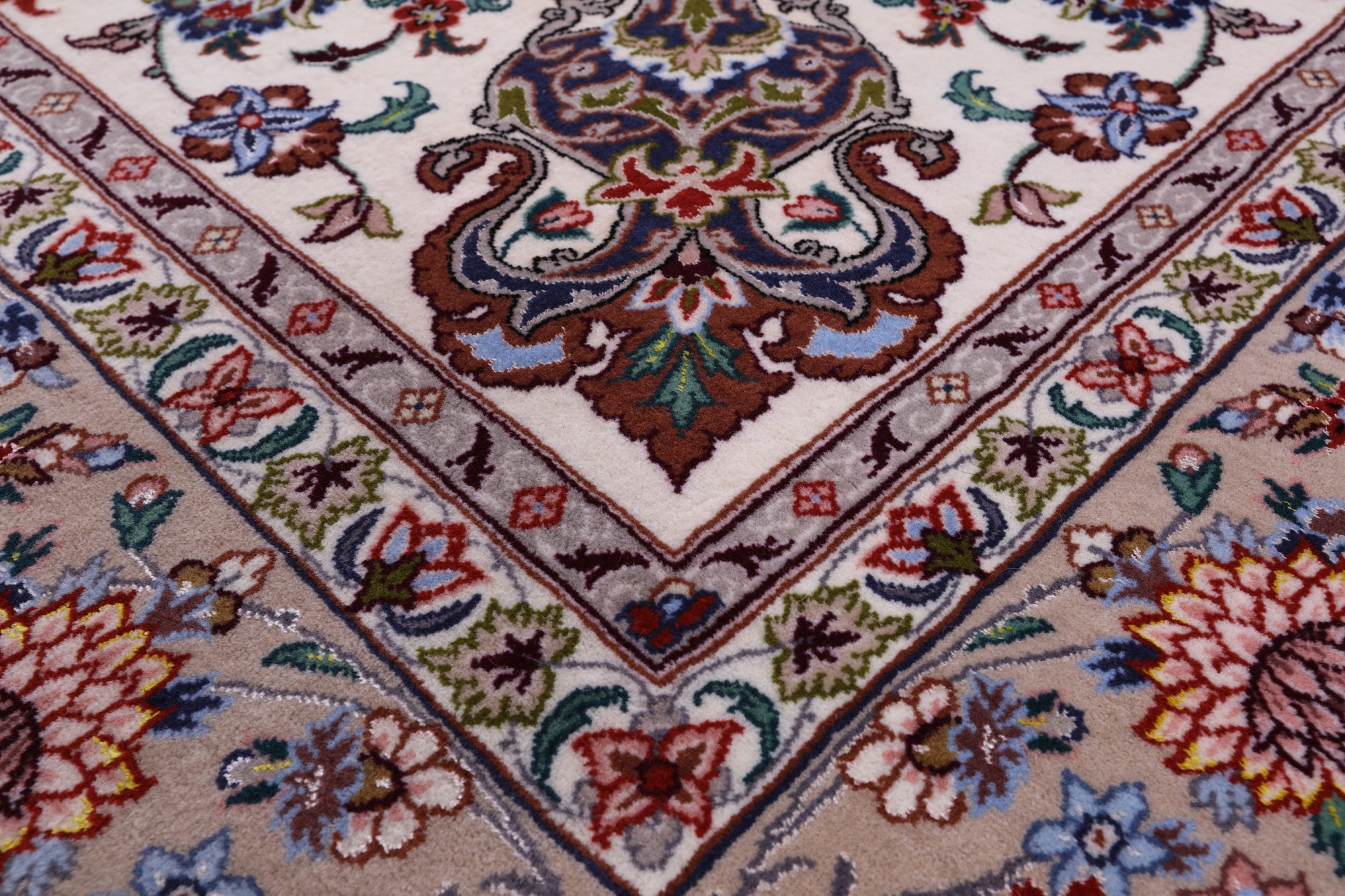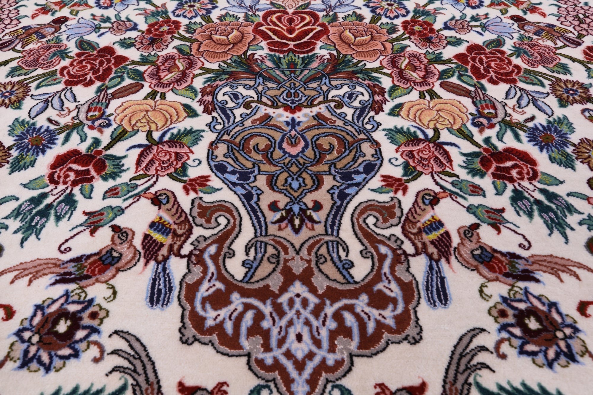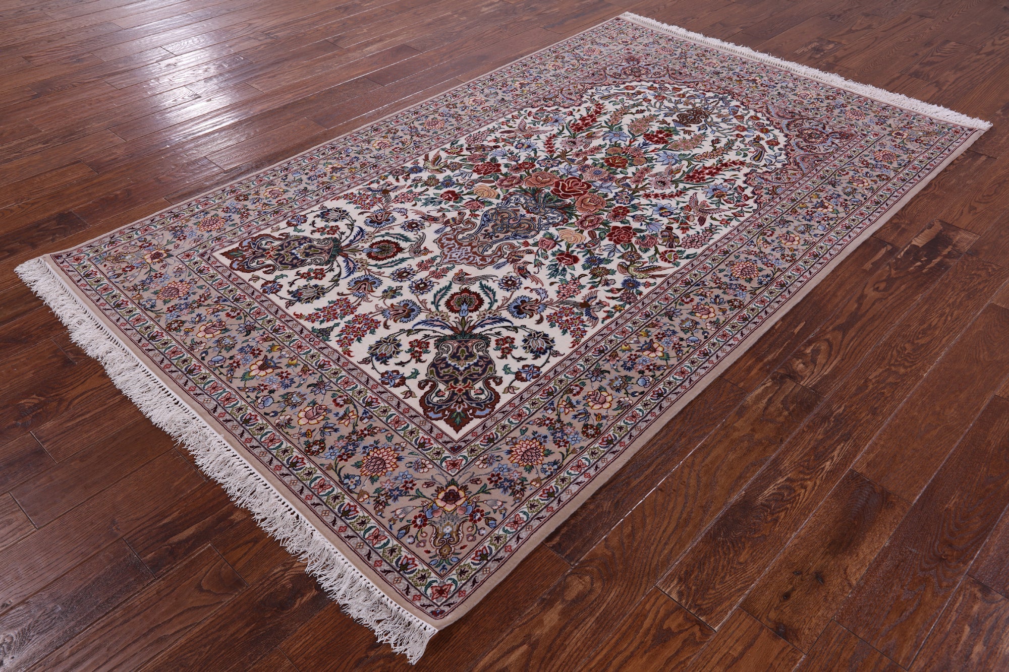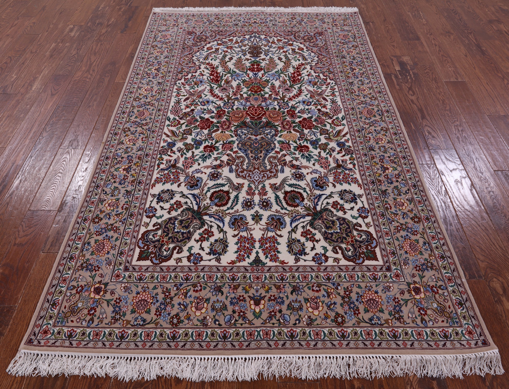 Ivory Persian Signed Isfahan Hand Knotted Wool & Silk Rug 4' 11" X 8' 1" - SA2790