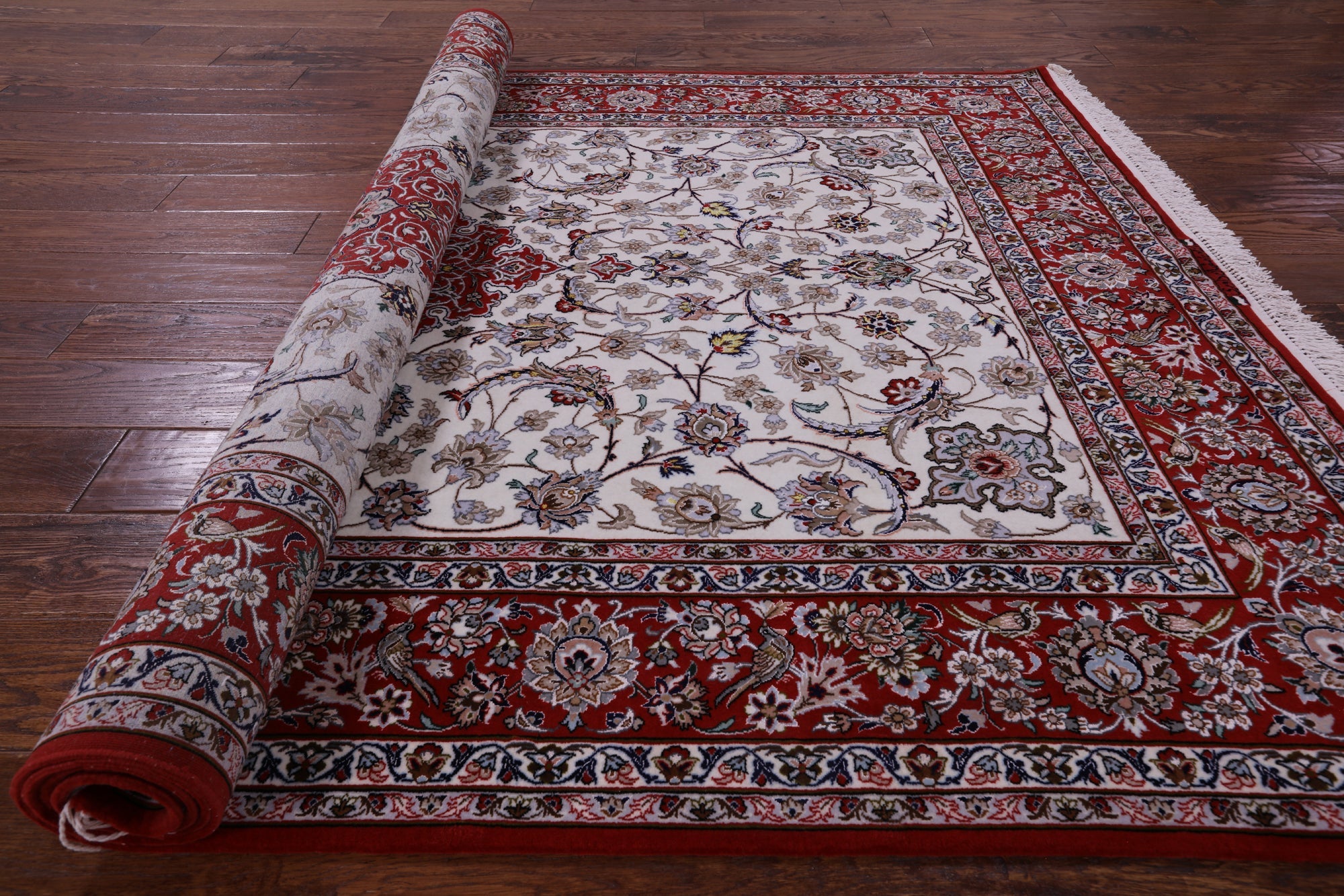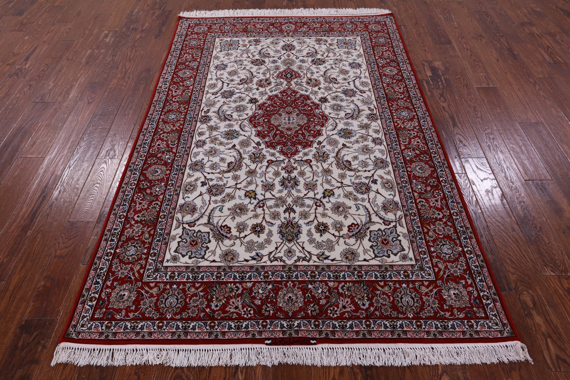 Ivory 5' 1" X 7' 10" Persian Signed Isfahan Wool & Silk Rug - SA2611 is backordered and will ship as soon as it is back in stock.