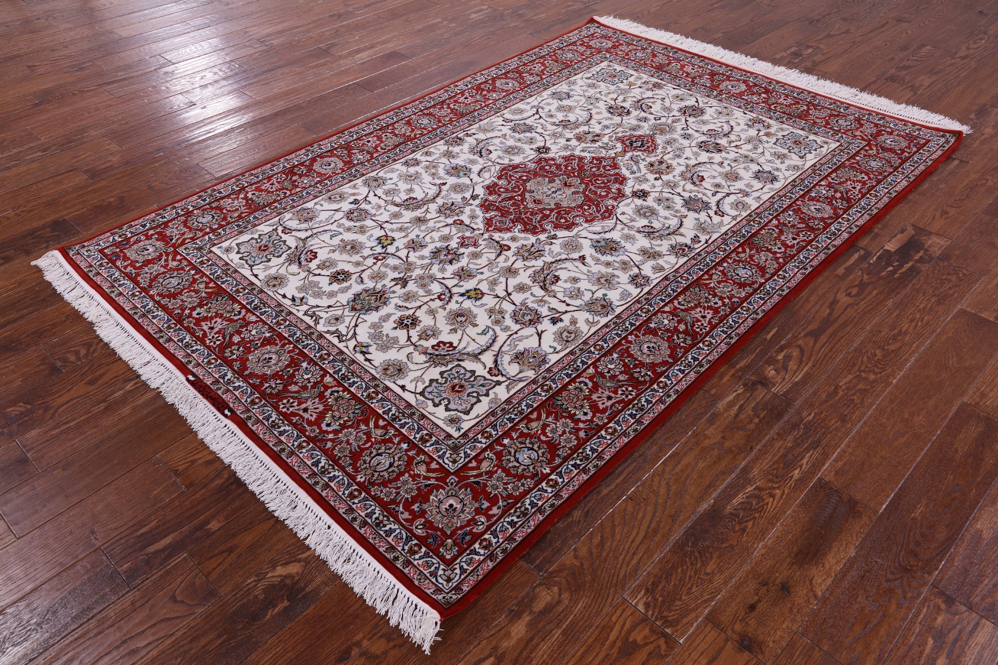 Ivory 5' 1" X 7' 10" Persian Signed Isfahan Wool & Silk Rug - SA2611