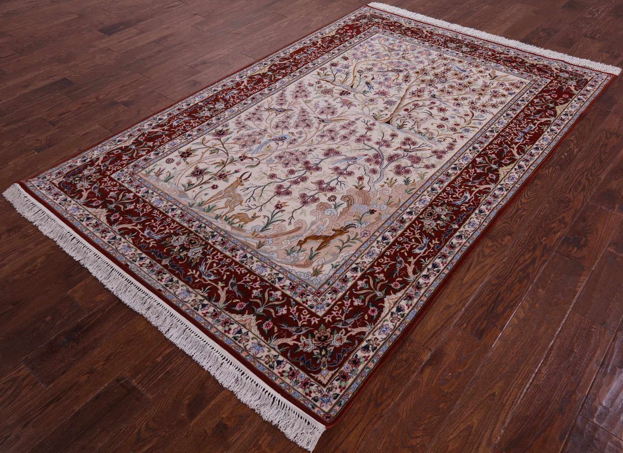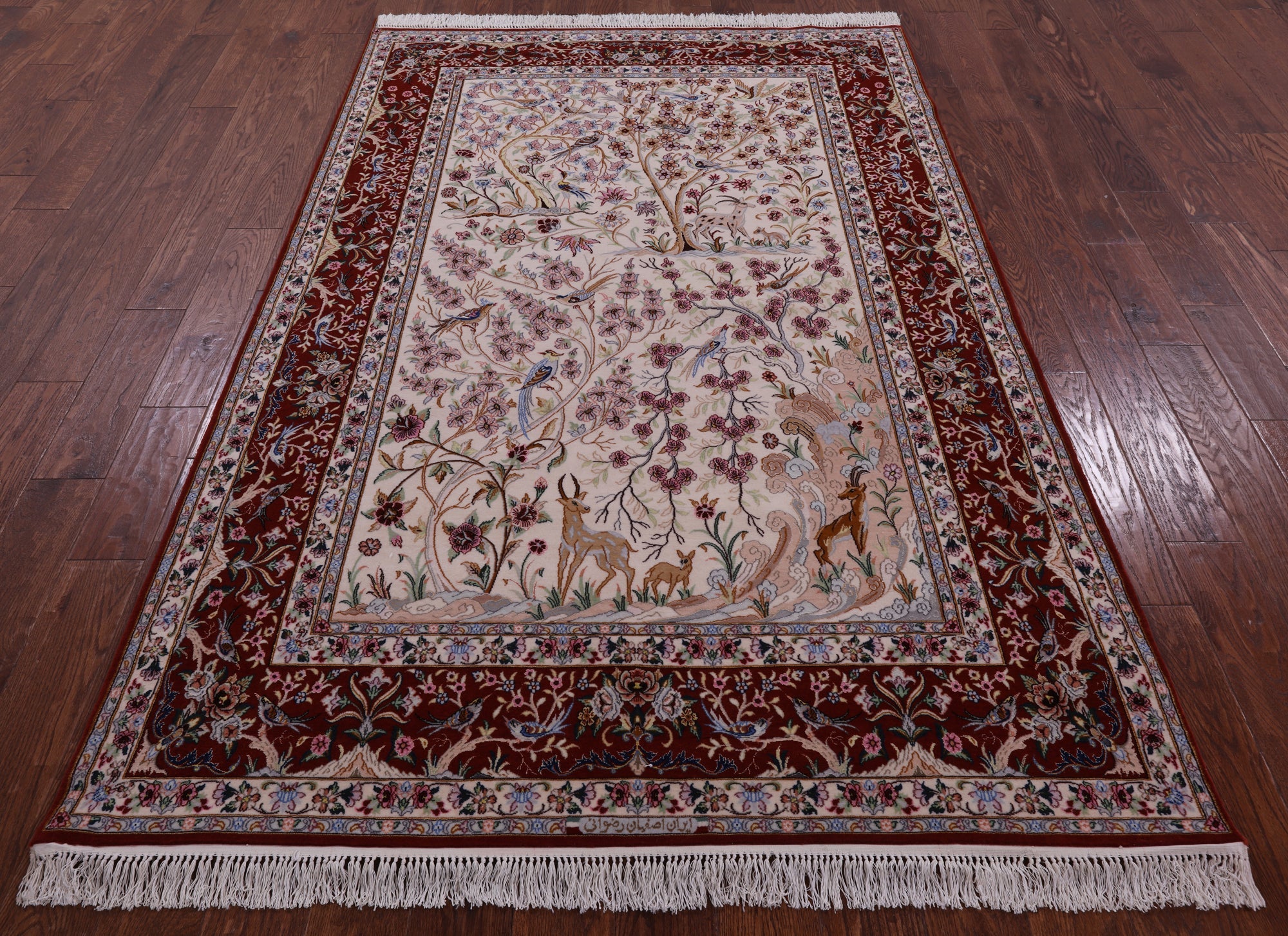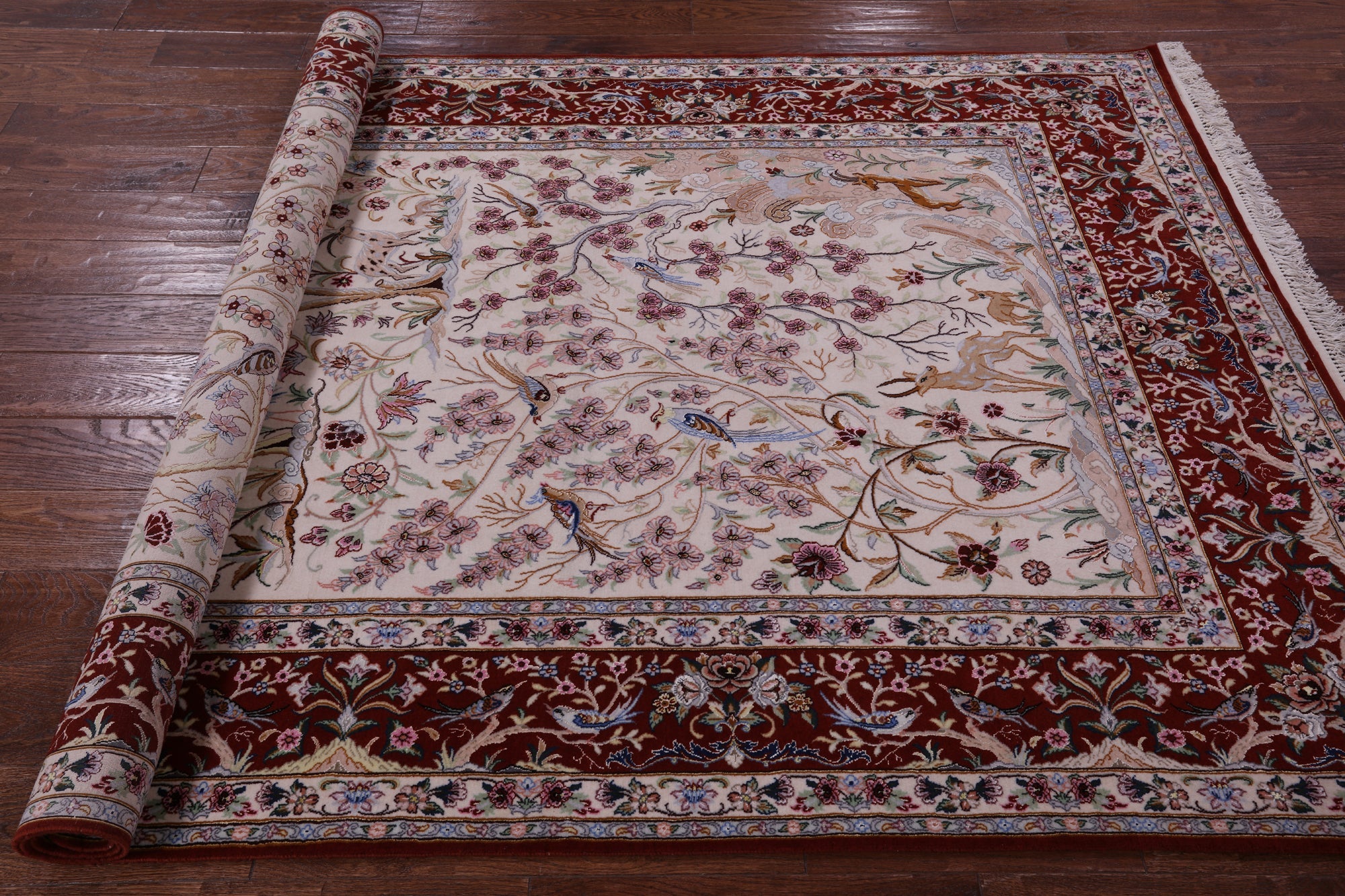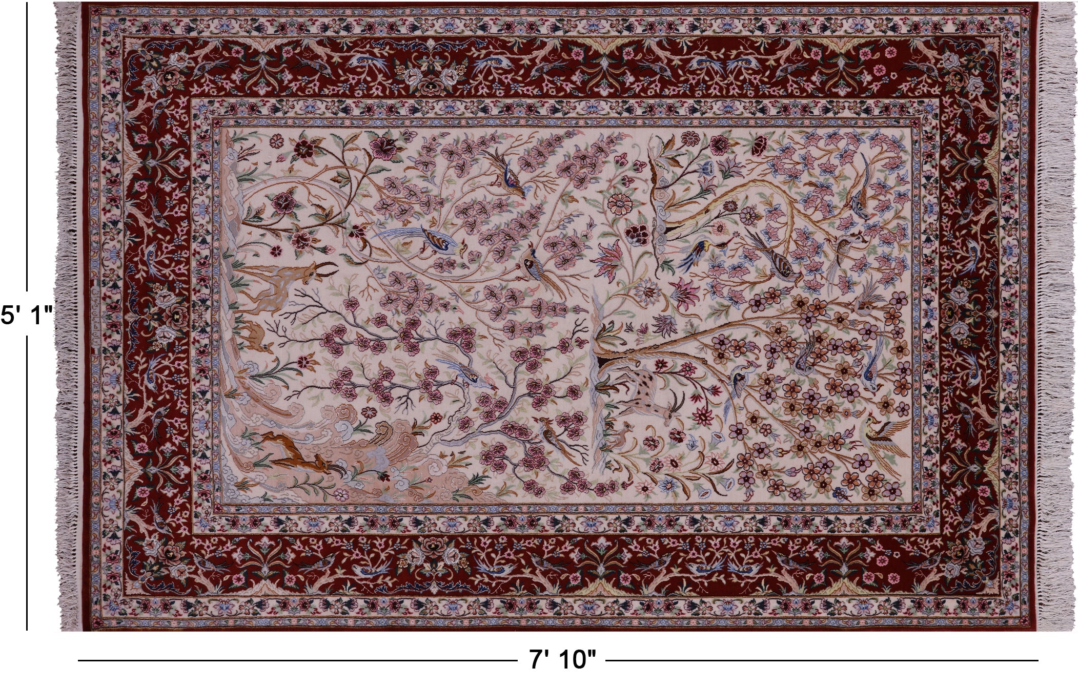 Ivory 5' 1" X 7' 10" Pictorial Scene Persian Signed Isfahan Handmade Wool & Silk Area Rug - SA2691 is backordered and will ship as soon as it is back in stock.