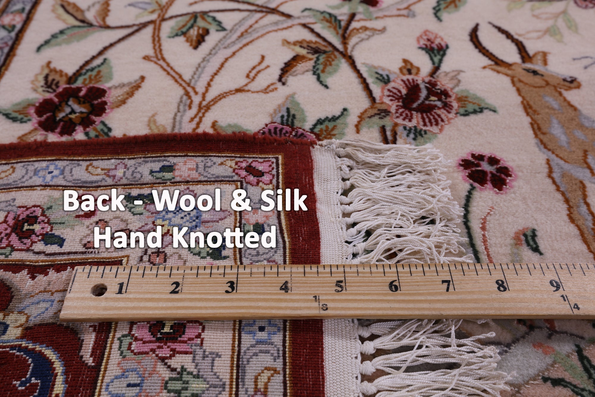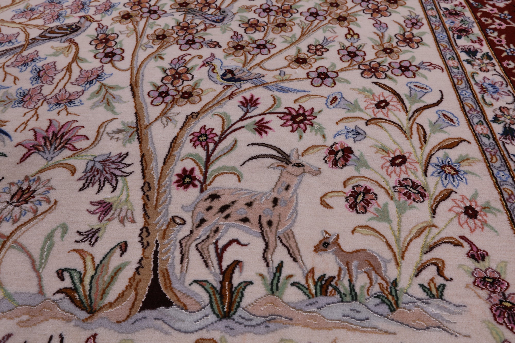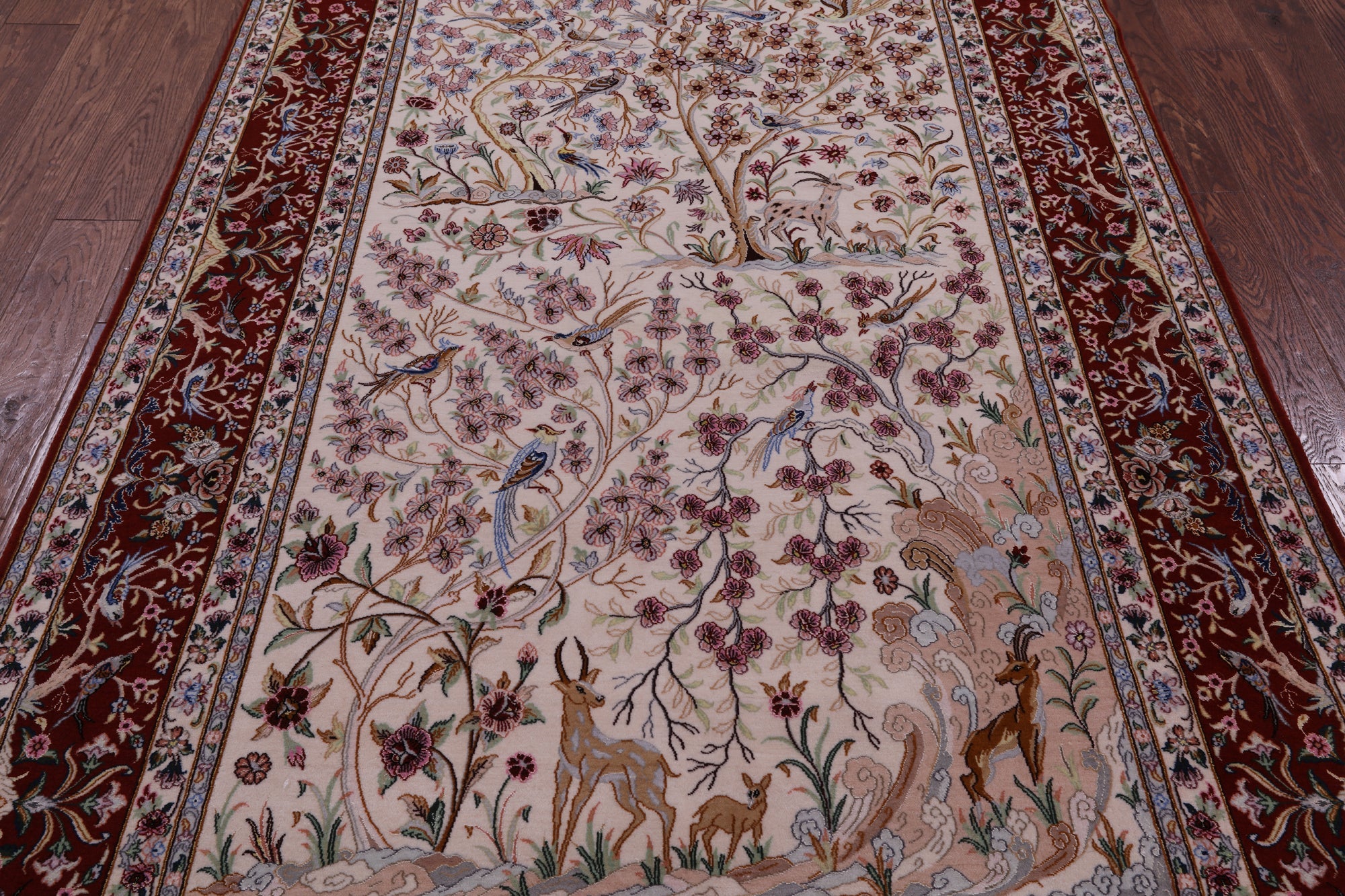 Ivory 5' 1" X 7' 10" Pictorial Scene Persian Signed Isfahan Handmade Wool & Silk Area Rug - SA2691 is backordered and will ship as soon as it is back in stock.