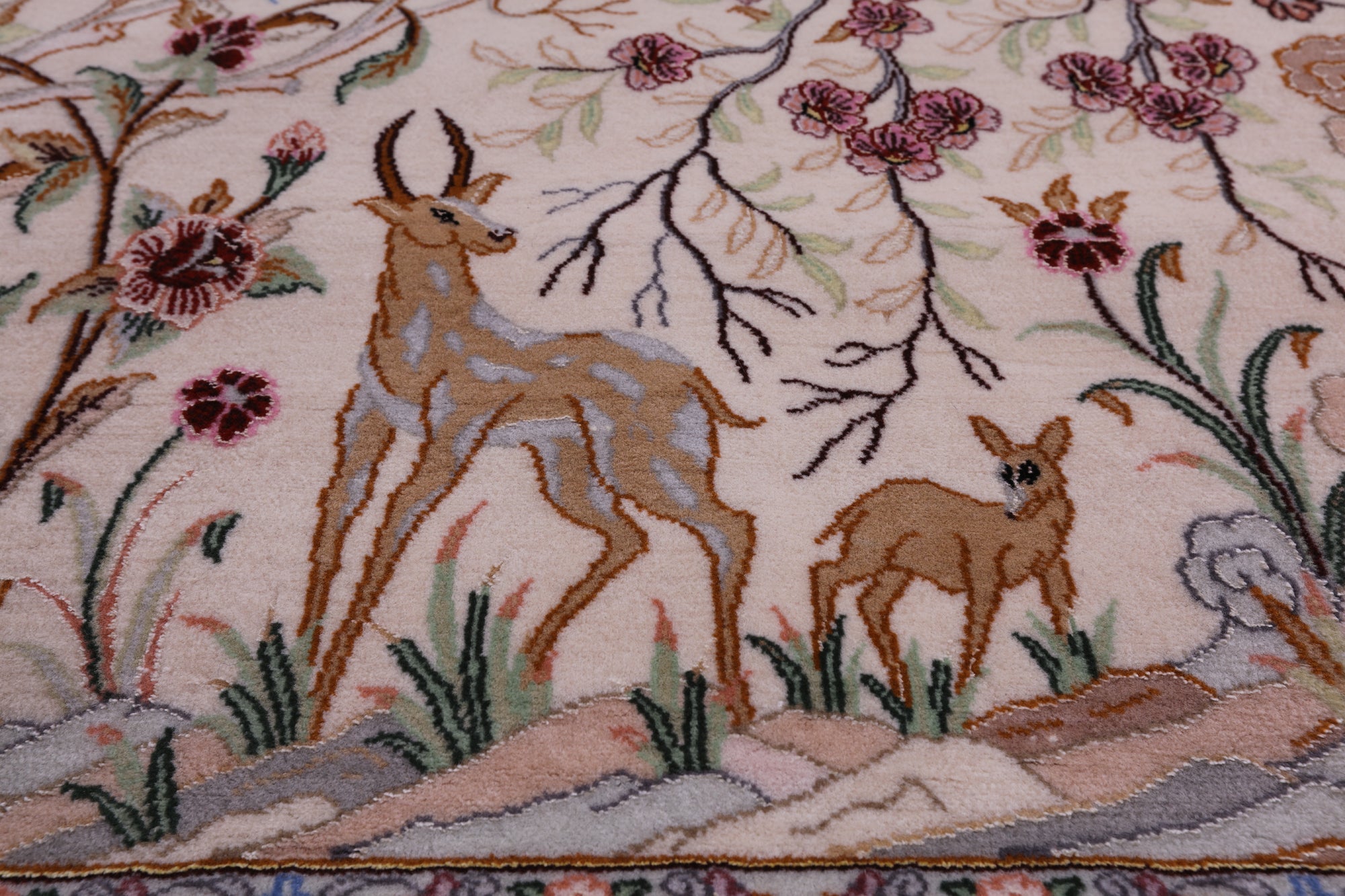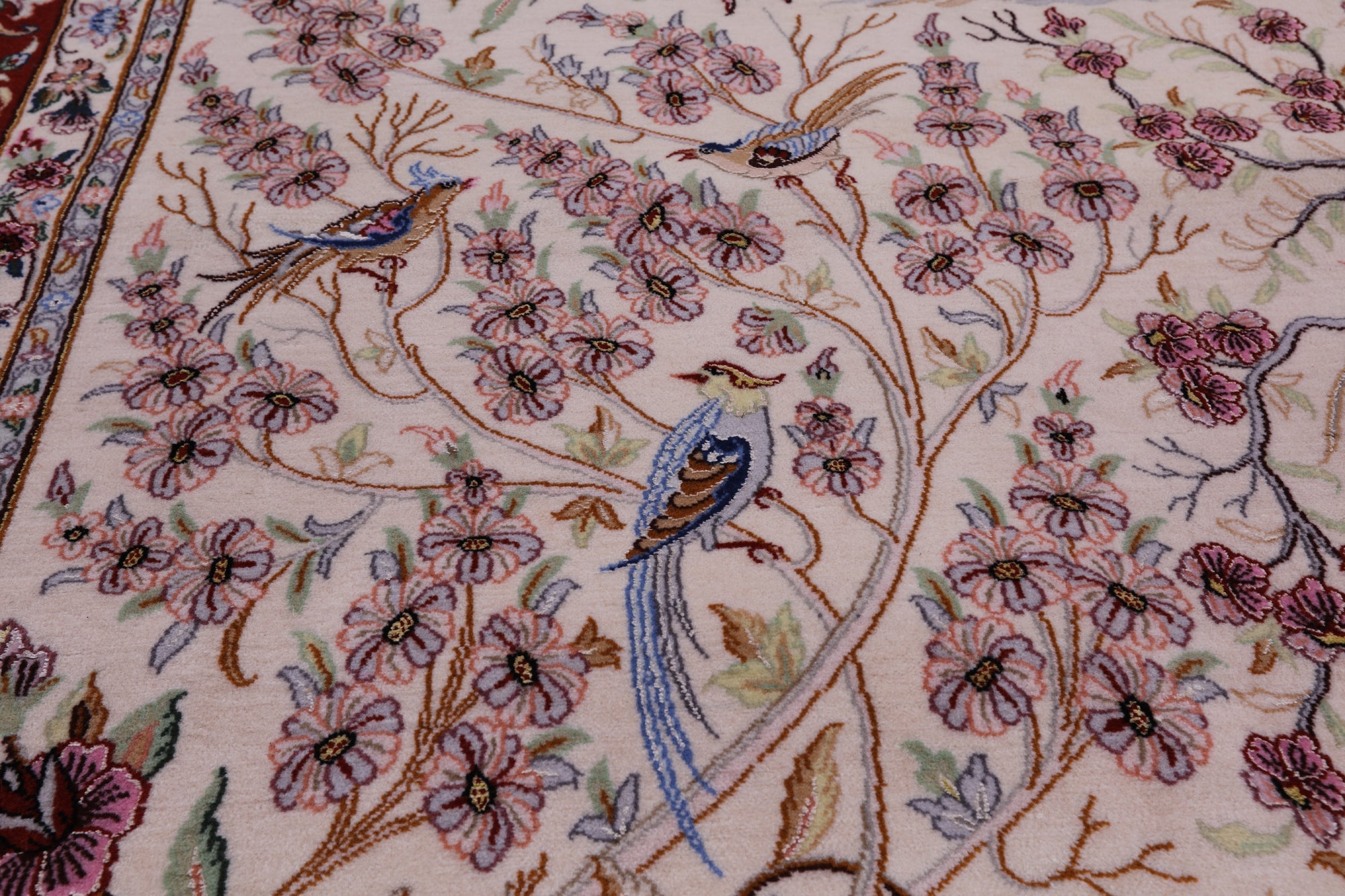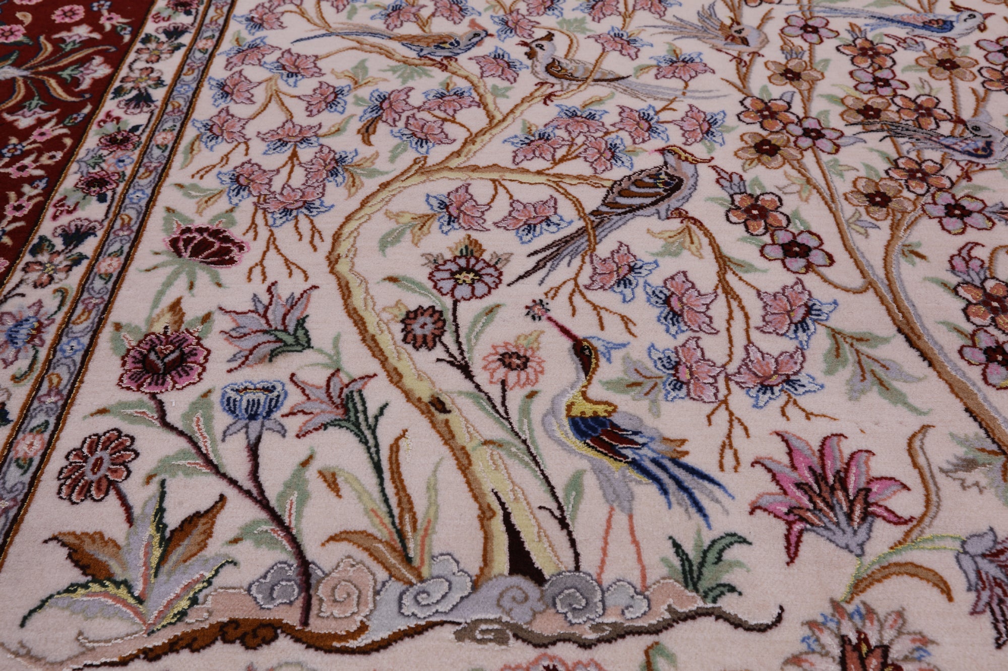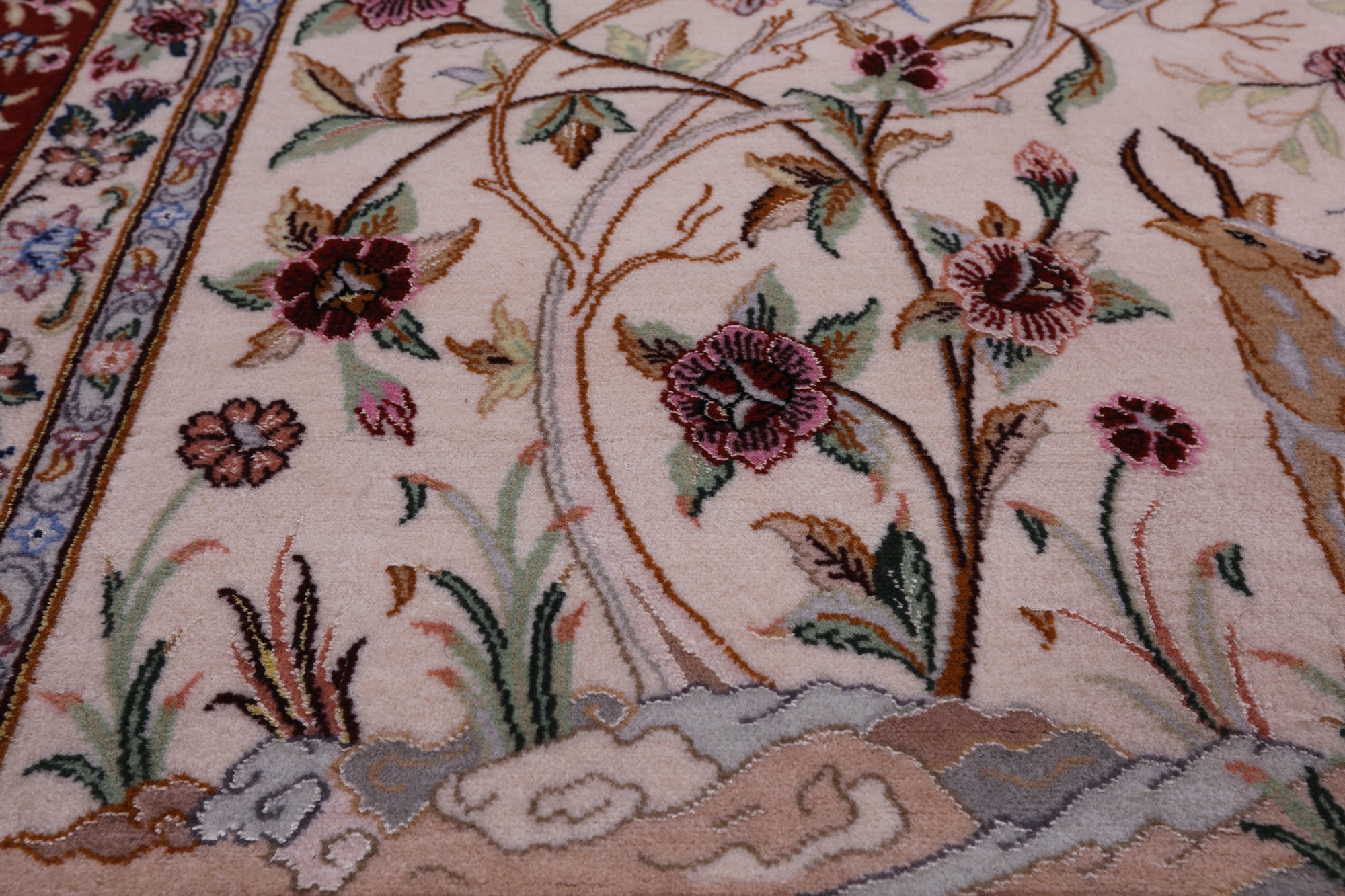 Ivory 5' 1" X 7' 10" Pictorial Scene Persian Signed Isfahan Handmade Wool & Silk Area Rug - SA2691 is backordered and will ship as soon as it is back in stock.