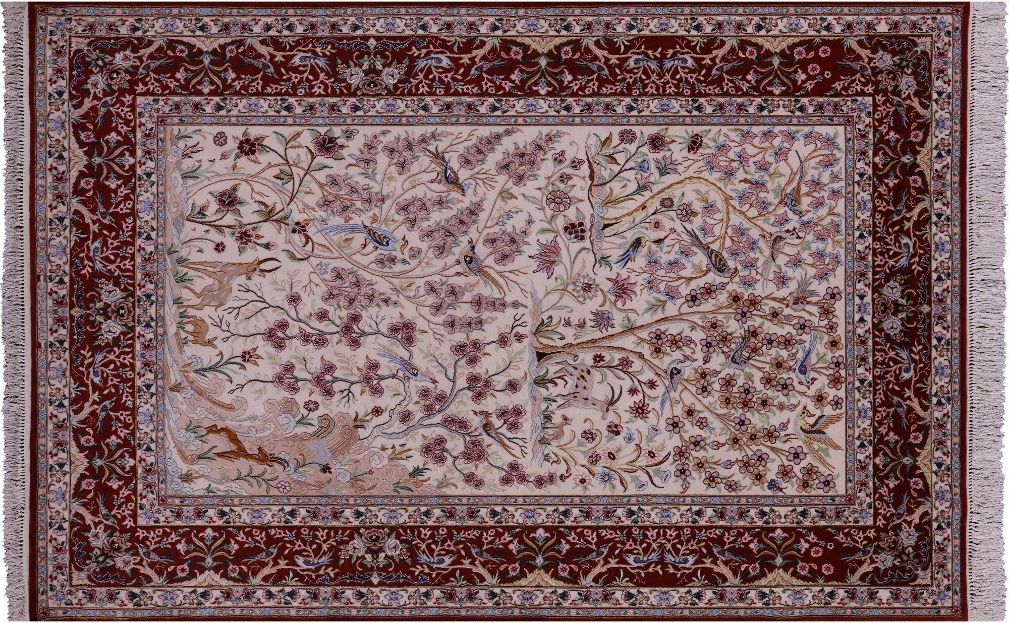 Ivory 5' 1" X 7' 10" Pictorial Scene Persian Signed Isfahan Handmade Wool & Silk Area Rug - SA2691