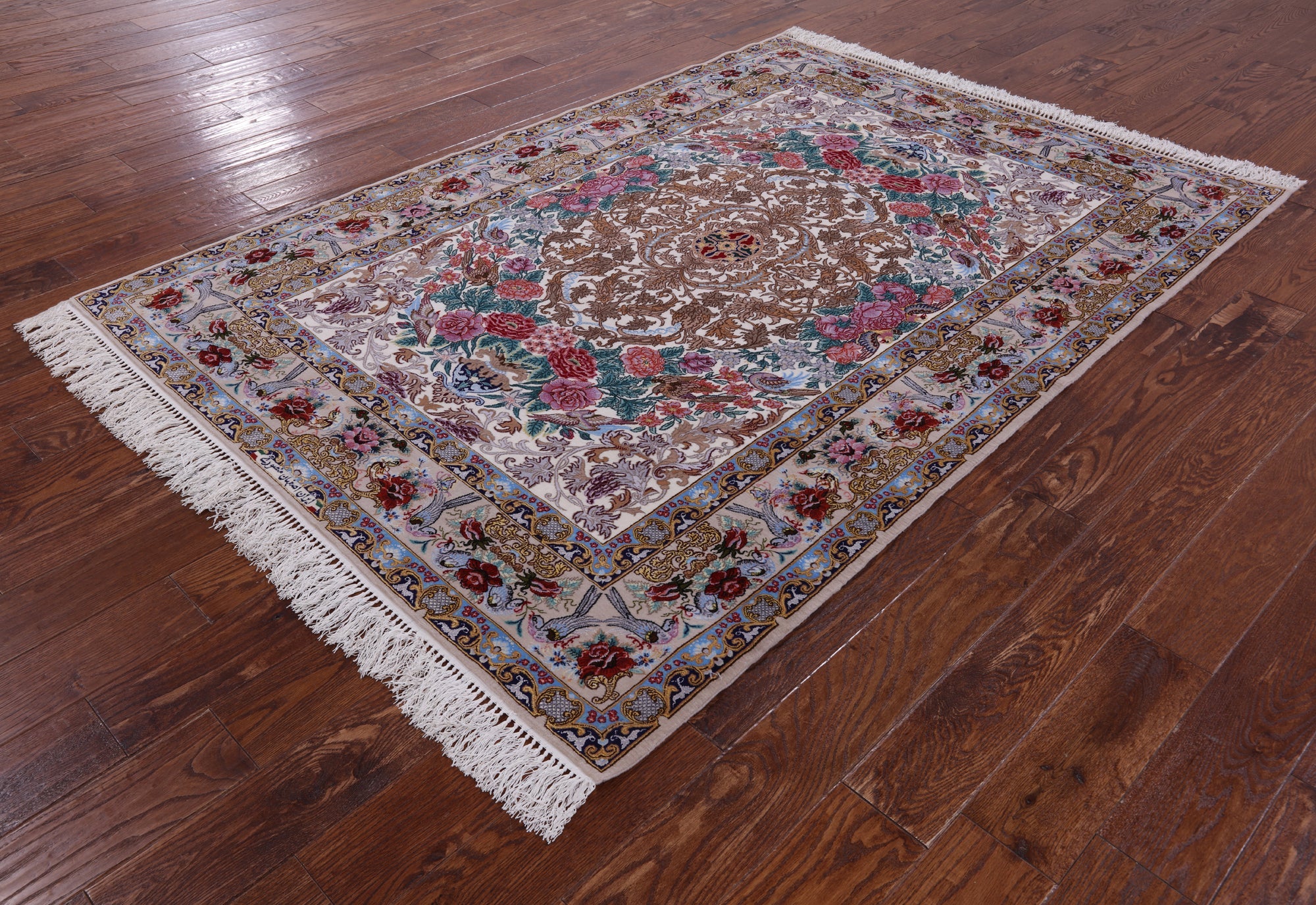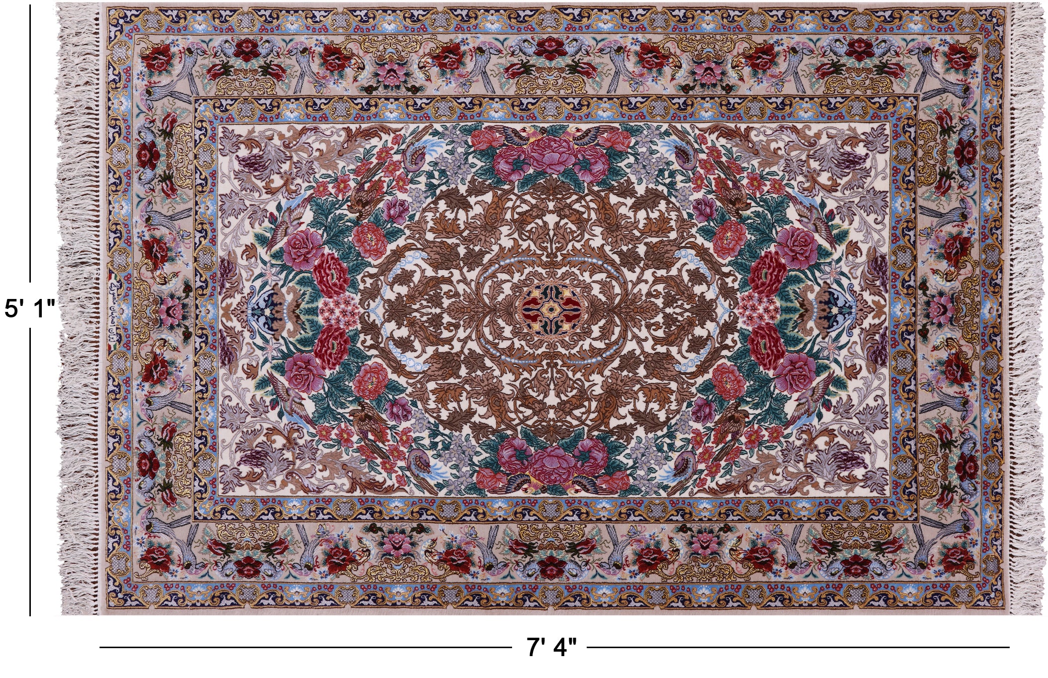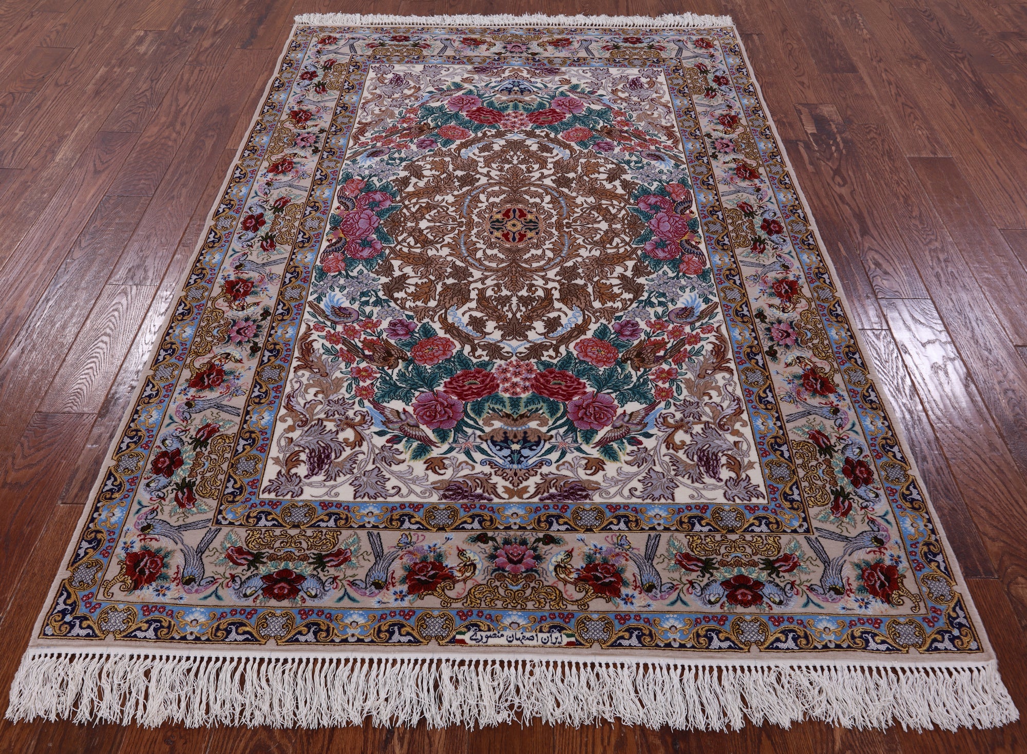 Ivory Signed Hand Knotted Persian Isfahan Wool & Silk Area Rug 5' 1" X 7' 4" - SA2673