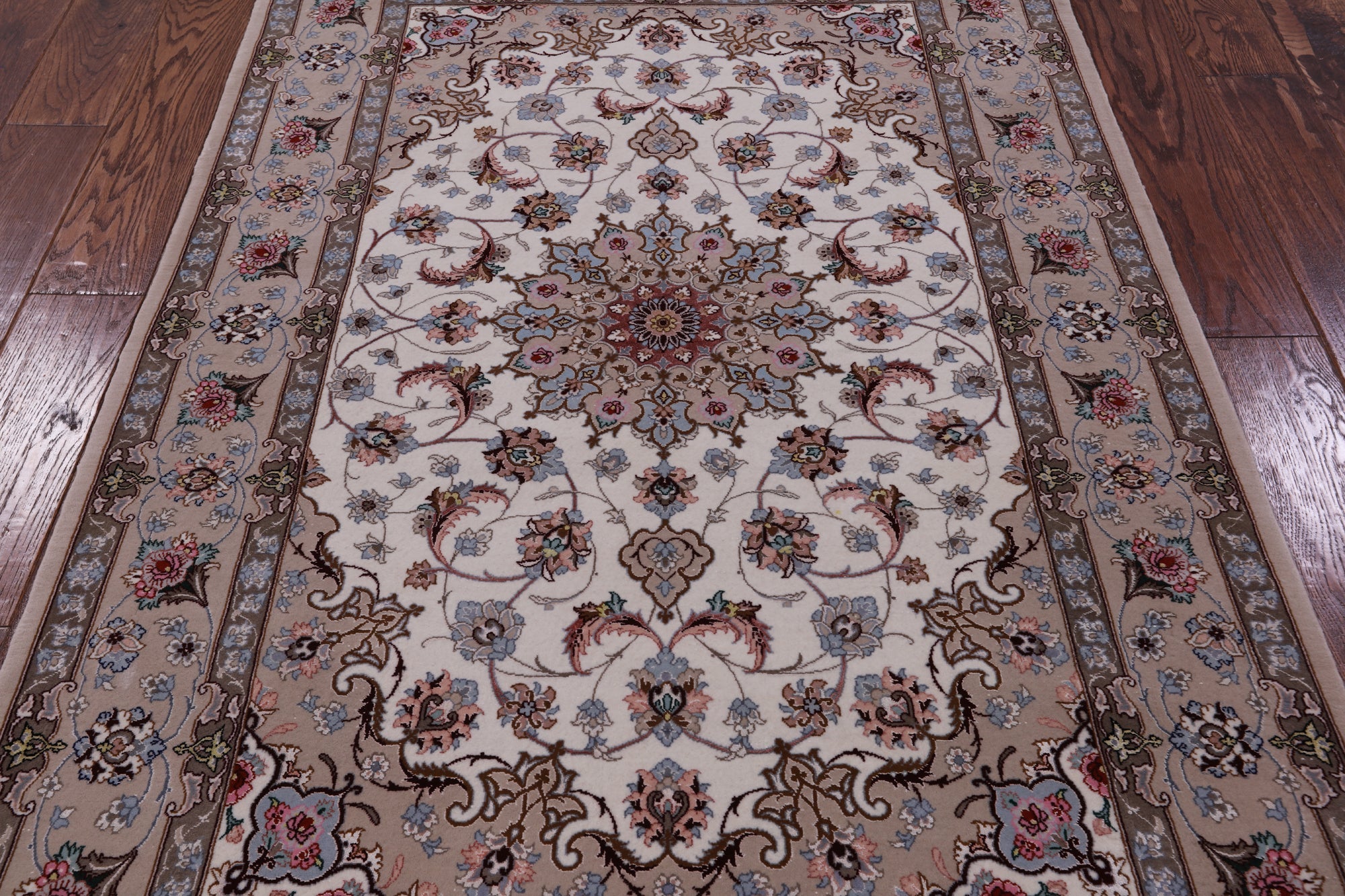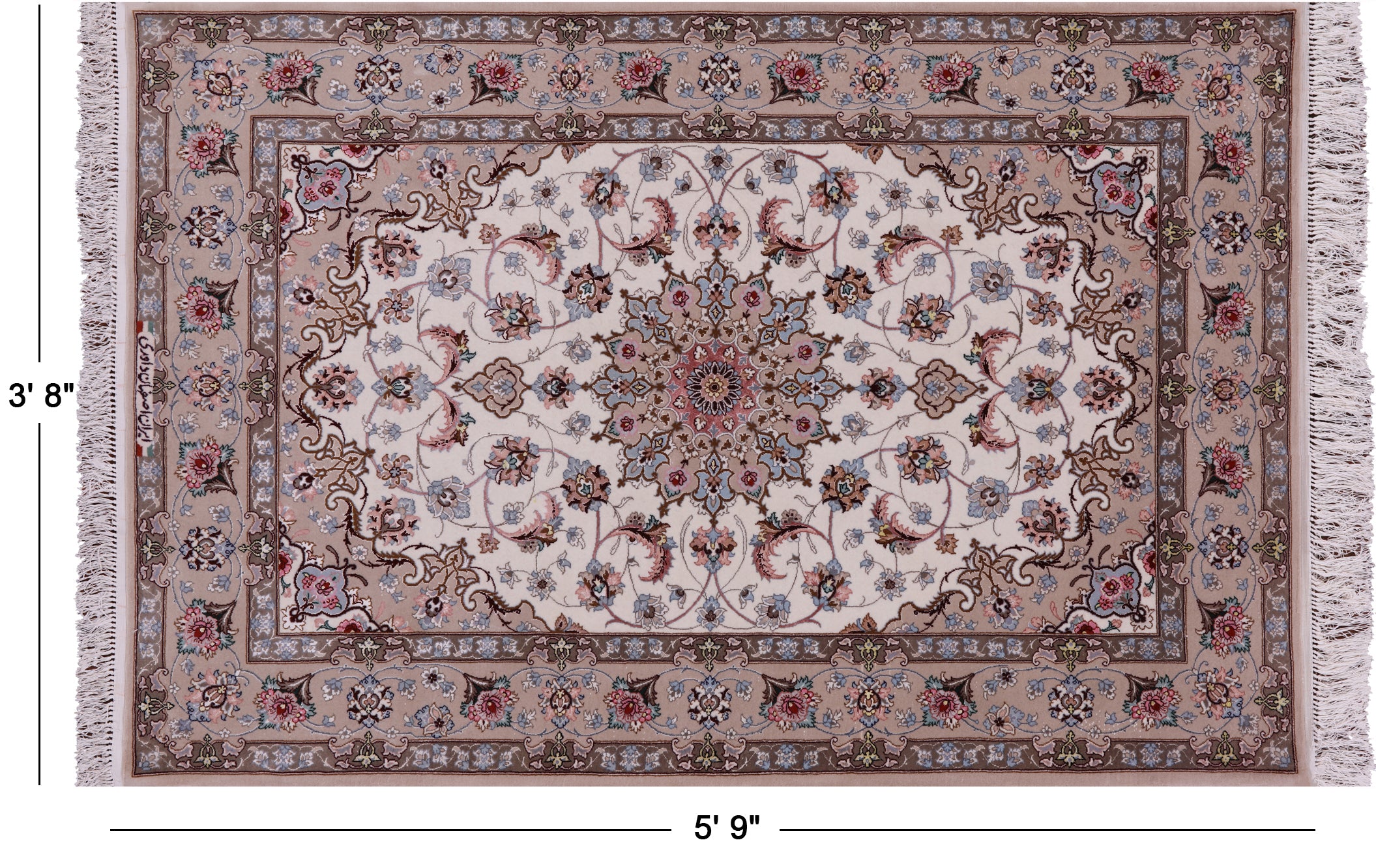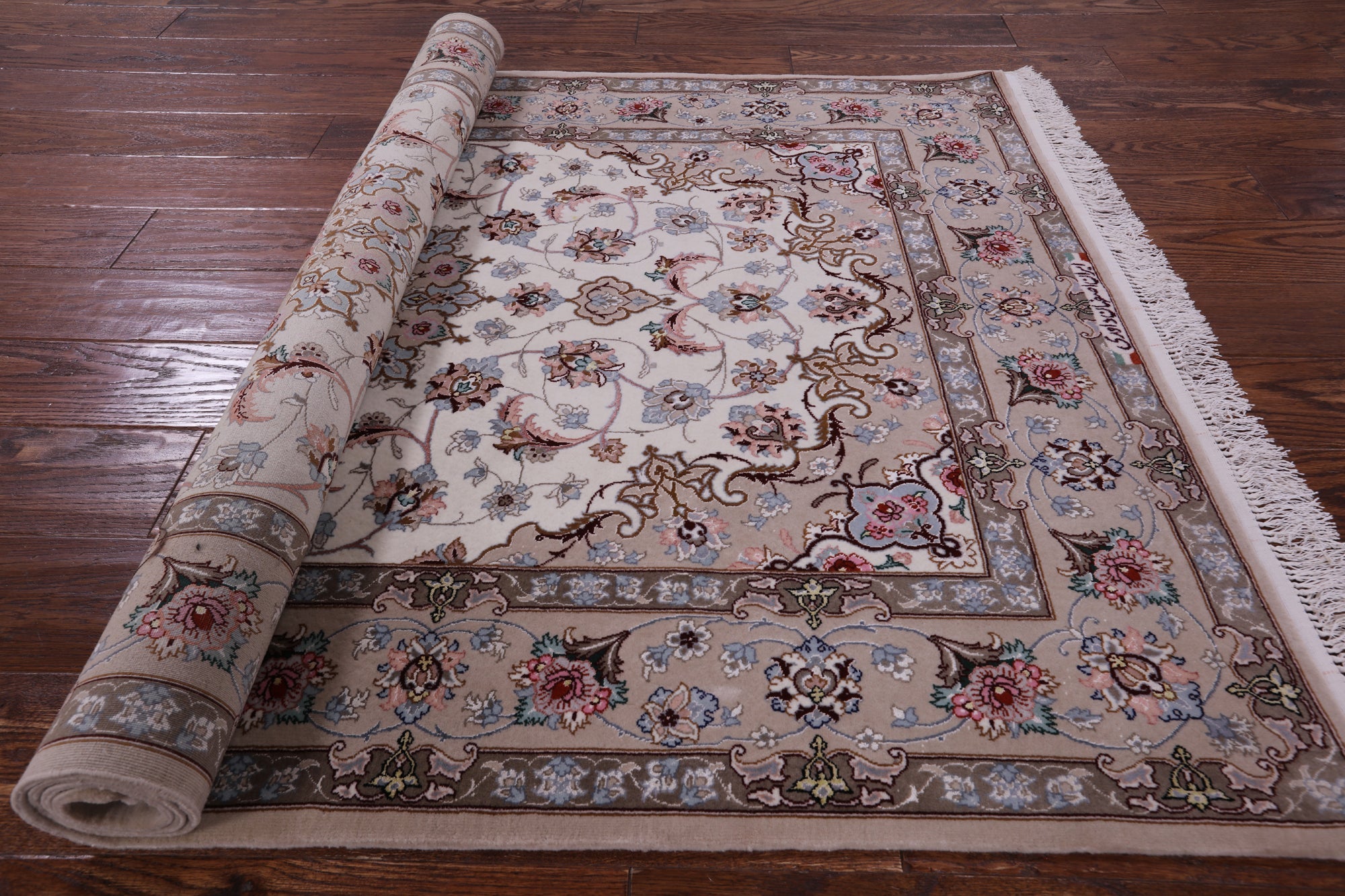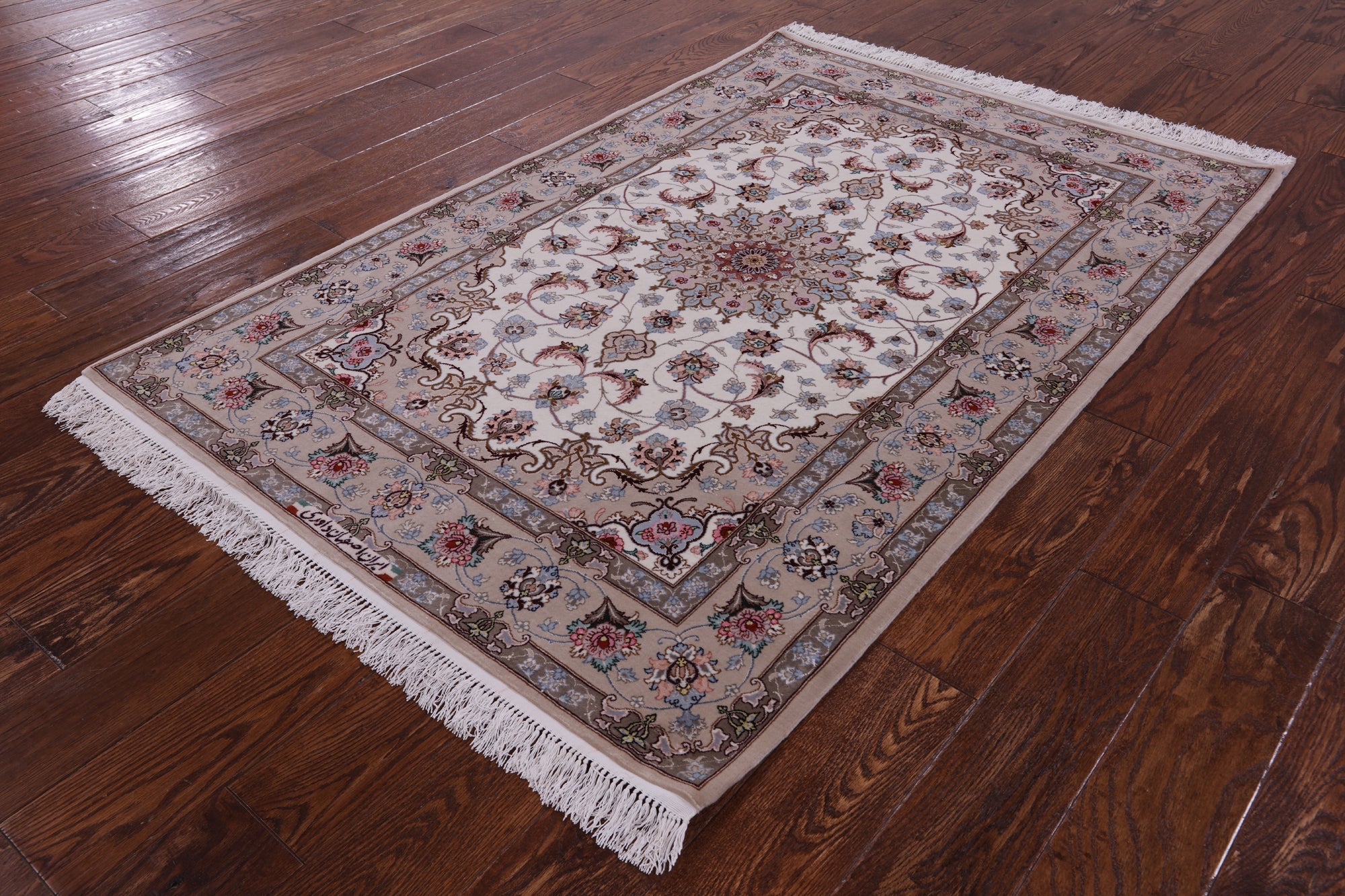 Ivory Signed Hand Knotted Persian Isfahan Wool & Silk Rug 3' 8" X 5' 9" - SA2645 is backordered and will ship as soon as it is back in stock.