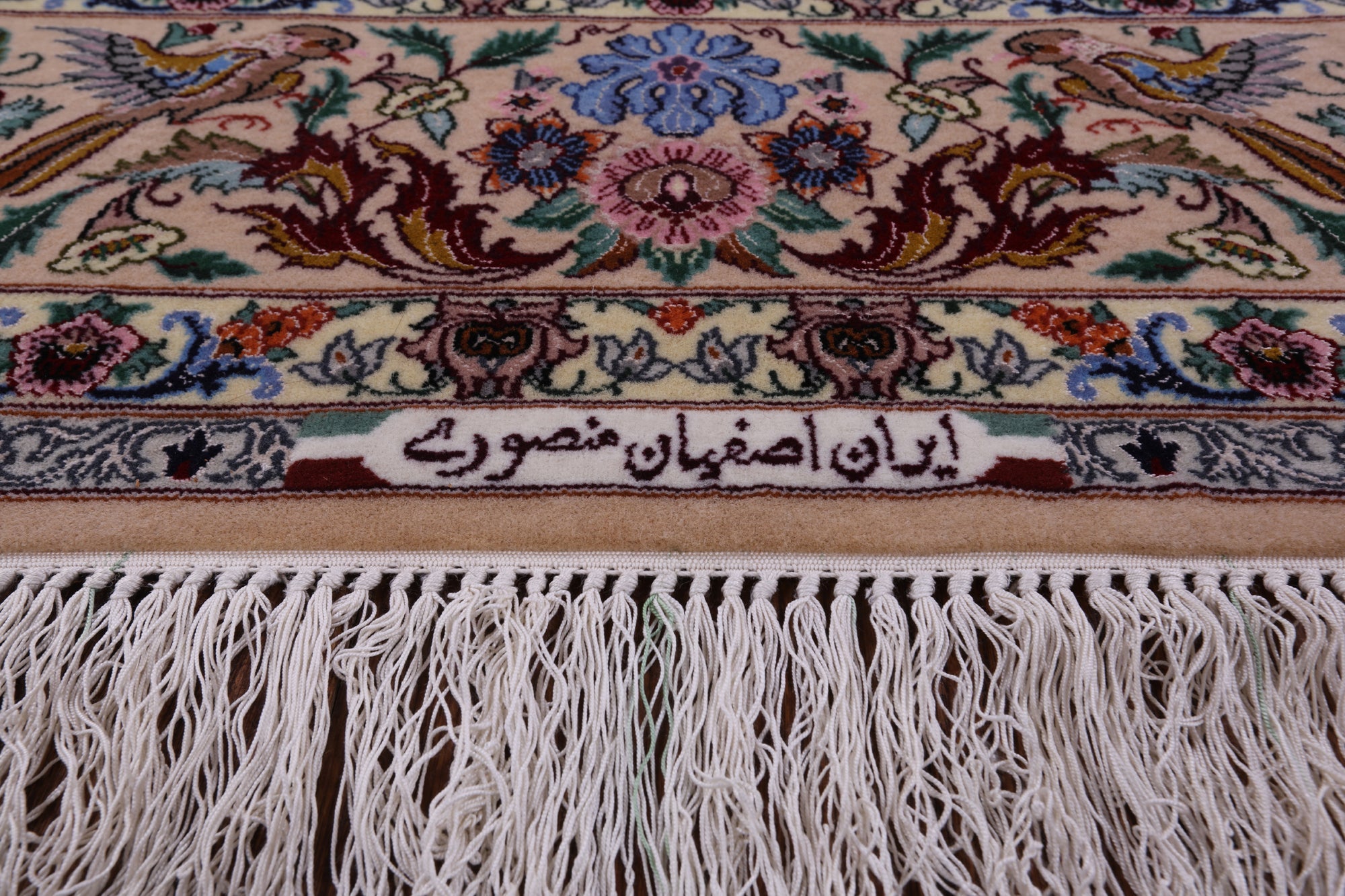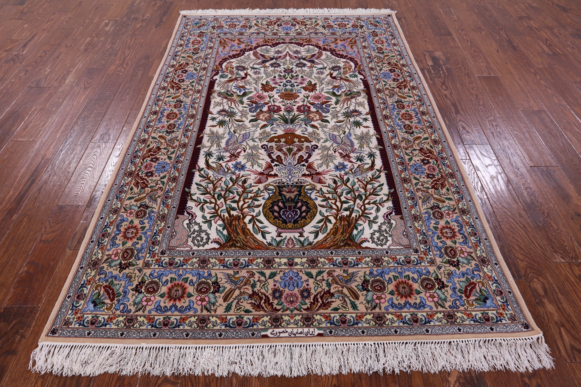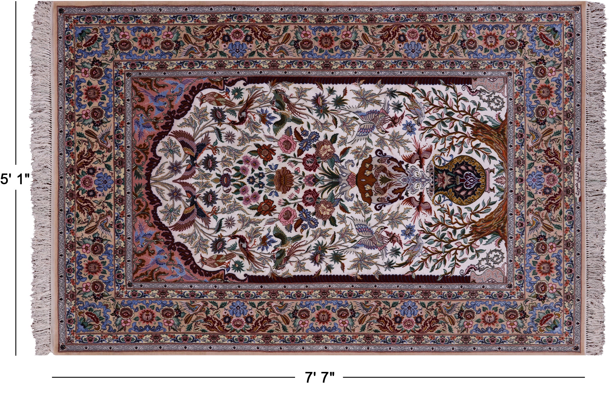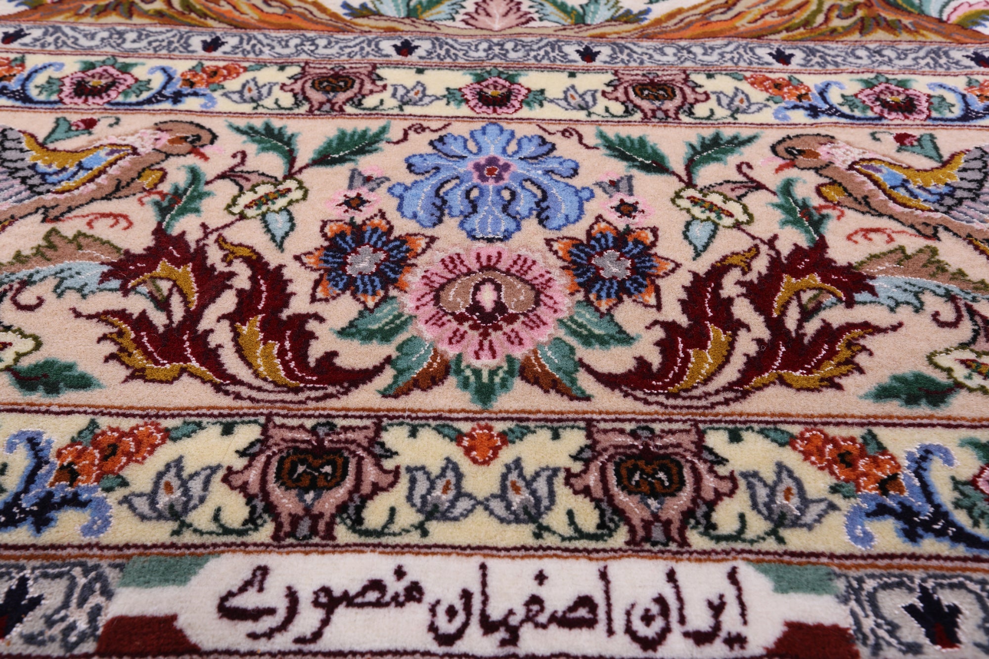Ivory Signed Persian Isfahan Hand Knotted Wool & Silk Area Rug 5' 1" X 7' 7" - SA2664 is backordered and will ship as soon as it is back in stock.