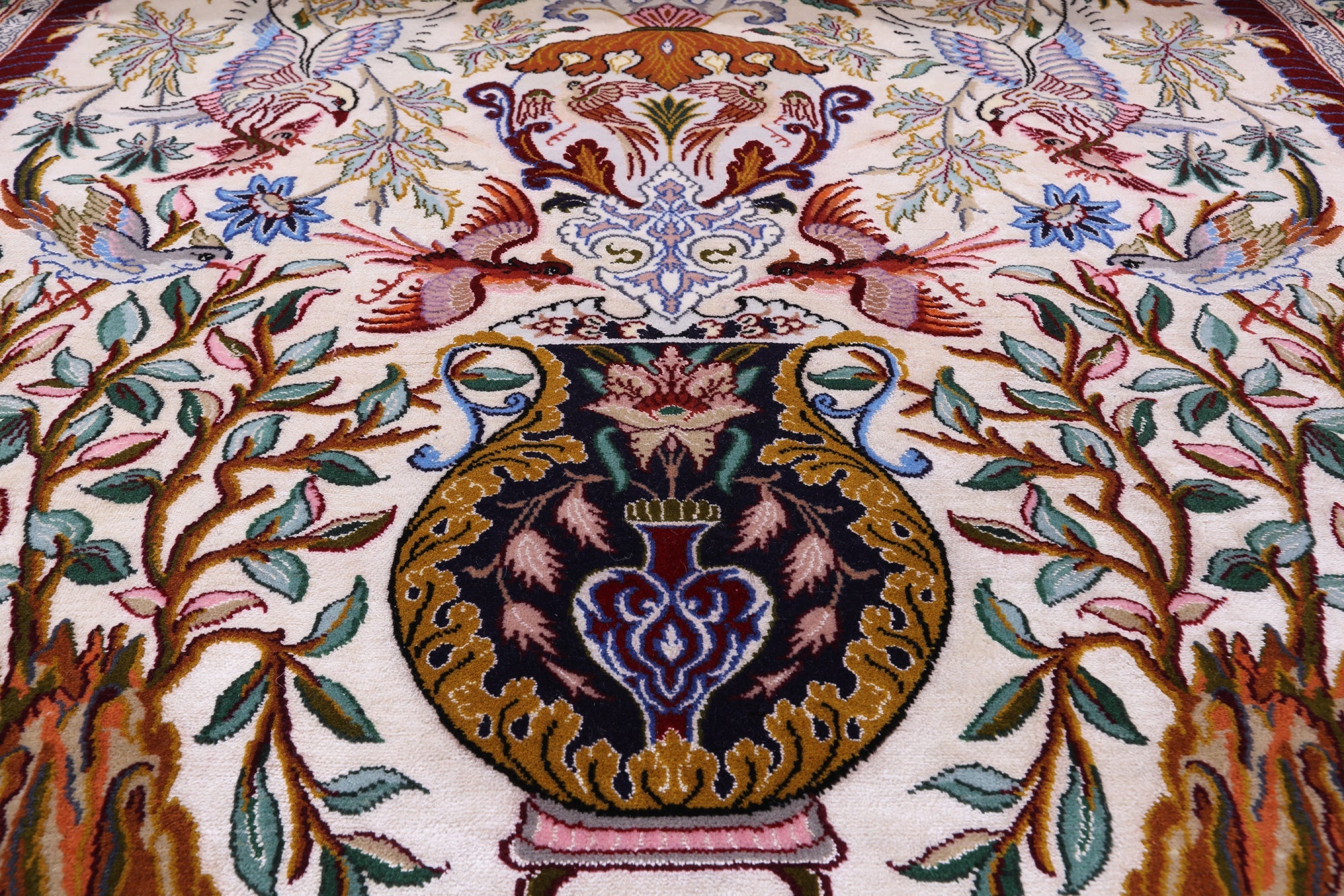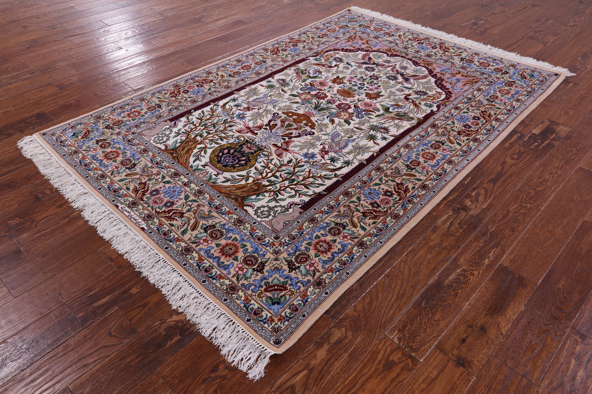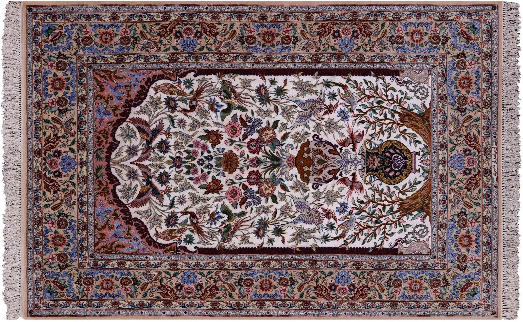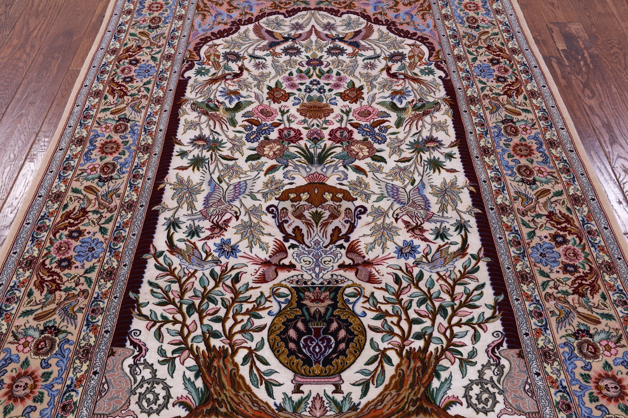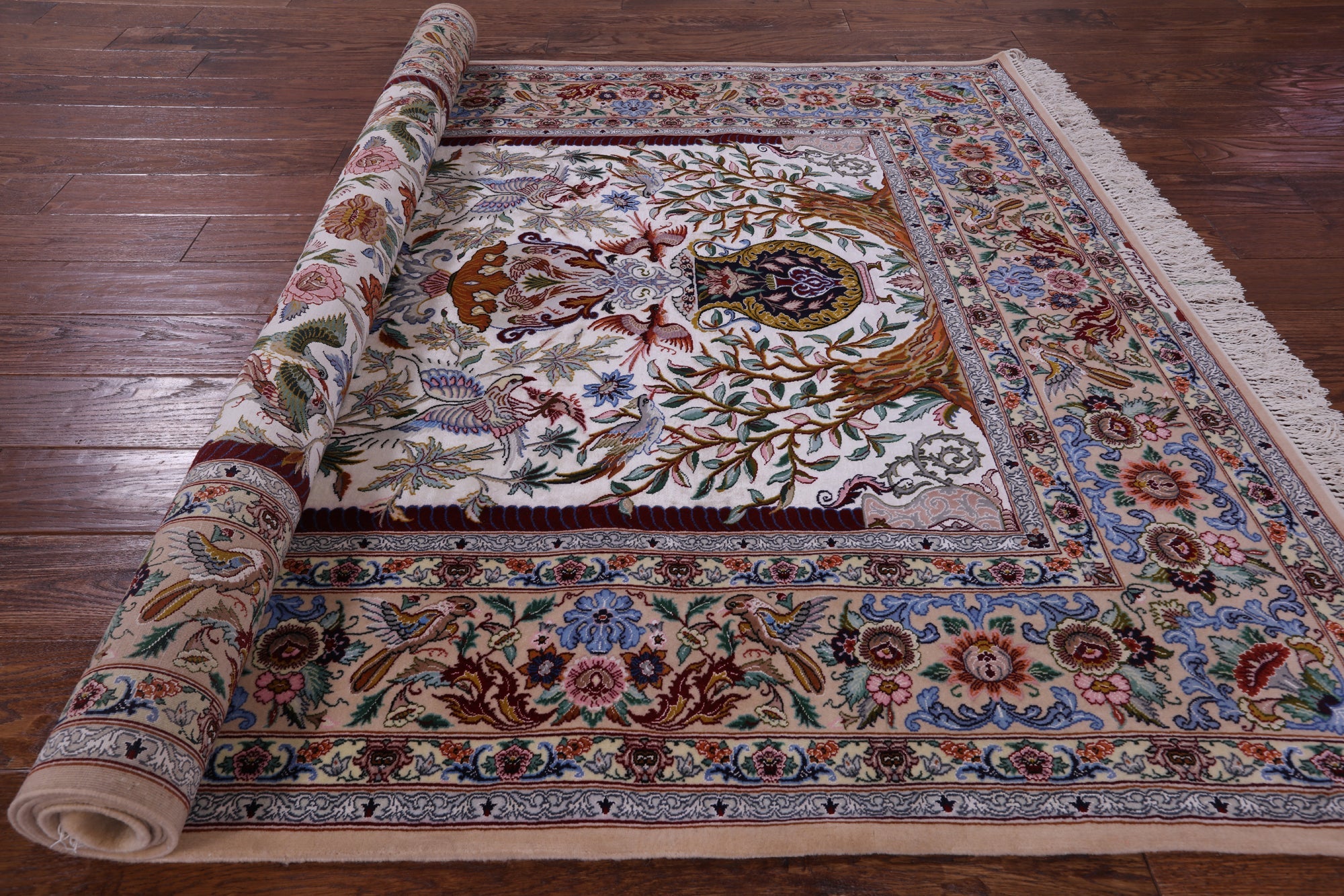 Ivory Signed Persian Isfahan Hand Knotted Wool & Silk Area Rug 5' 1" X 7' 7" - SA2664 is backordered and will ship as soon as it is back in stock.