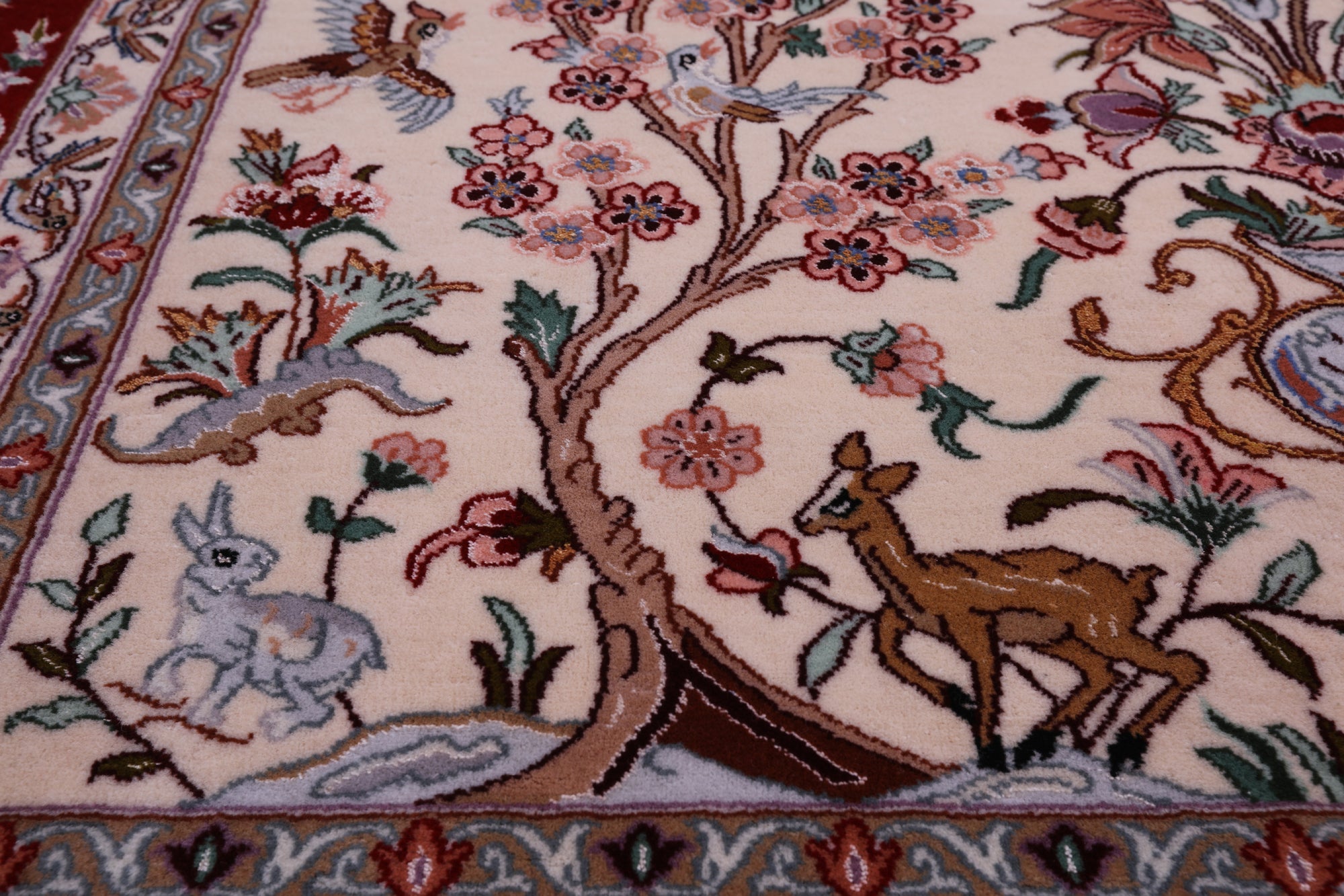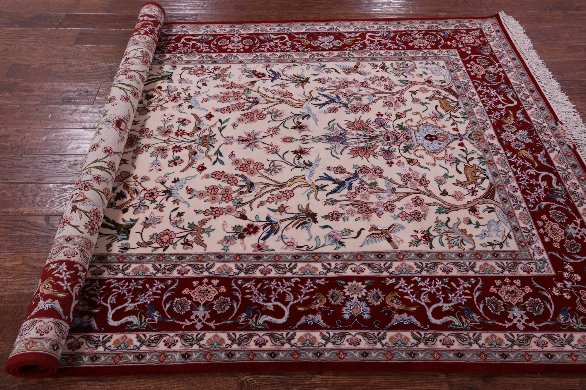 Ivory Signed Persian Isfahan Hand Knotted Wool & Silk Rug 5' 1" X 7' 7" - SA2742 is backordered and will ship as soon as it is back in stock.