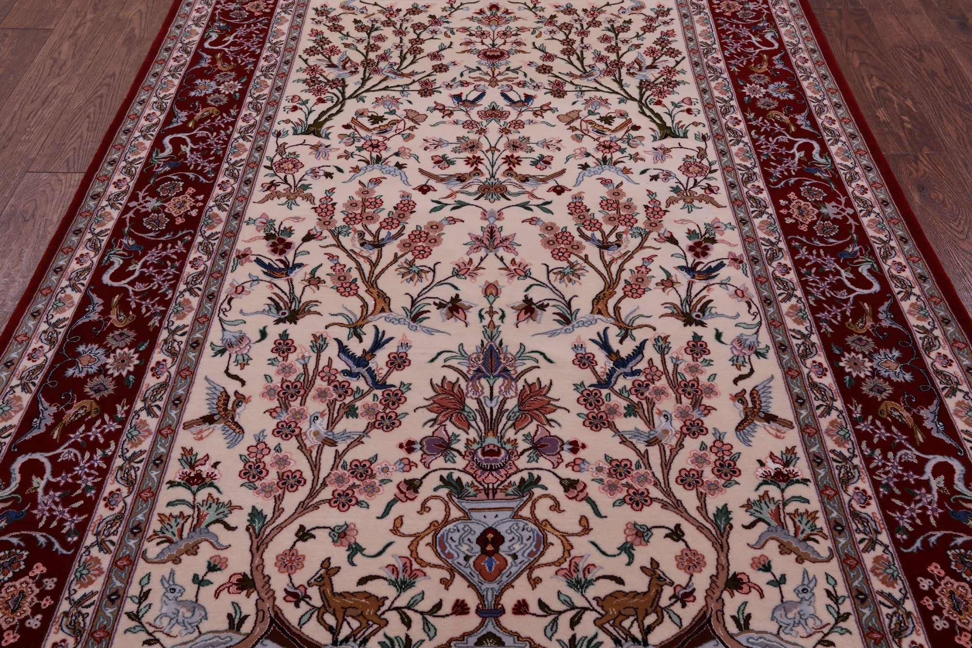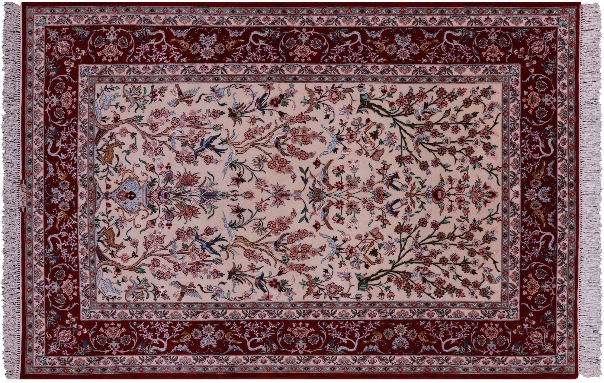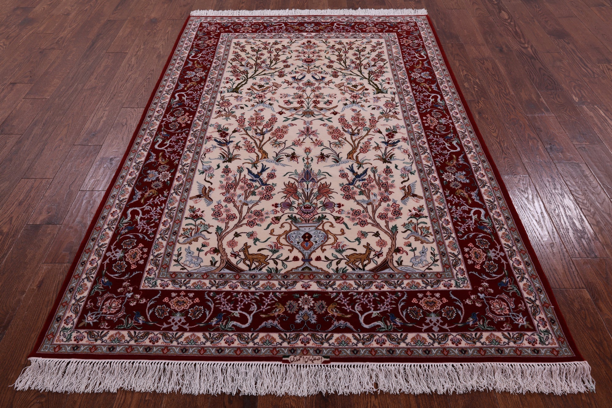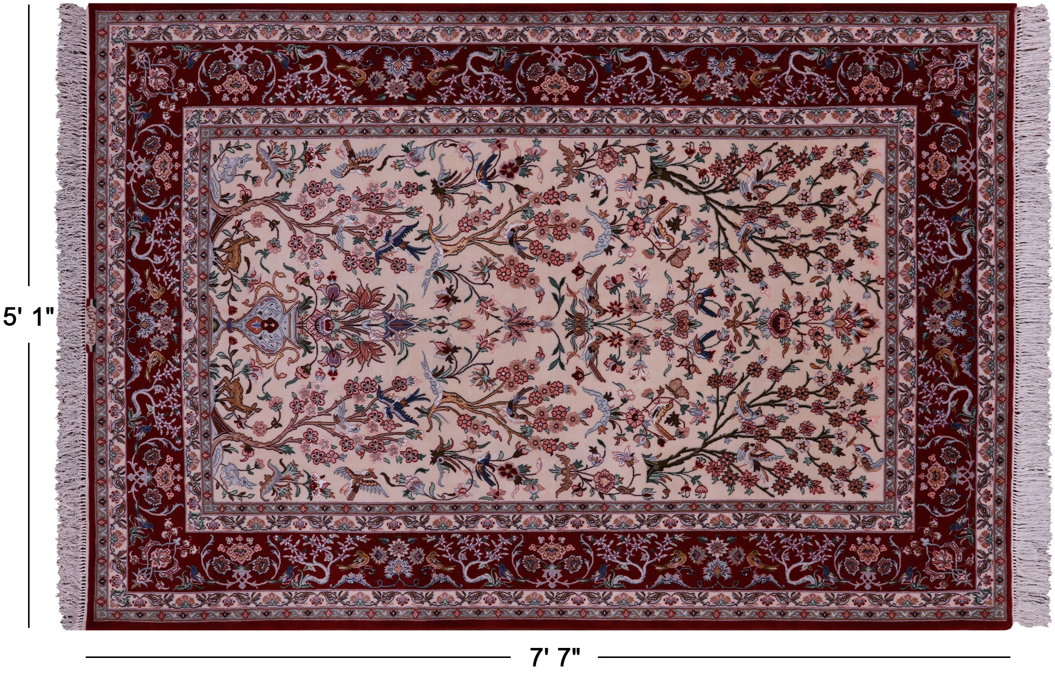 Ivory Signed Persian Isfahan Hand Knotted Wool & Silk Rug 5' 1" X 7' 7" - SA2742