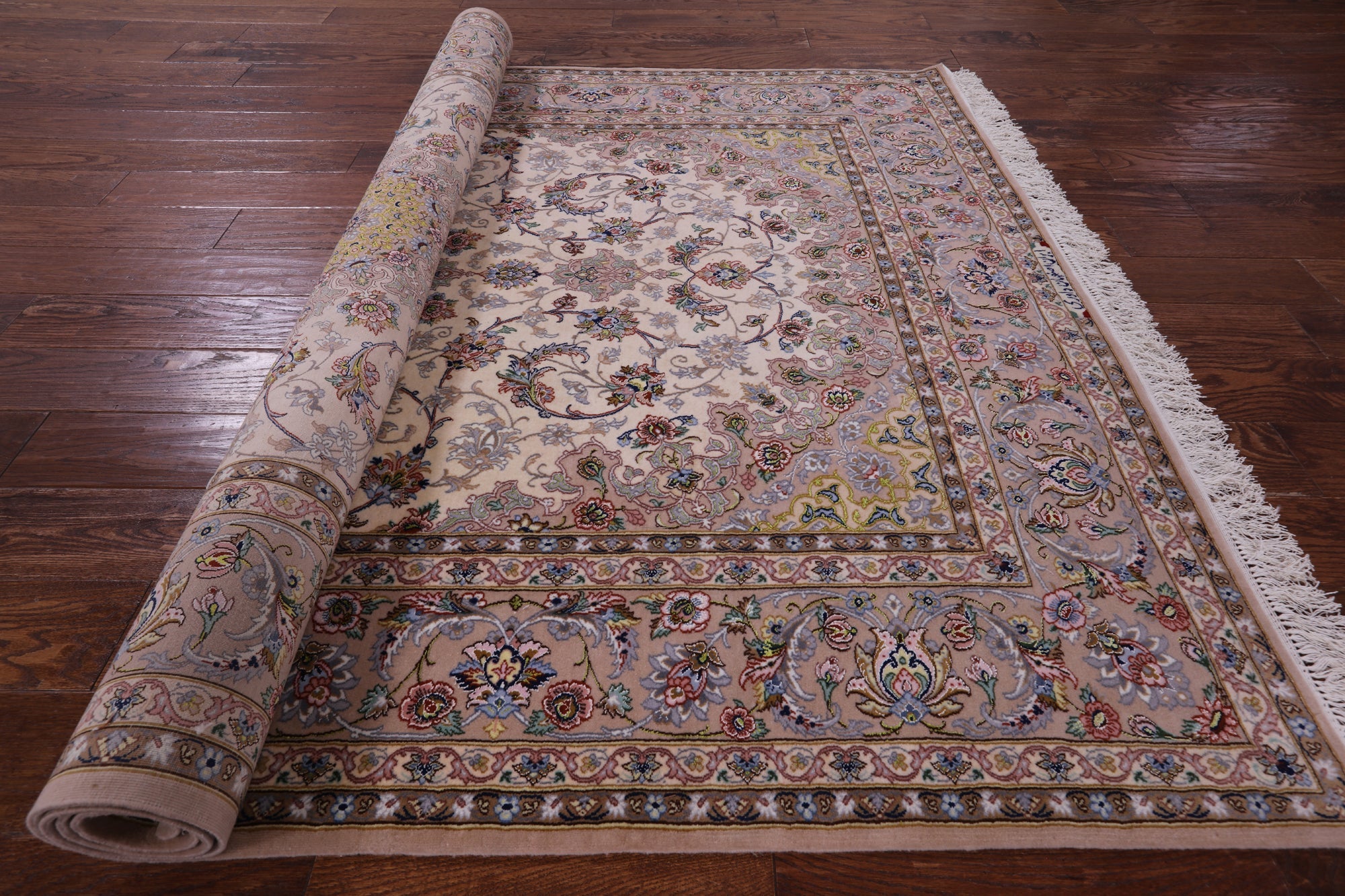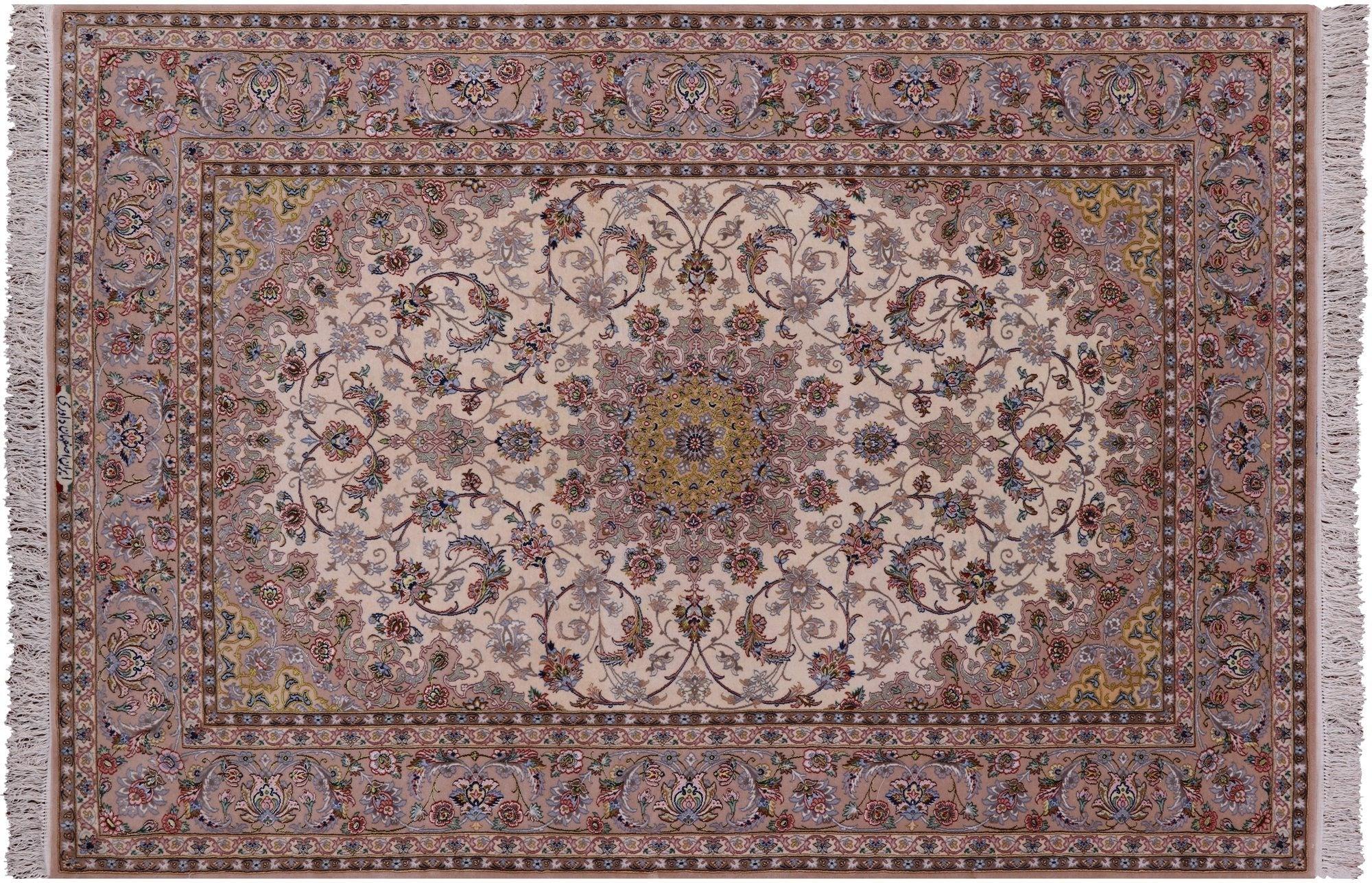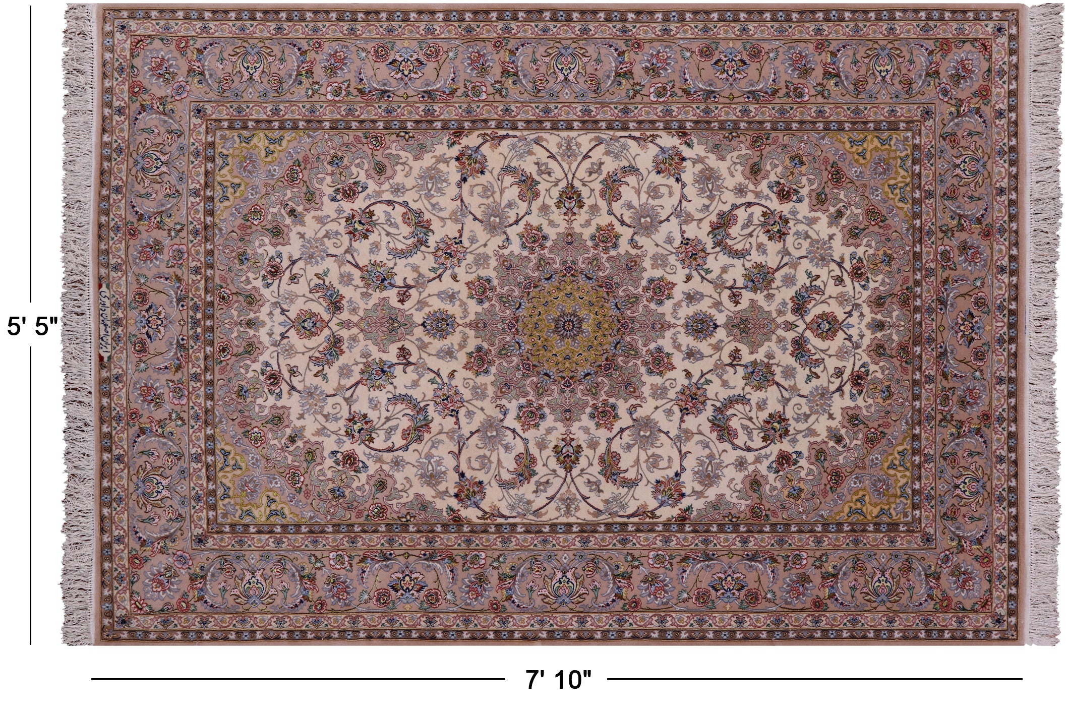 Ivory Signed Persian Isfahan Handmade Wool & Silk Rug 5' 5" X 7' 10" - SA2776