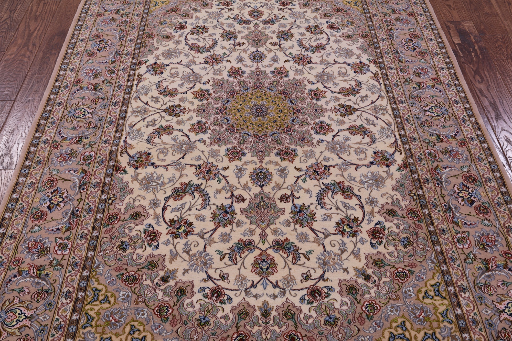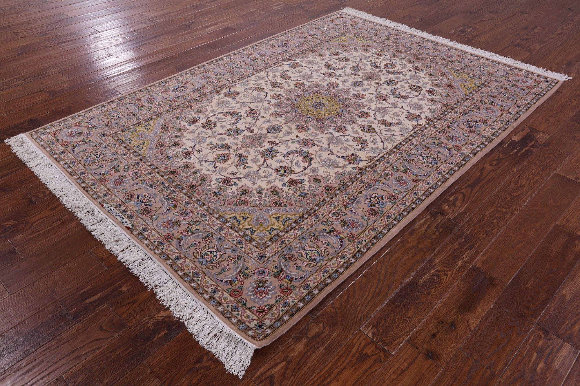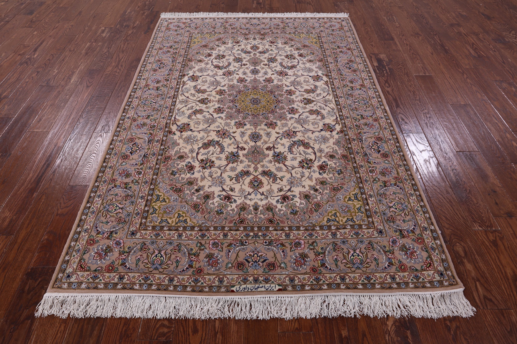 Ivory Signed Persian Isfahan Handmade Wool & Silk Rug 5' 5" X 7' 10" - SA2776 is backordered and will ship as soon as it is back in stock.