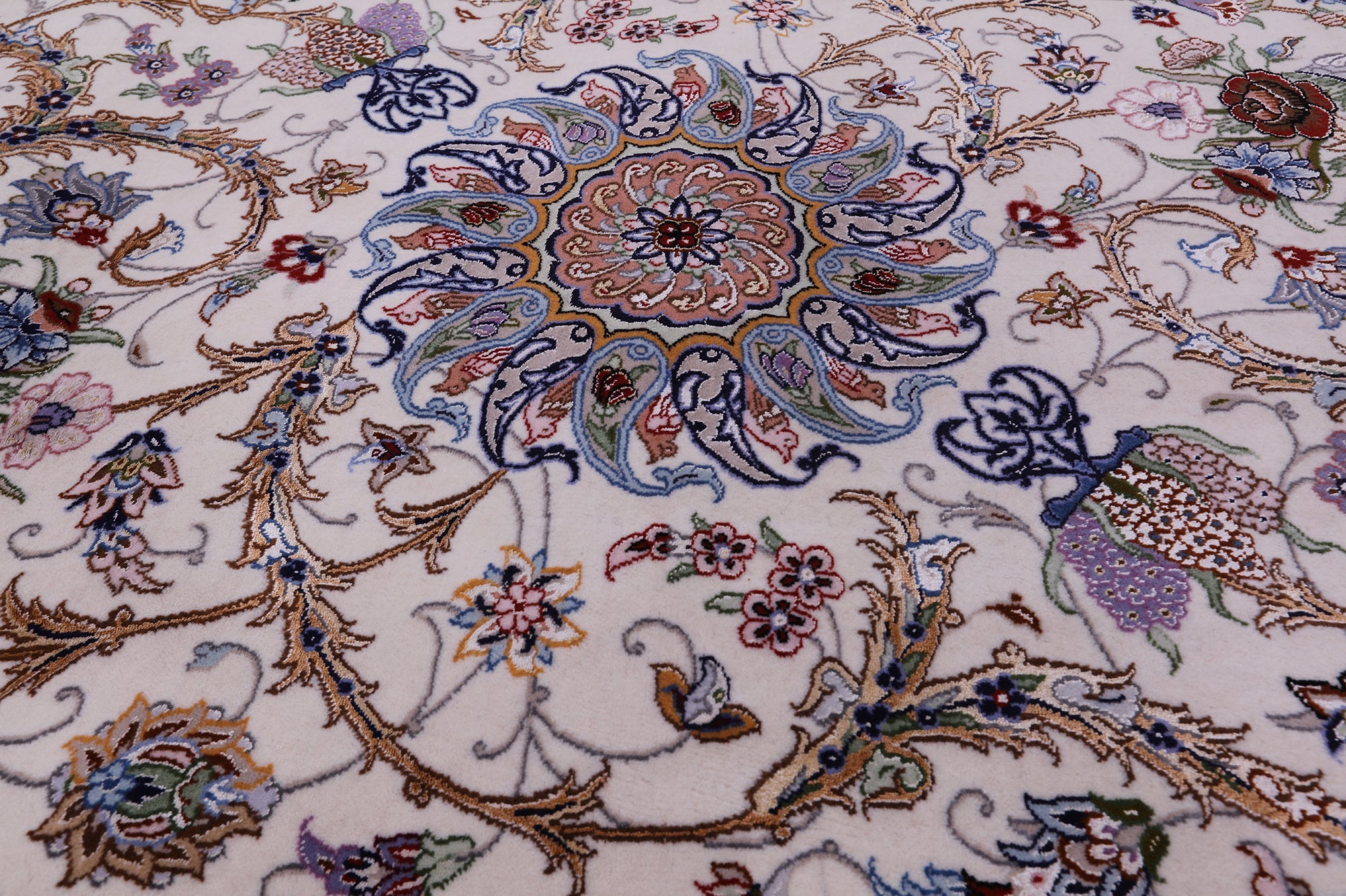 Isfahan rugs date back to the seventeenth century. Isfahan was then the capital of Persia. These rugs are known to be classic and are hand knotted with either silk or wool foundations. They use variety vegetable dye colors such as reds, blues, ivory, beige, black and much more. Isfahan rugs are one of the highest quality rugs in the world.