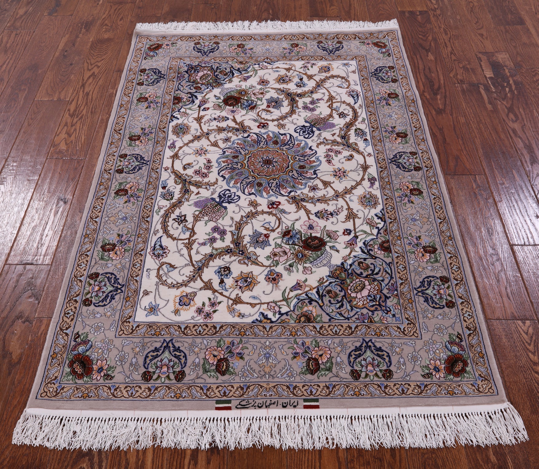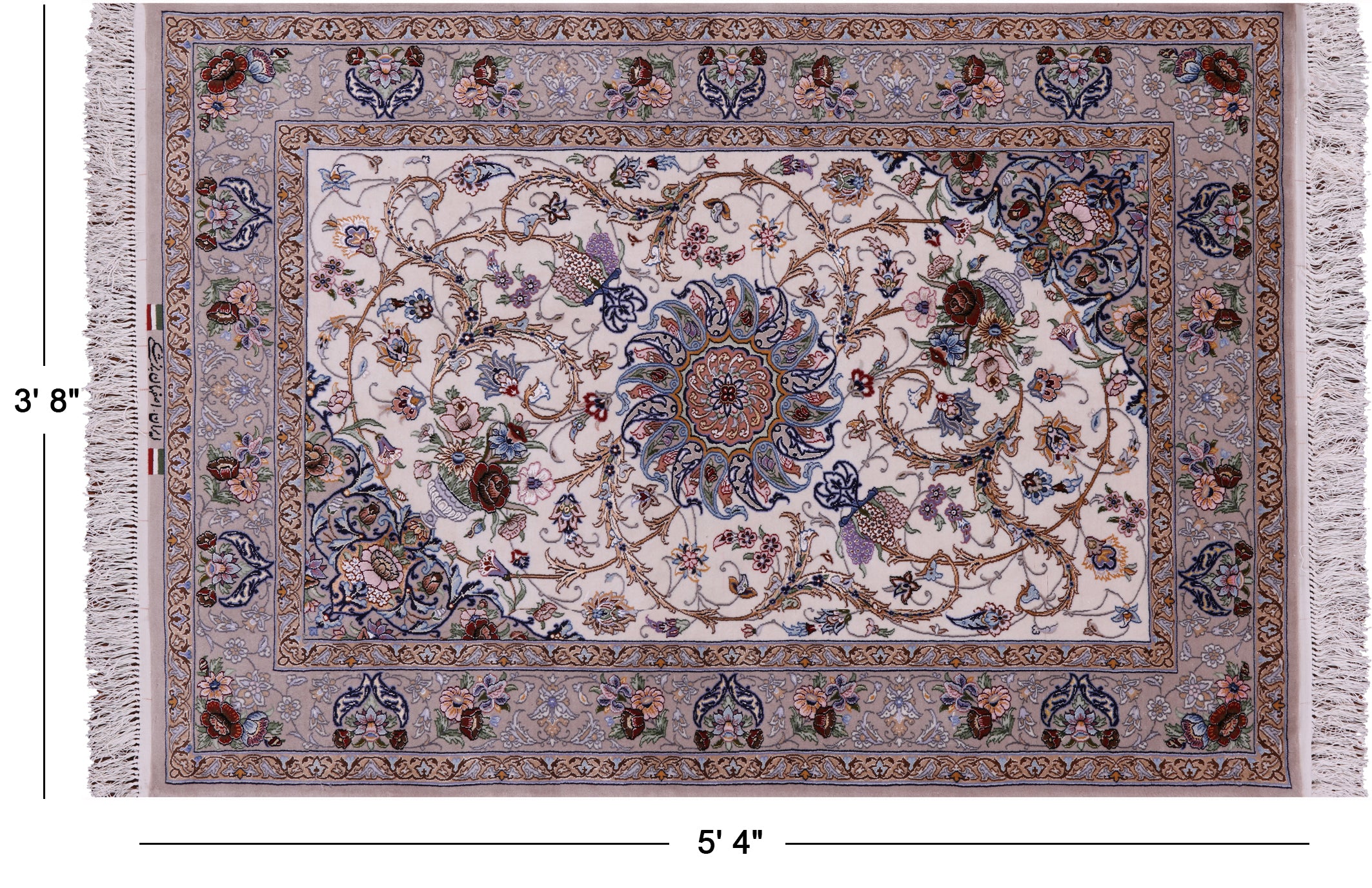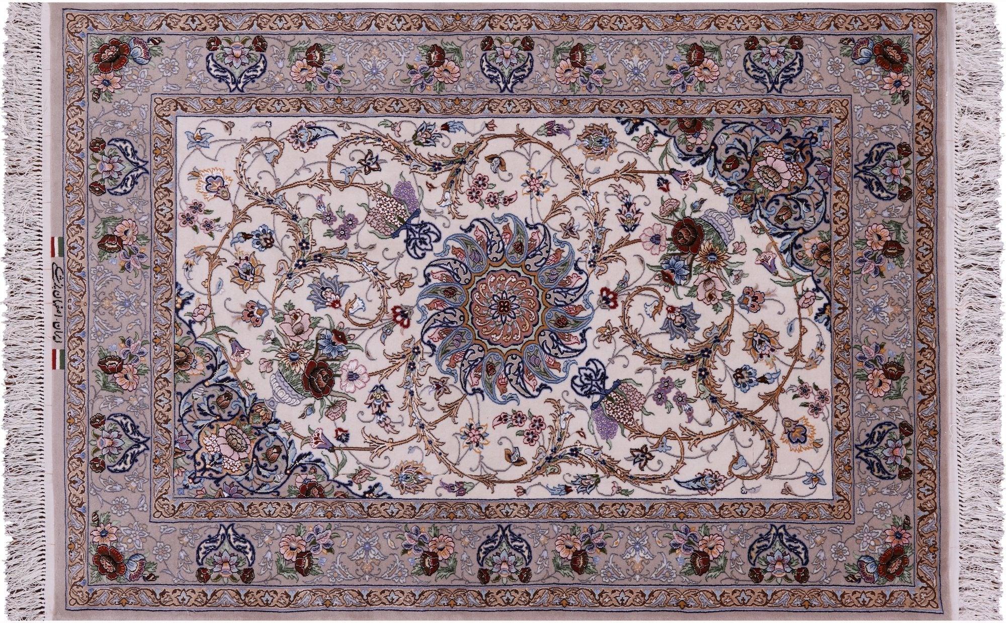 Ivory Signed Persian Isfahan Wool & Silk Area Rug 3' 8" X 5' 4" - SA2681
