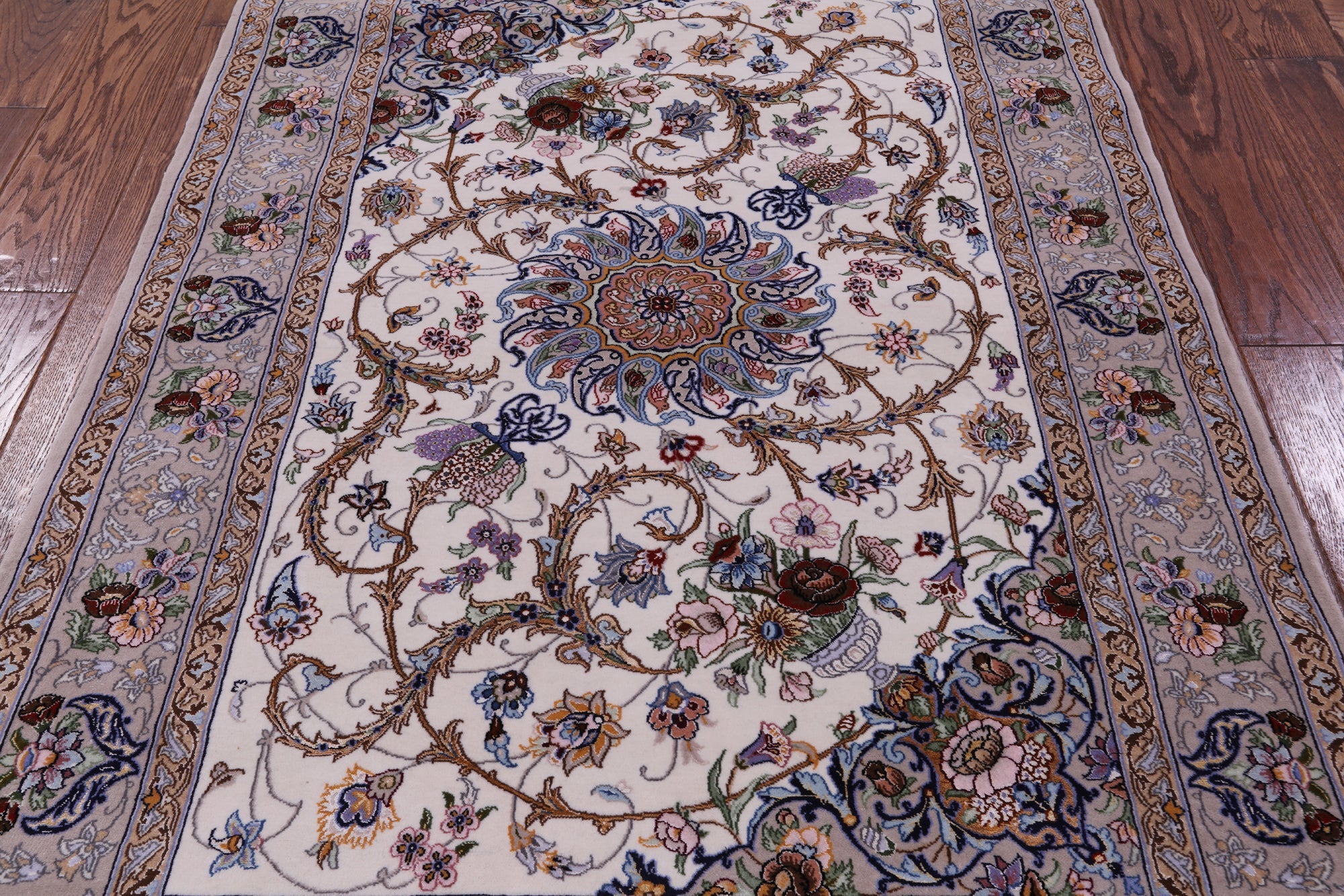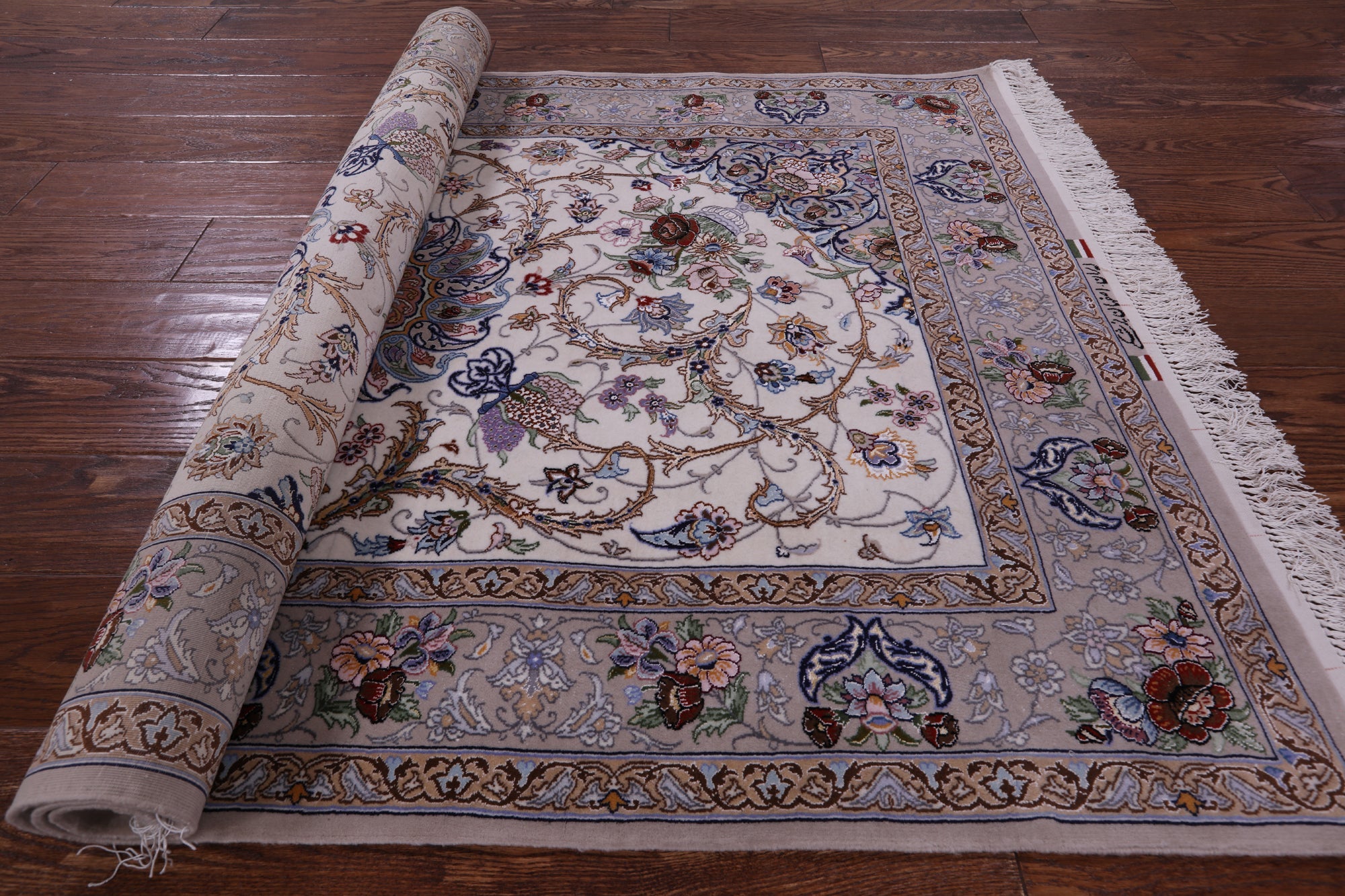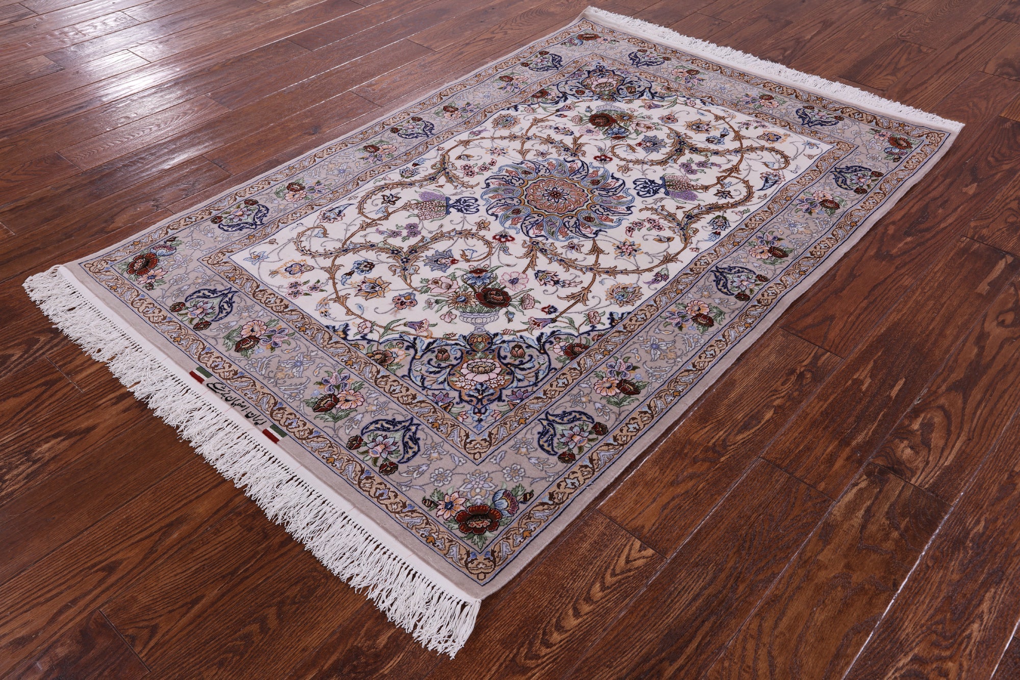 Ivory Signed Persian Isfahan Wool & Silk Area Rug 3' 8" X 5' 4" - SA2681