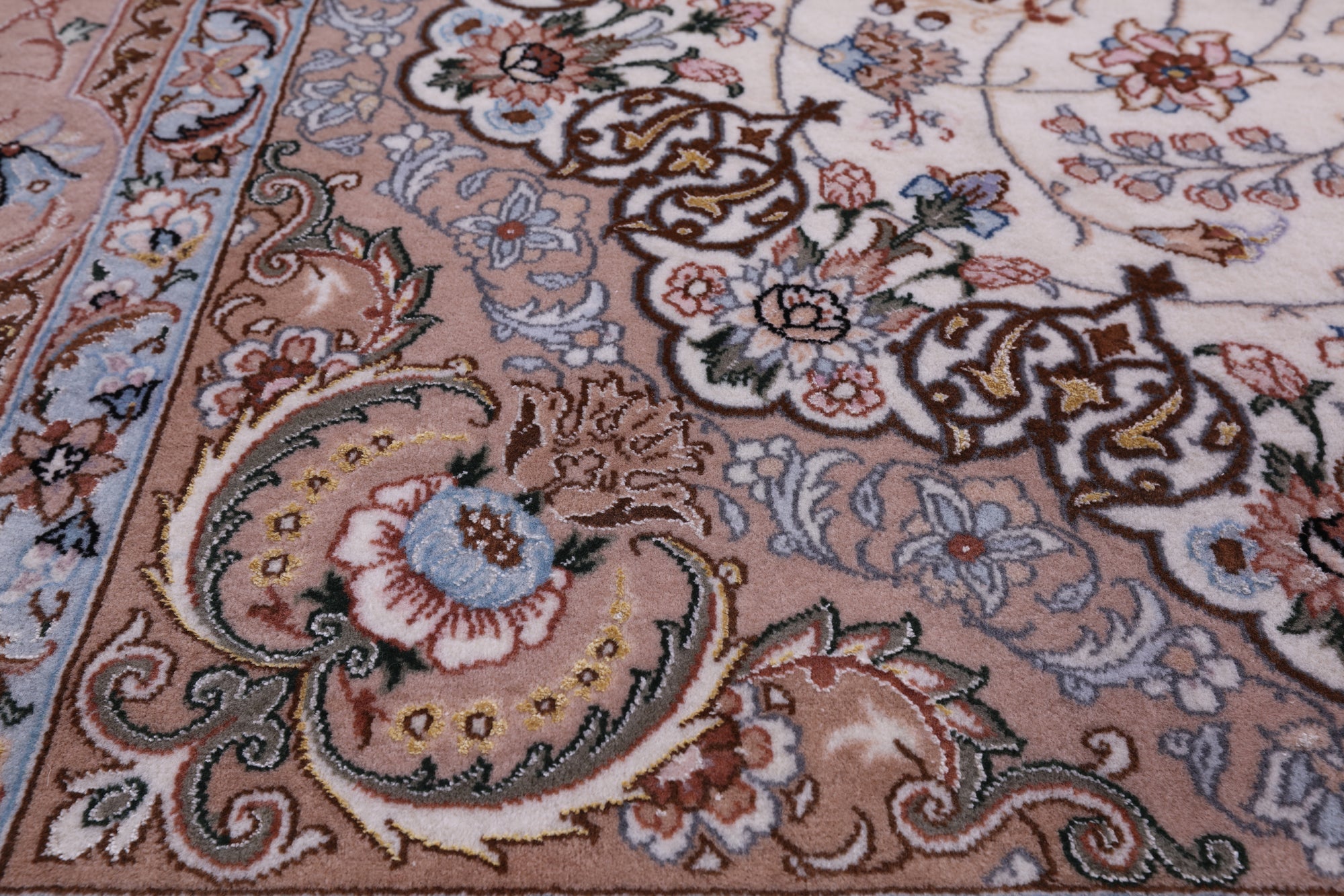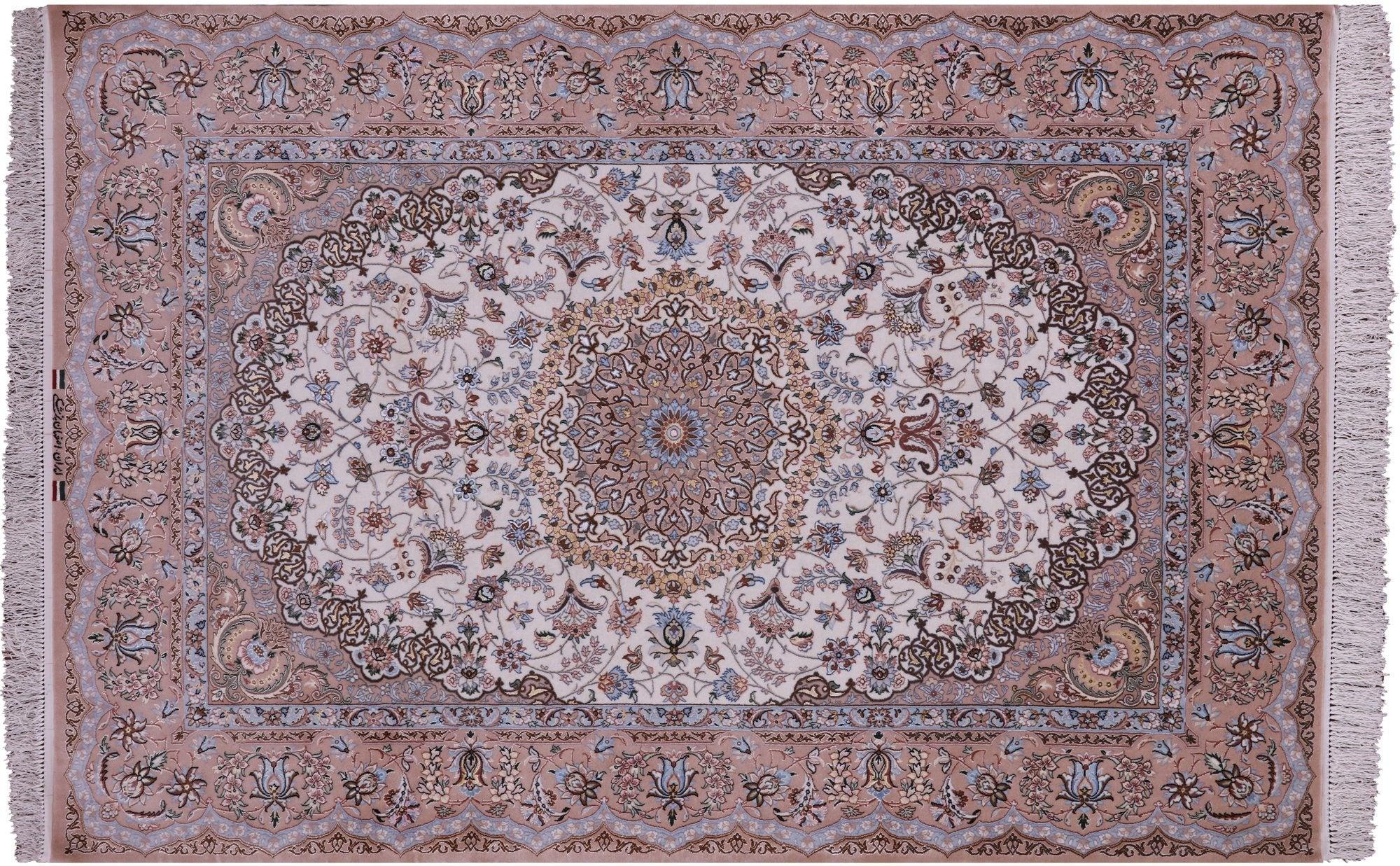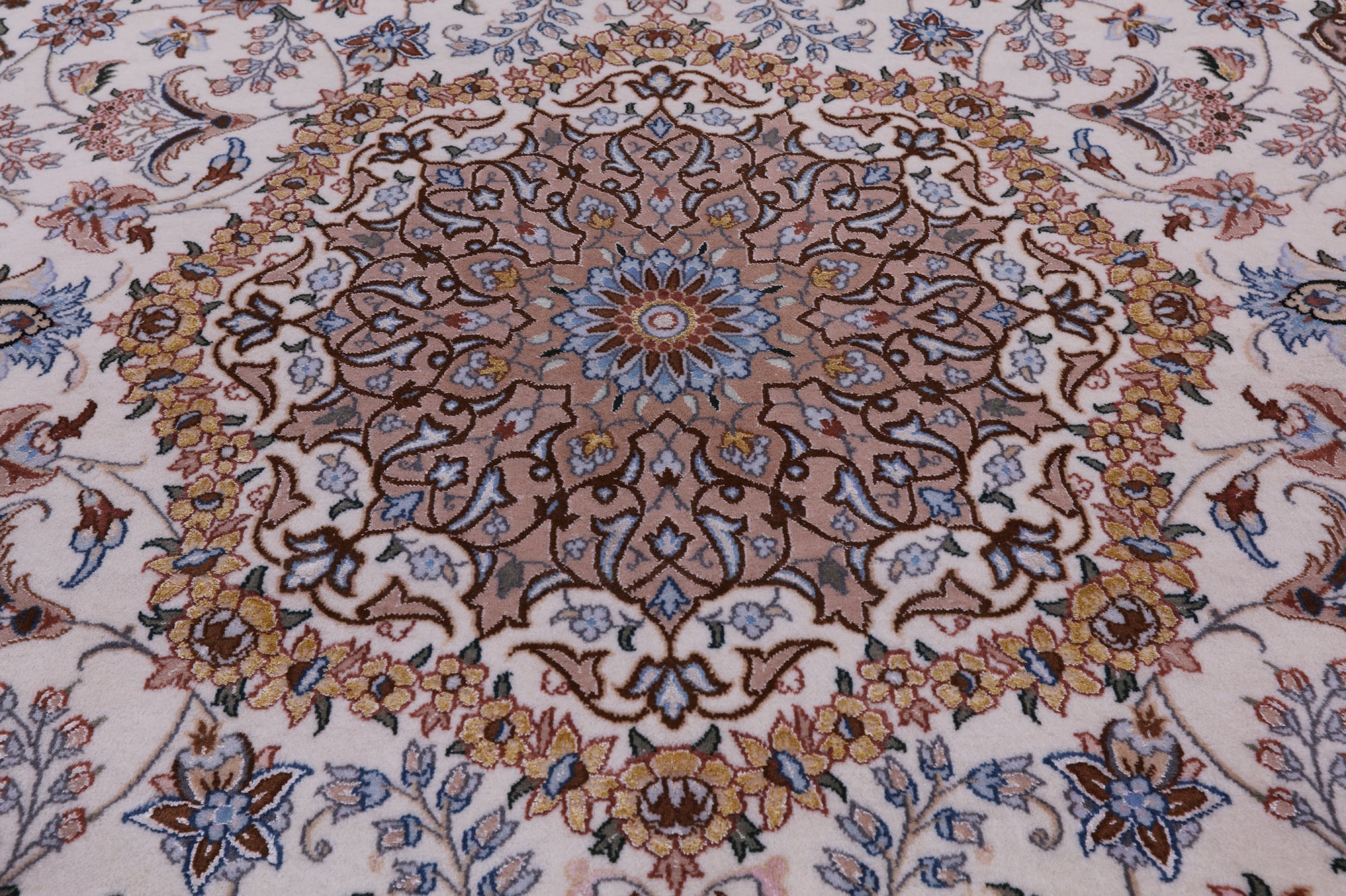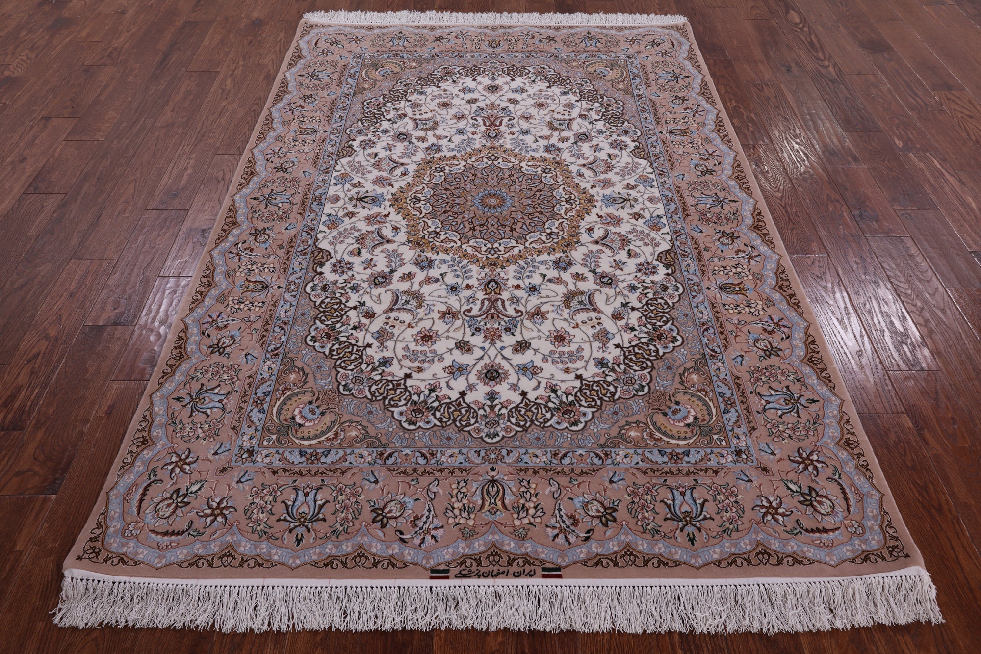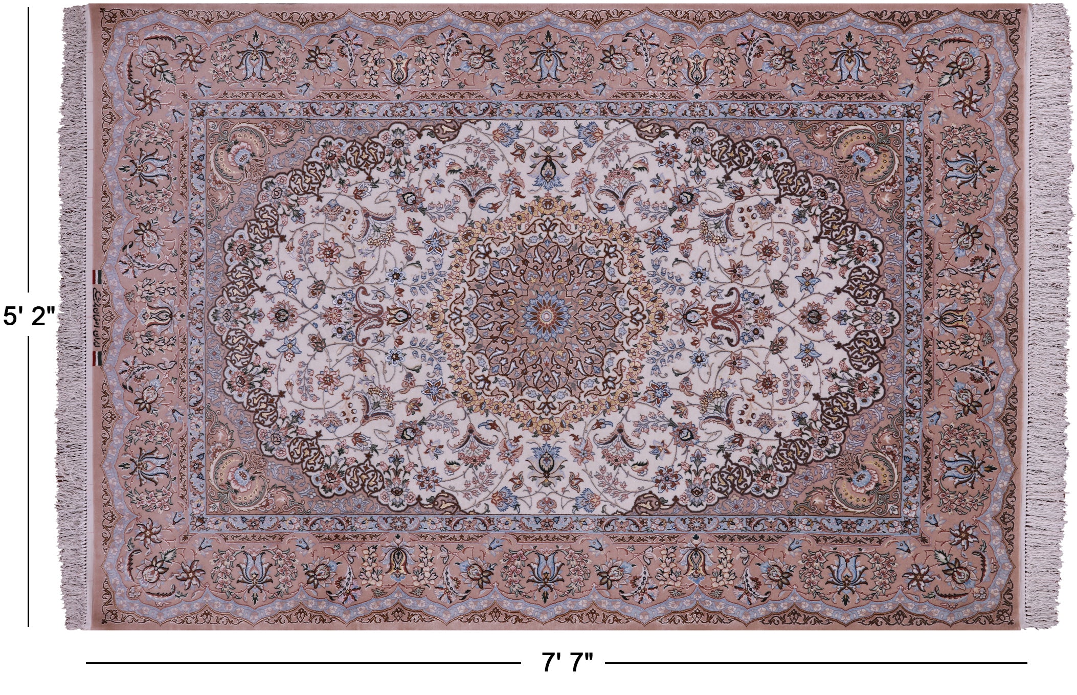 Ivory Wool & Silk Signed Isfahan Persian Rug 5' 2" X 7' 7" - SA2623