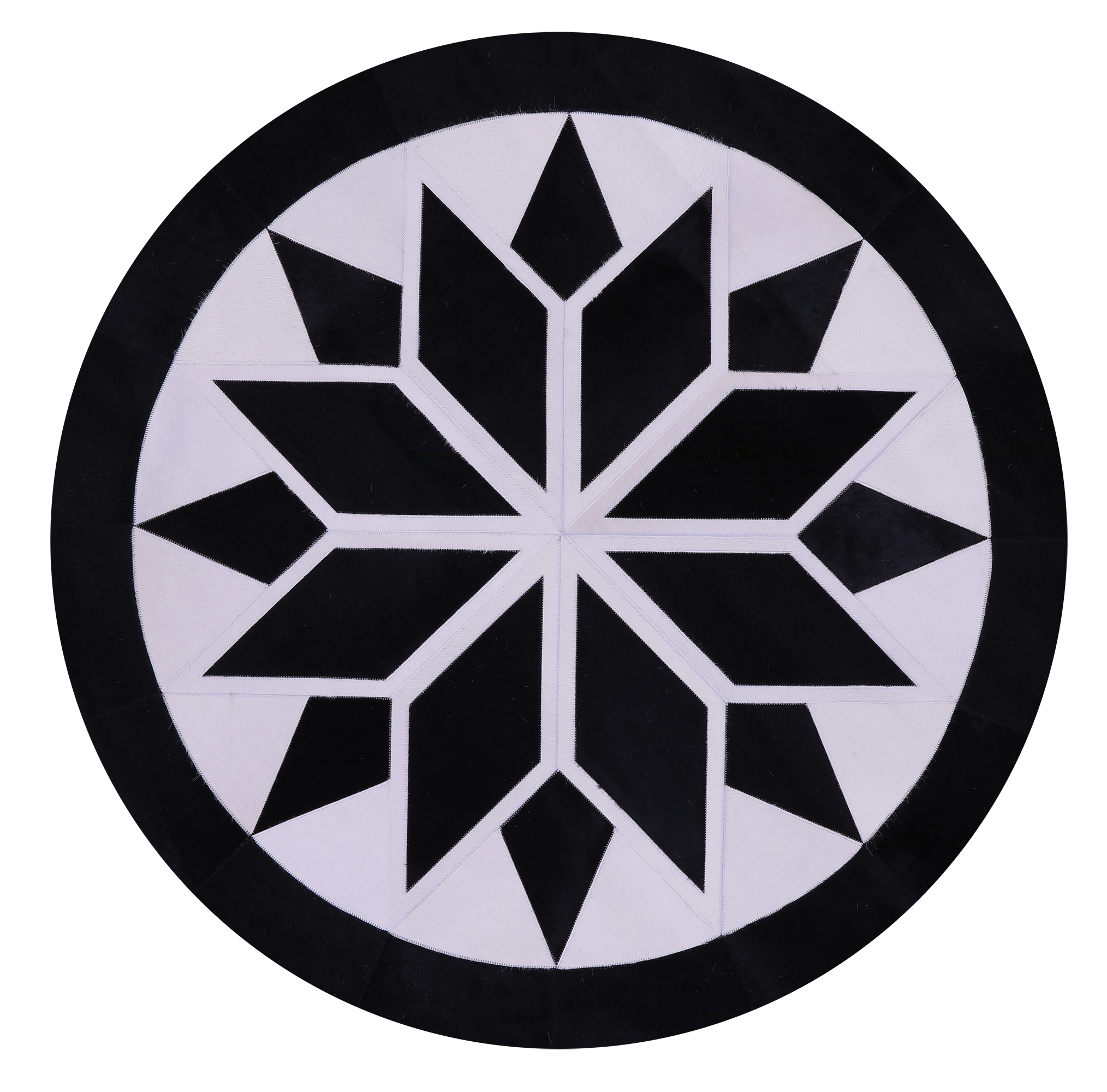 5' 0" X 5' 0" Black & White Round Natural Cowhide Hand Stitched Rug - C3561 is backordered and will ship as soon as it is back in stock.