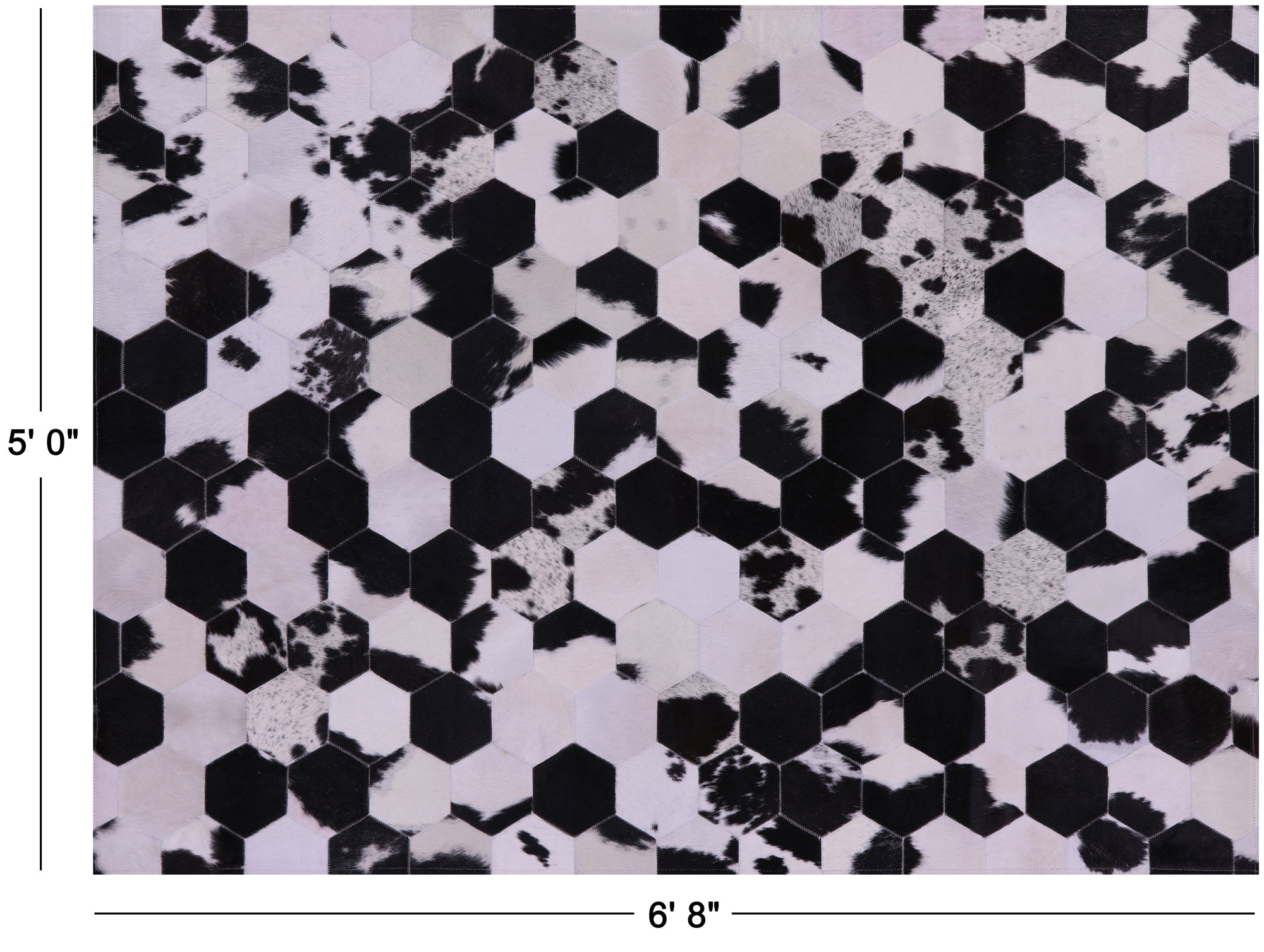 5' 0" X 6' 8" Black & White With Pink Hue Natural Cowhide Hand Stitched Rug - C3440