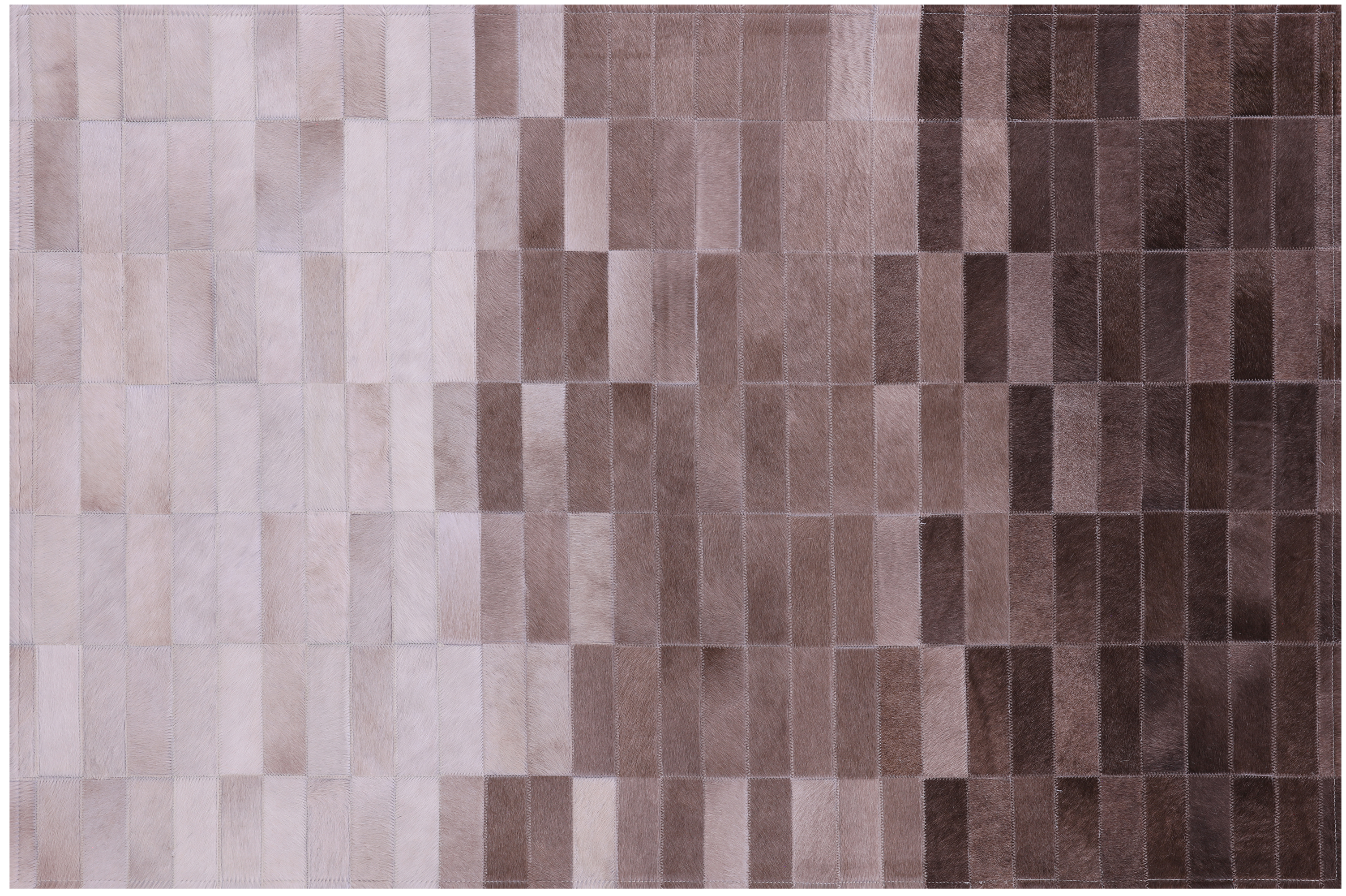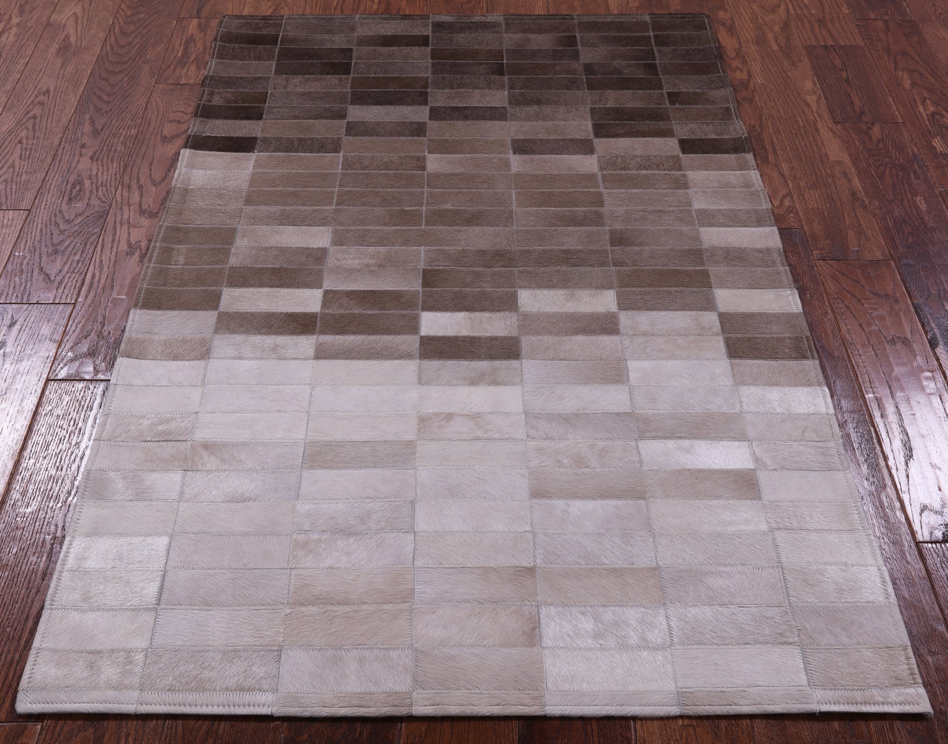Brown & White Gradient Brickwork Natural Cowhide Hand Stitched Rug 3' 3" X 5' 0" - C3409