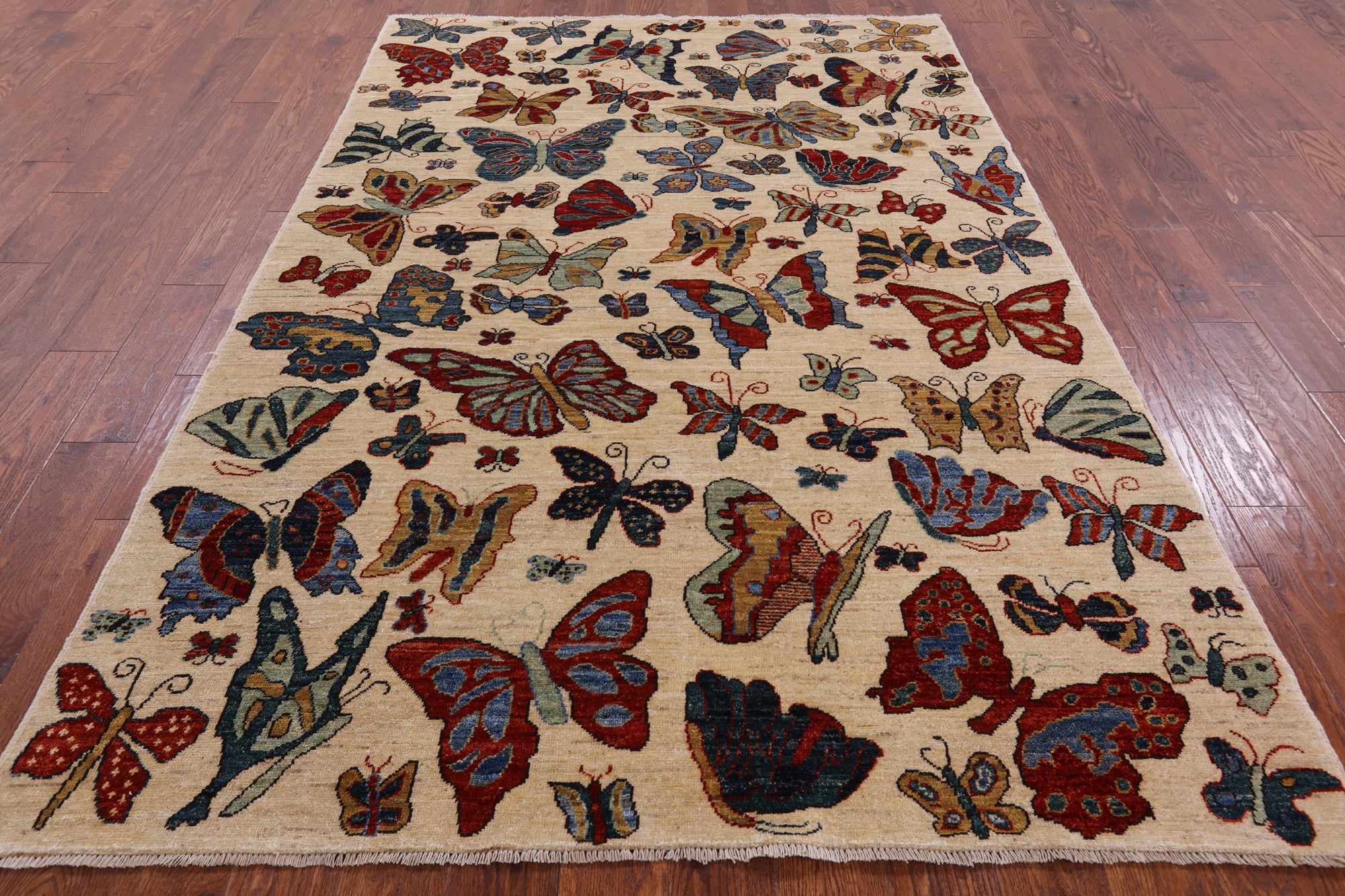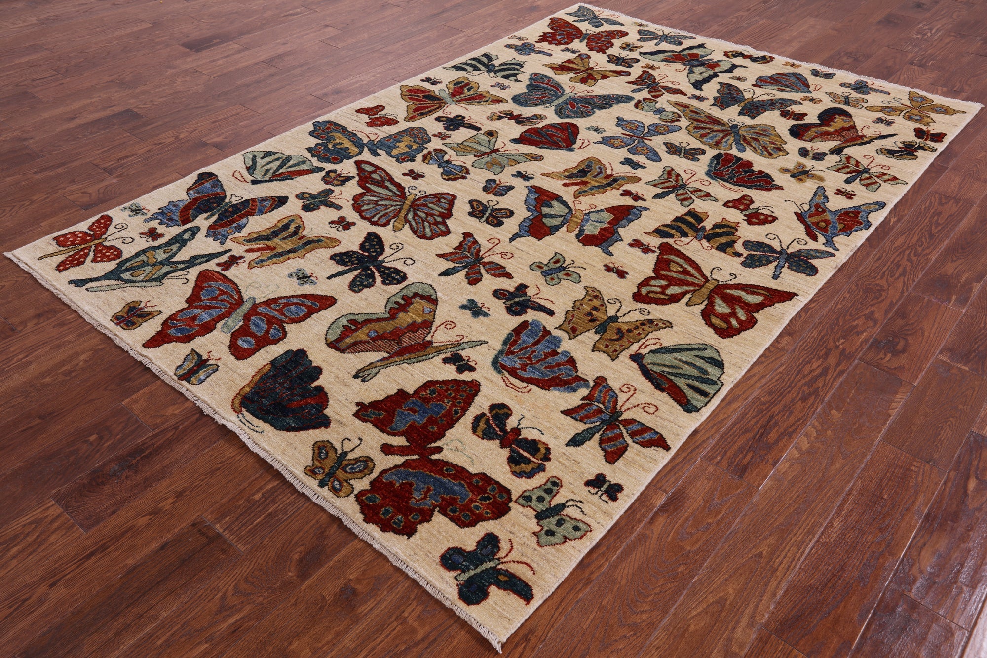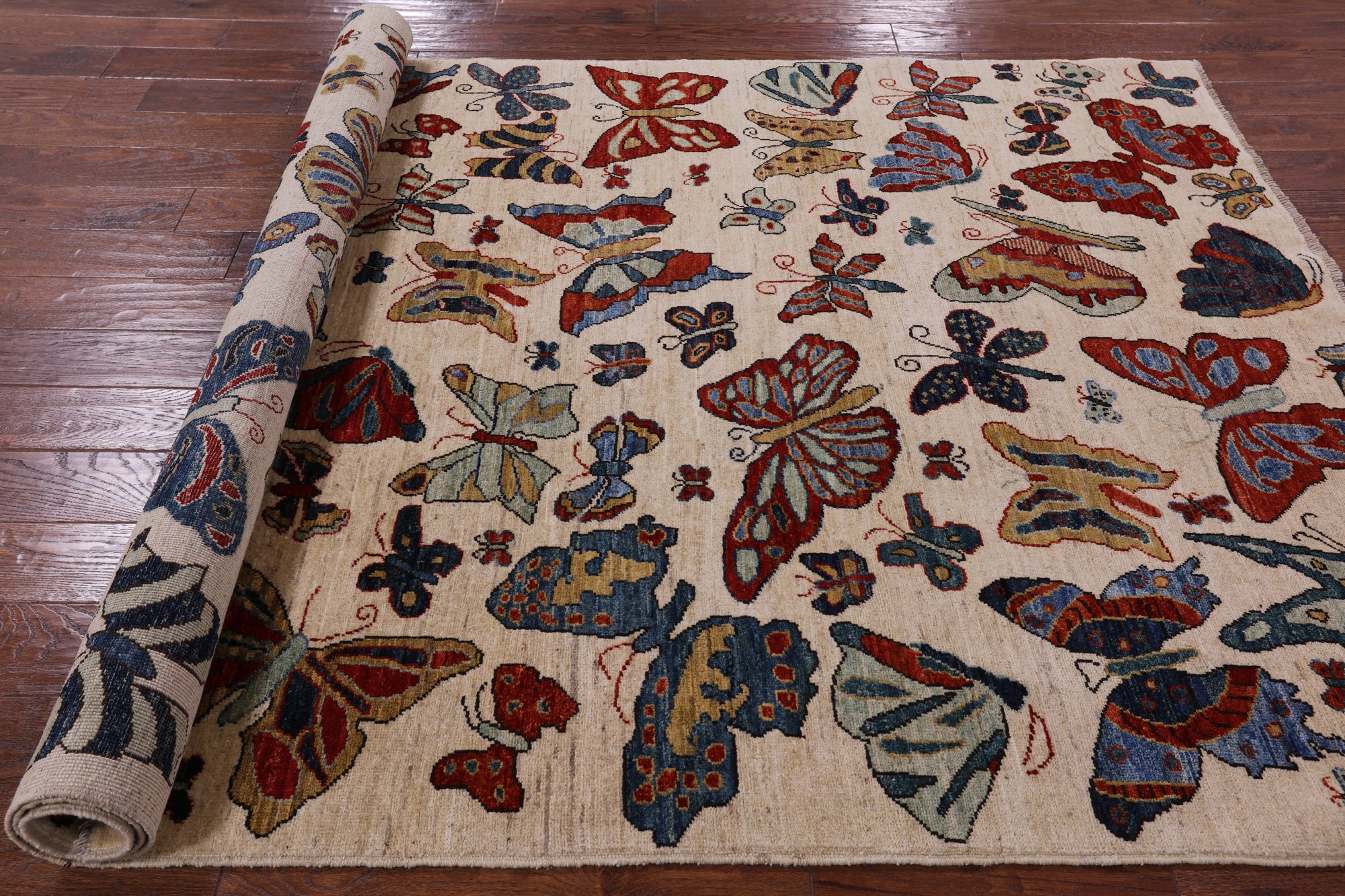 Ivory Butterflies Persian Gabbeh Hand-Knotted Rug 5' 7" X 8' 5" - Q5161 is backordered and will ship as soon as it is back in stock.