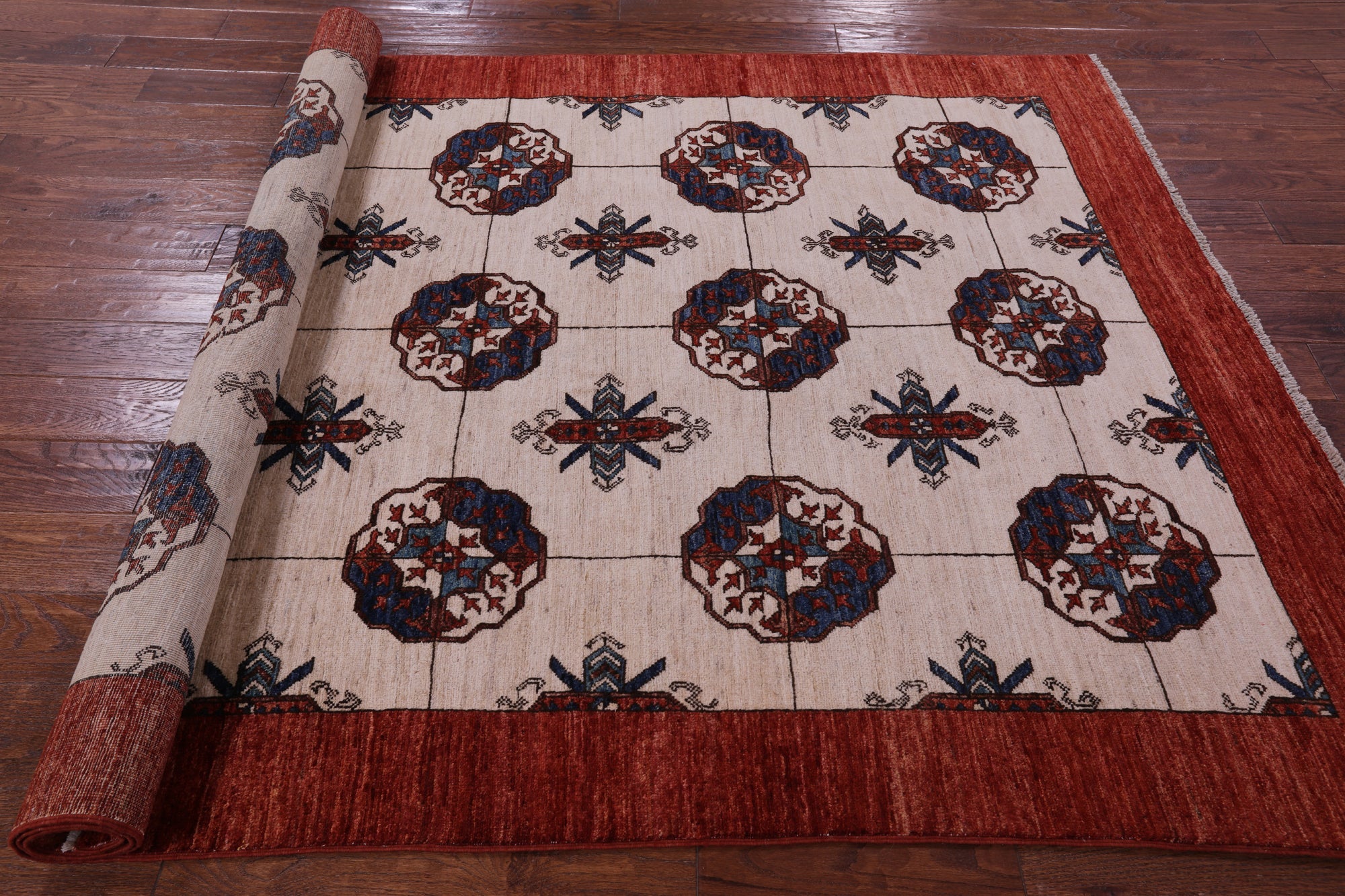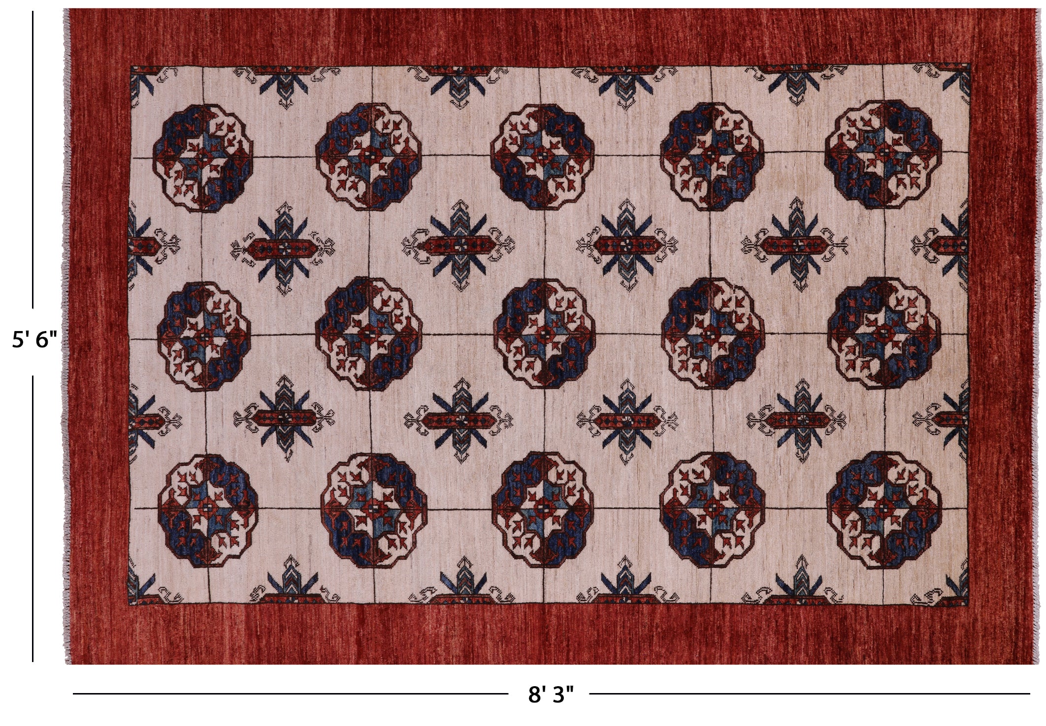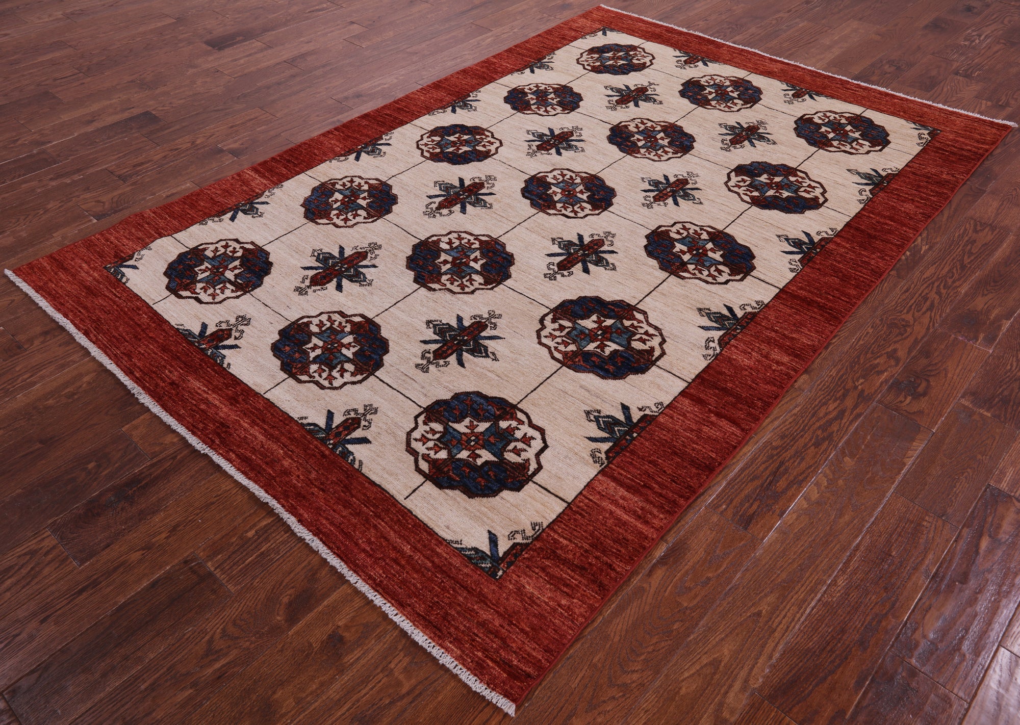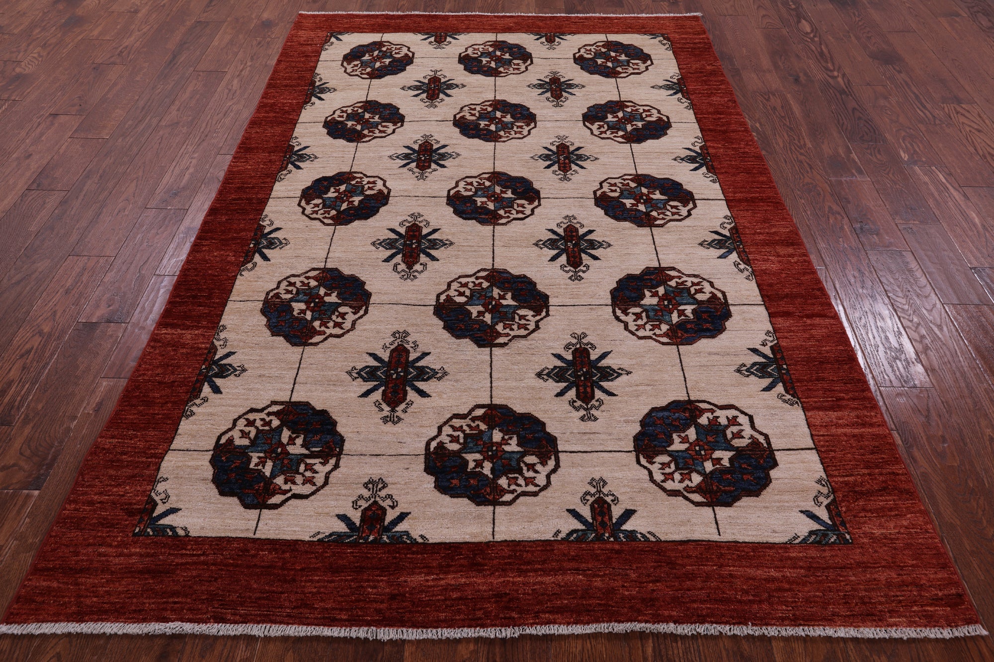 Ivory Fine Turkmen Handmade Wool Rug 5' 6" X 8' 3" - Q18709 is backordered and will ship as soon as it is back in stock.