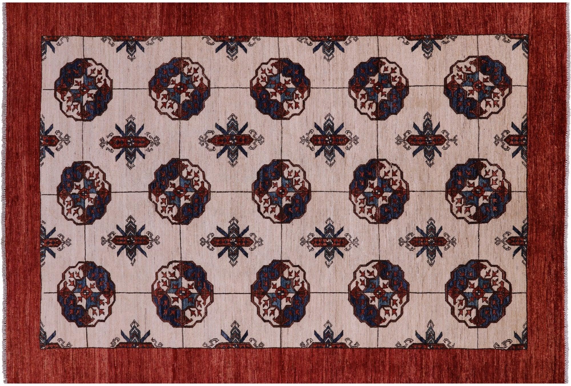 Ivory Fine Turkmen Handmade Wool Rug 5' 6" X 8' 3" - Q18709
