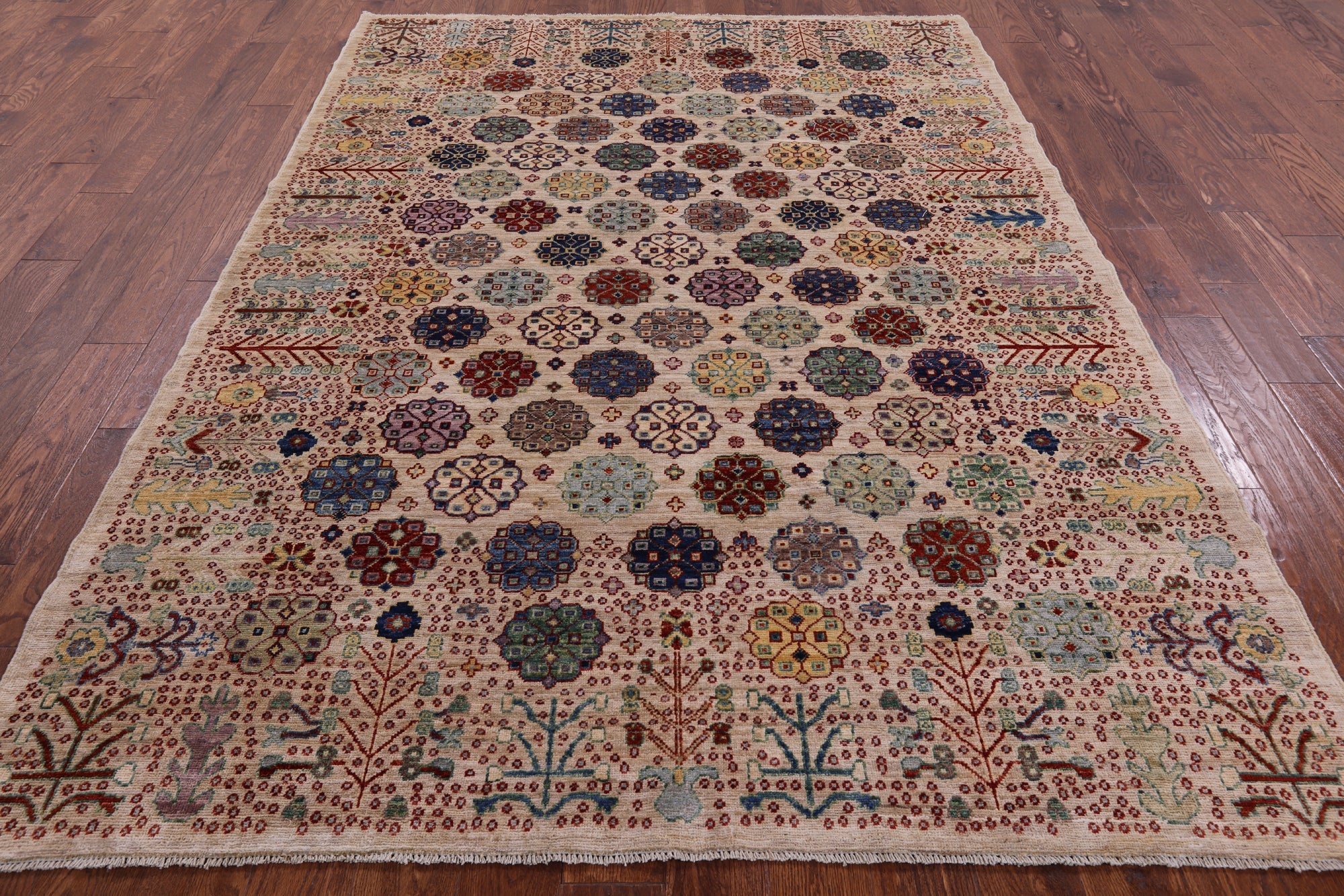 Ivory Fine Turkmen Handmade Wool Rug 6' 4" X 8' 10" - Q5123 is backordered and will ship as soon as it is back in stock.