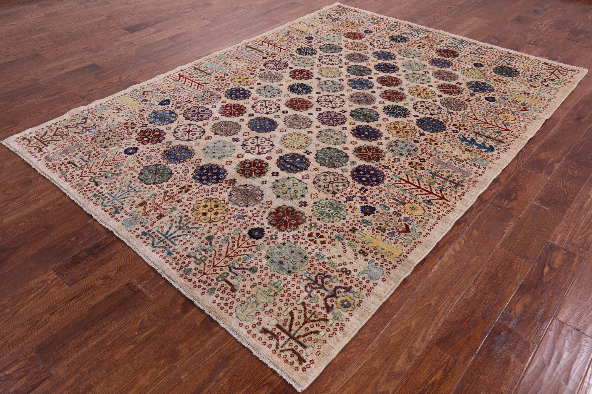 Ivory Fine Turkmen Handmade Wool Rug 6' 4" X 8' 10" - Q5123