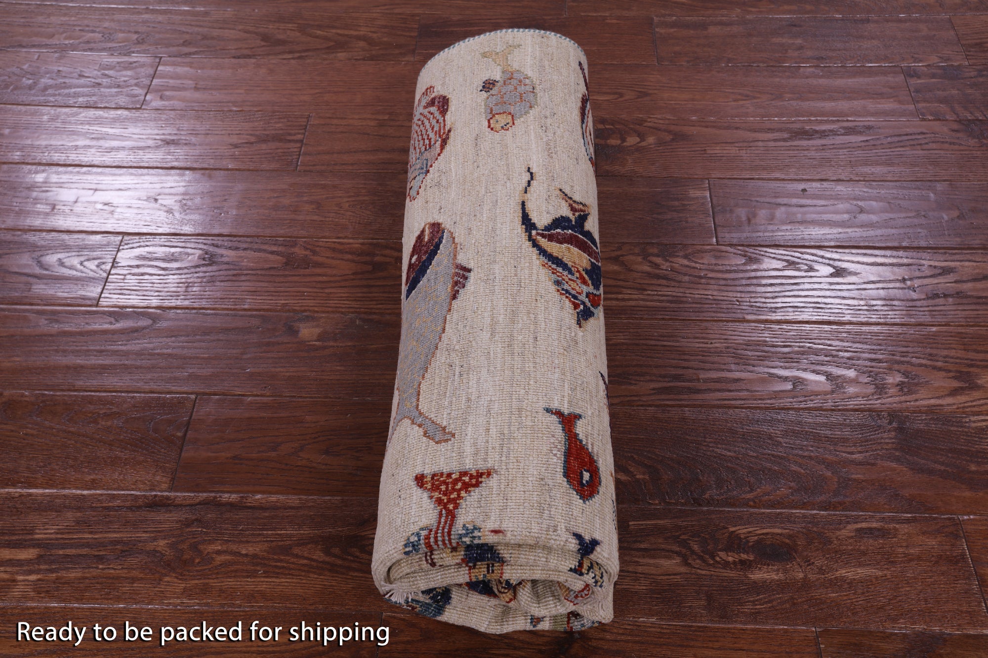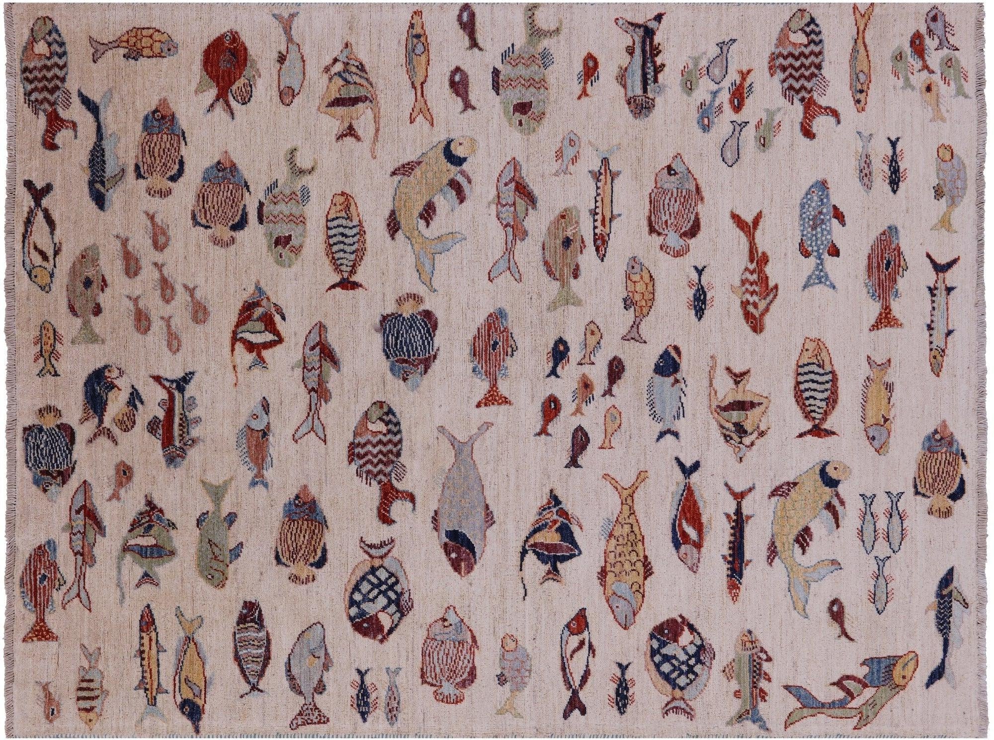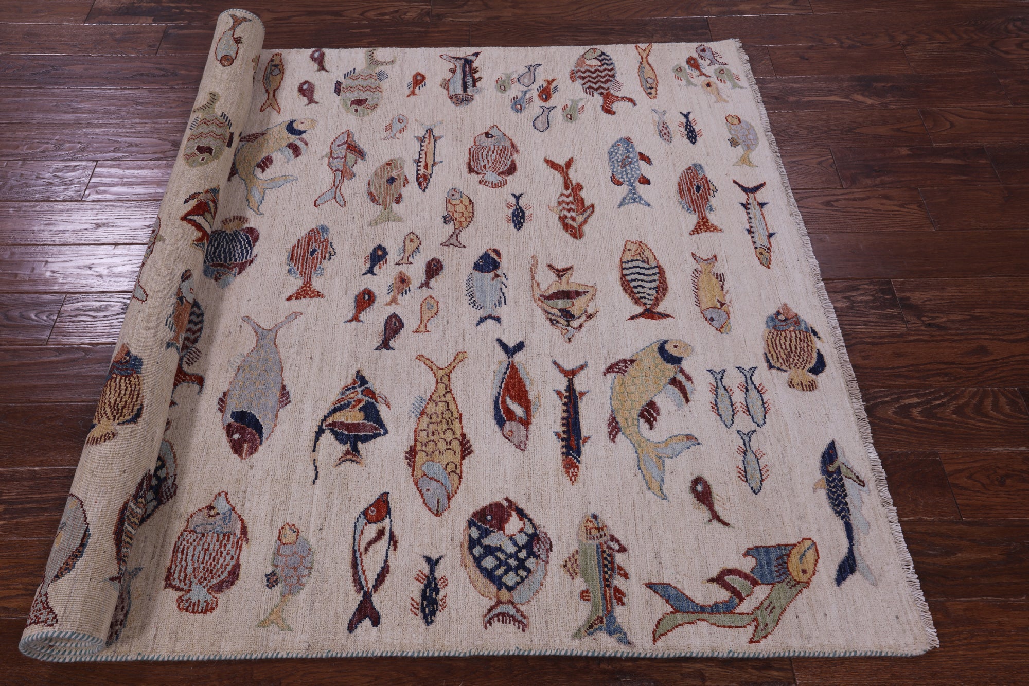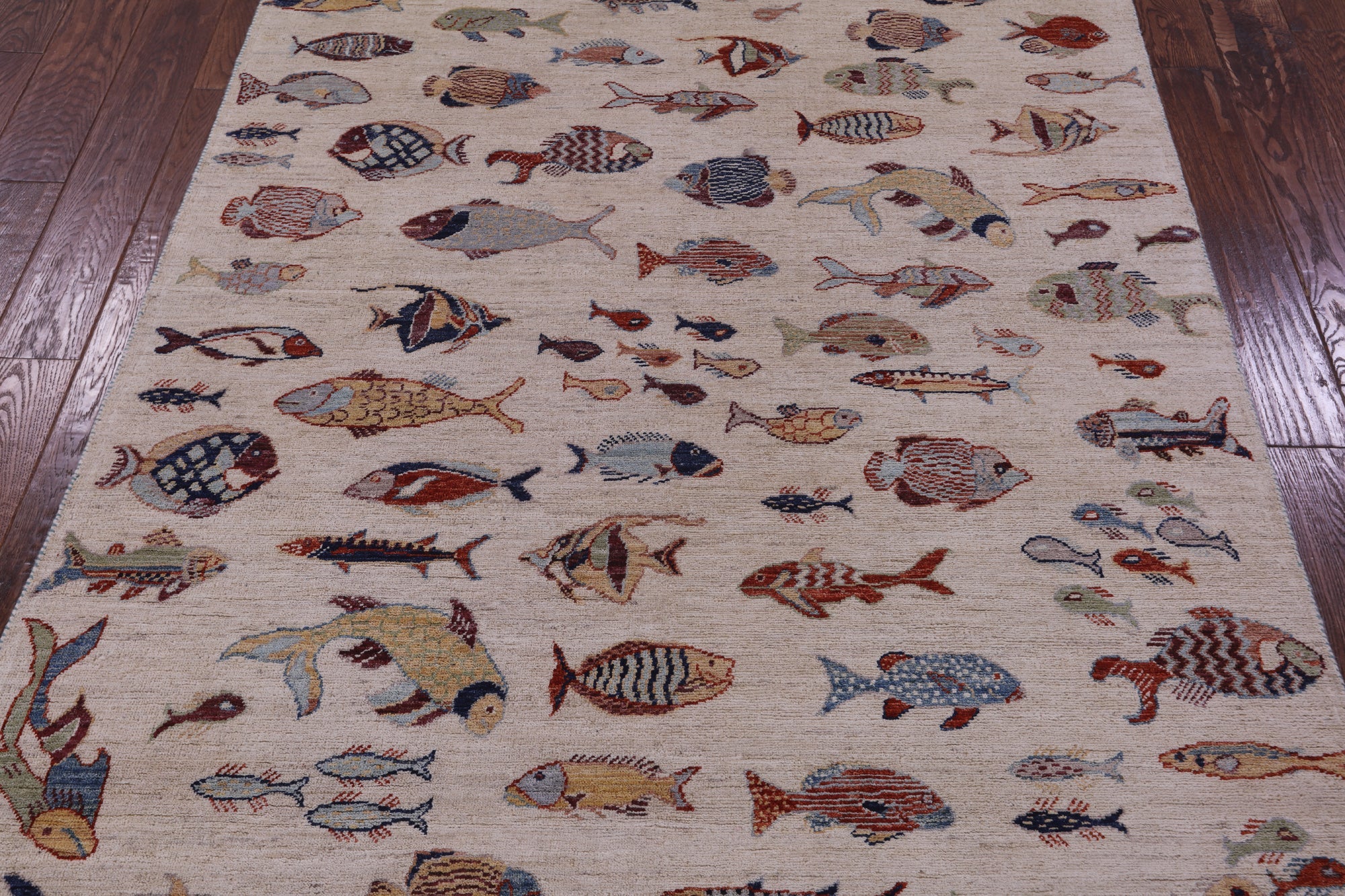 Ivory 4' 10" X 6' 4" Gabbeh Fish Design Hand Knotted Rug - Q21048 is backordered and will ship as soon as it is back in stock.