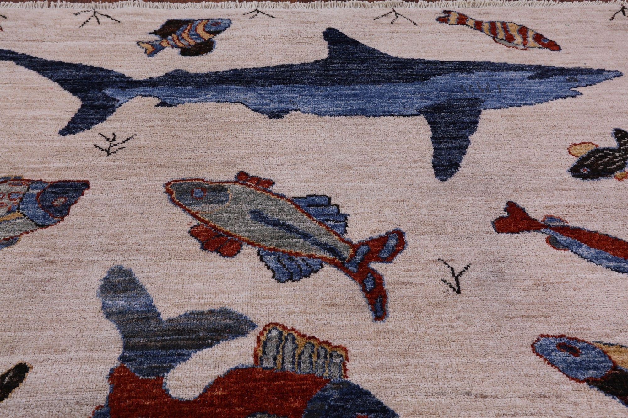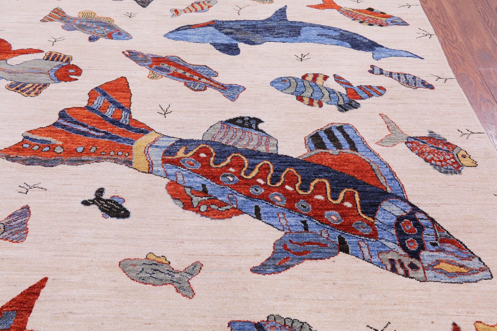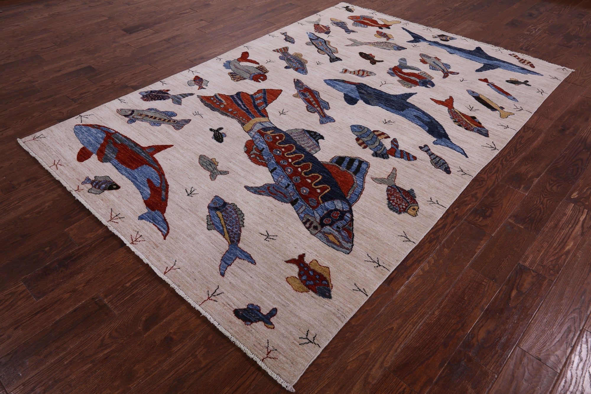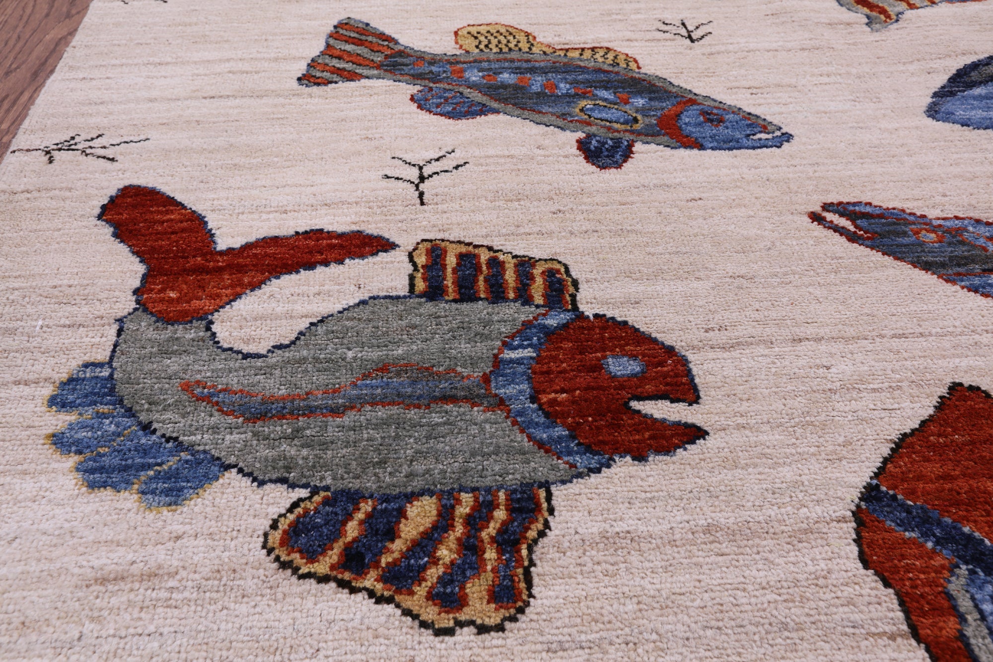 Ivory 6' 0" X 8' 10" Gabbeh Fish Design Handmade Wool Rug - Q10398 is backordered and will ship as soon as it is back in stock.