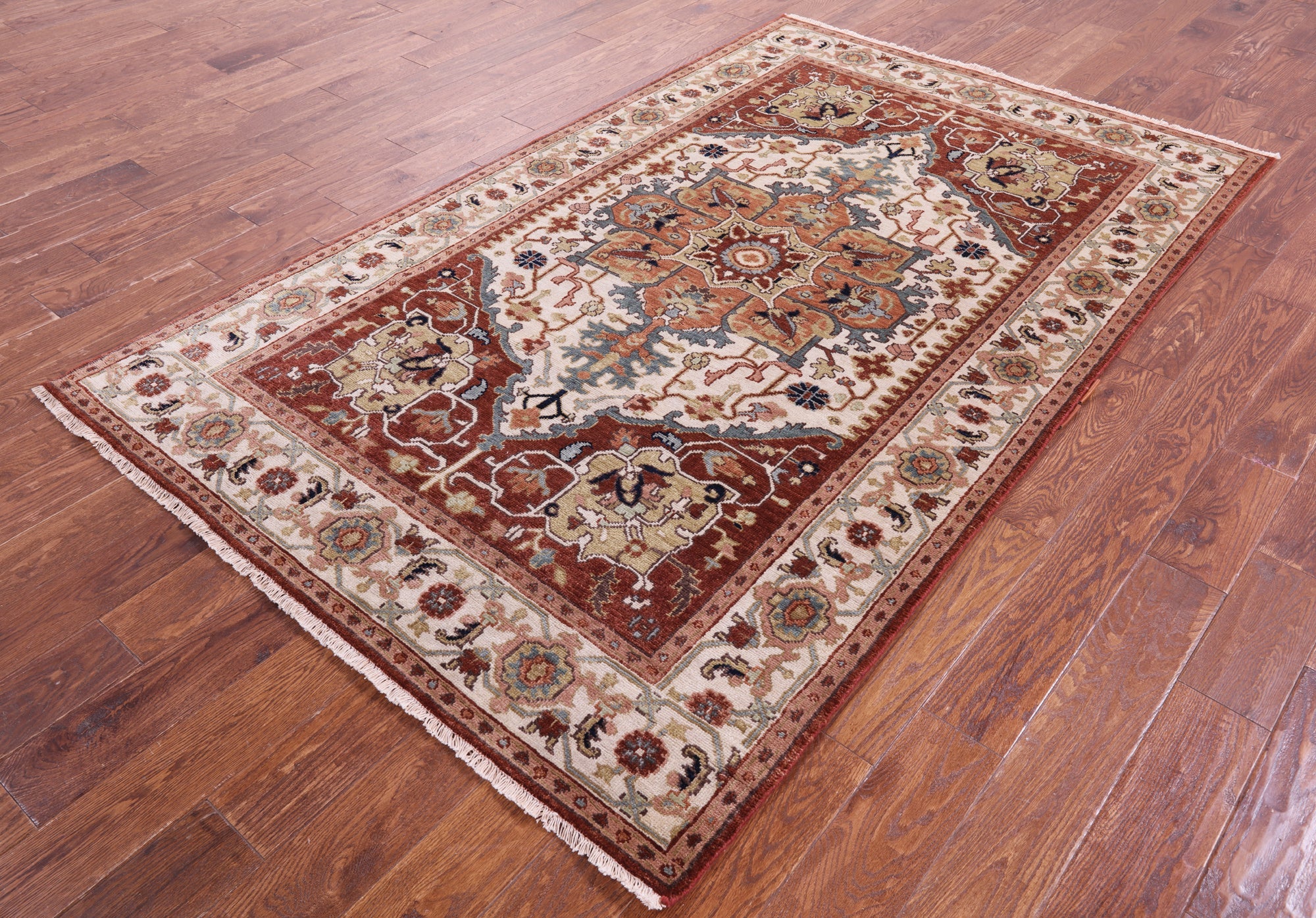 Ivory 4' 11" X 7' 11" Hand Knotted Heriz Serapi Wool Rug - Q19699 is backordered and will ship as soon as it is back in stock.