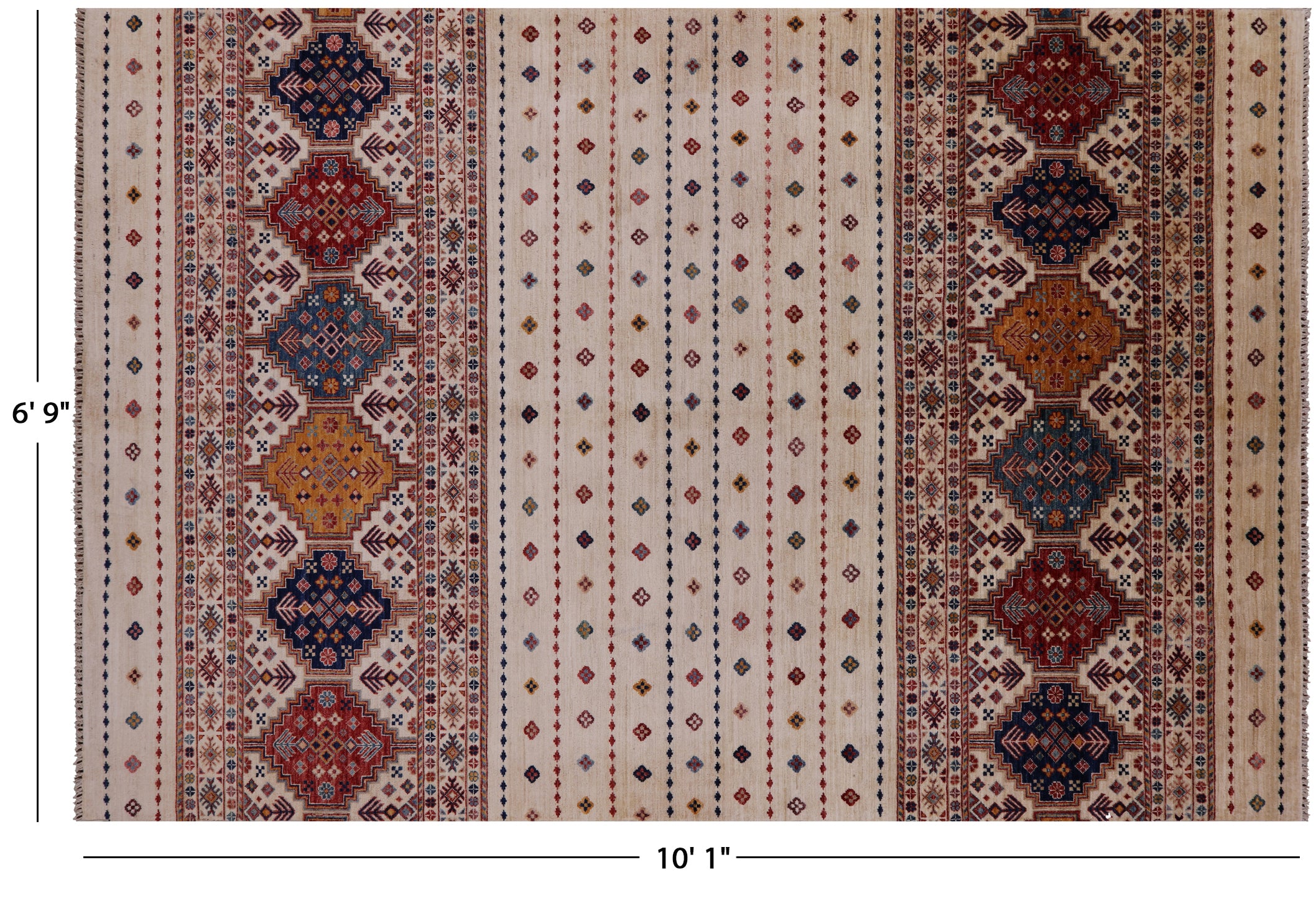 Ivory Hand Knotted Khorjin Super Kazak Rug 6' 9" X 10' 1" - Q10741