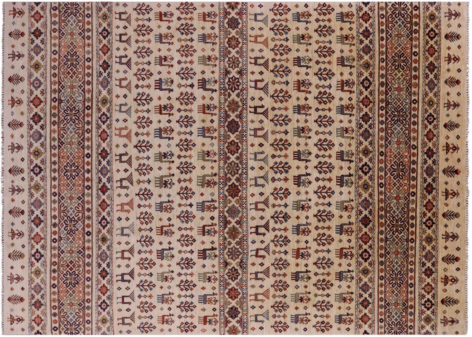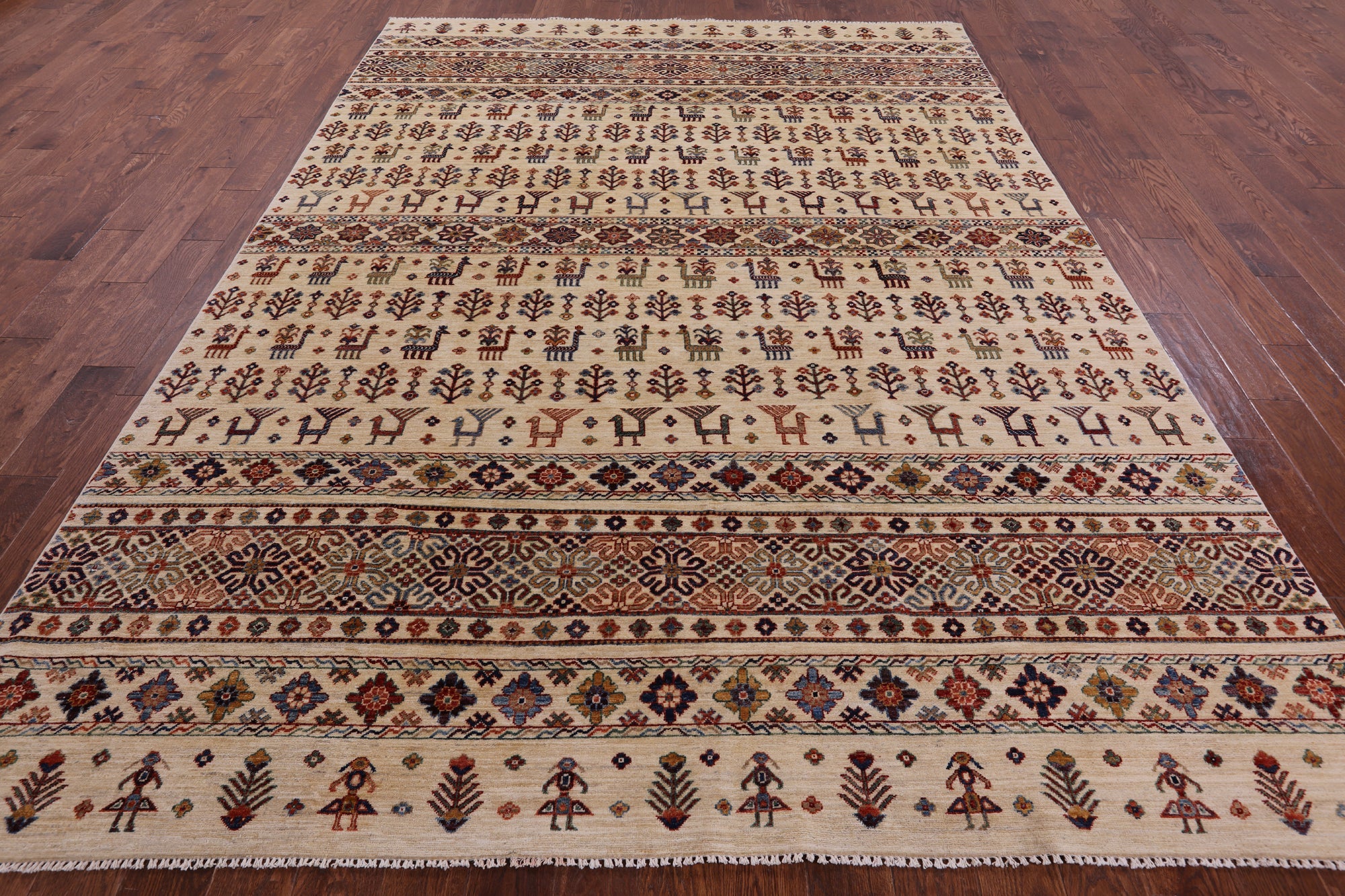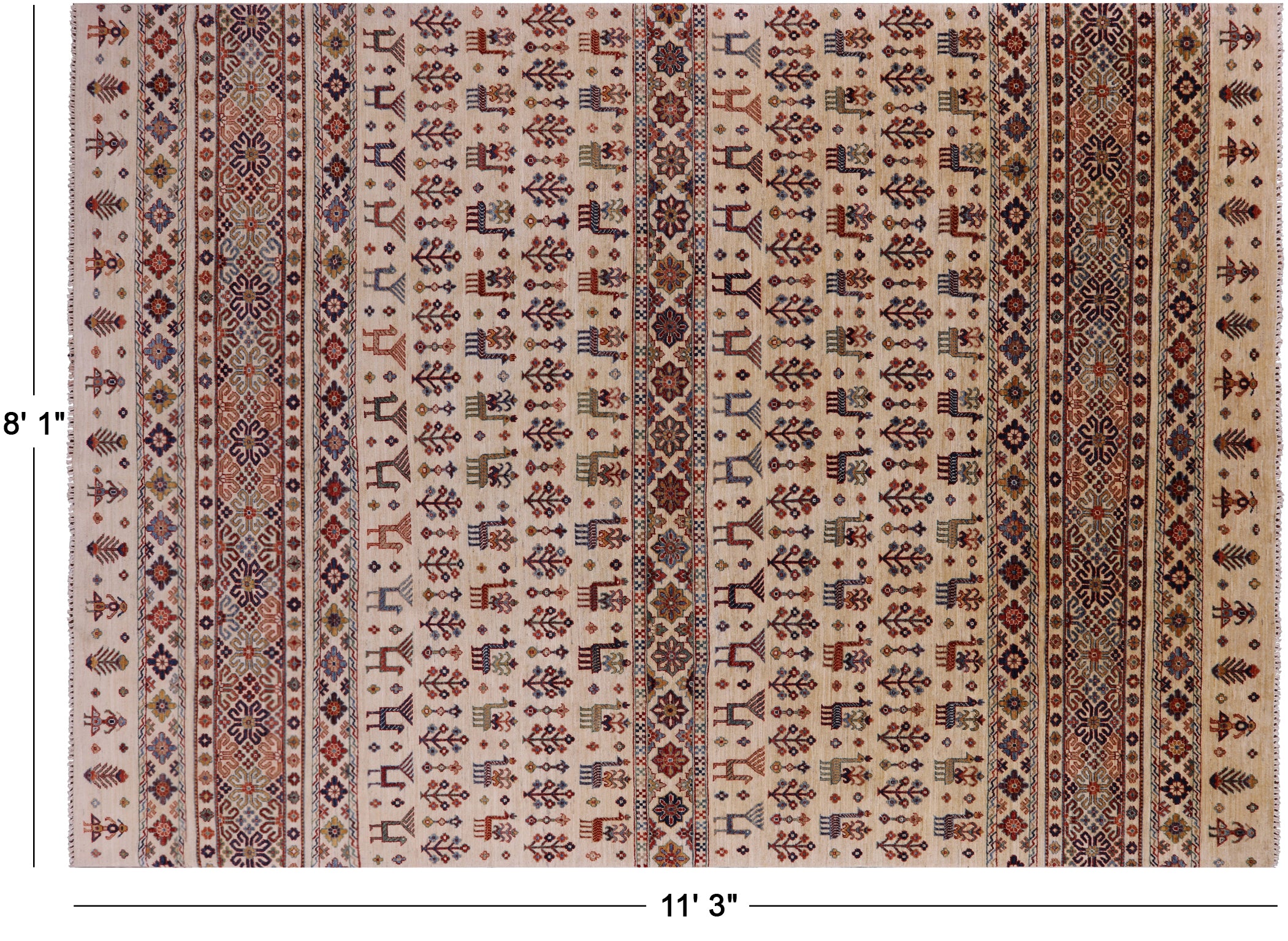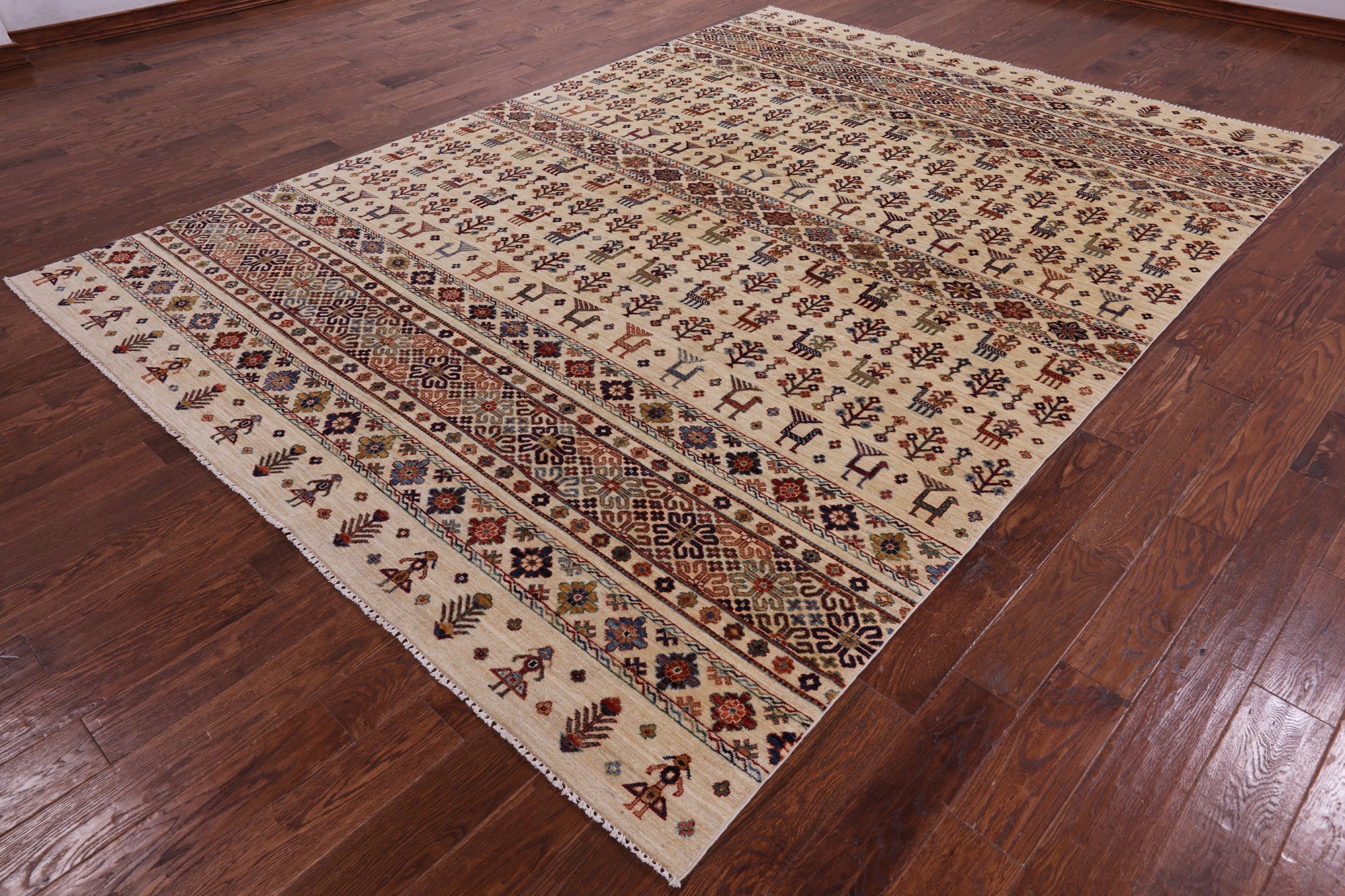 Ivory Hand Knotted Persian Gabbeh Tribal Rug 8' 1" X 11' 3" - Q11128