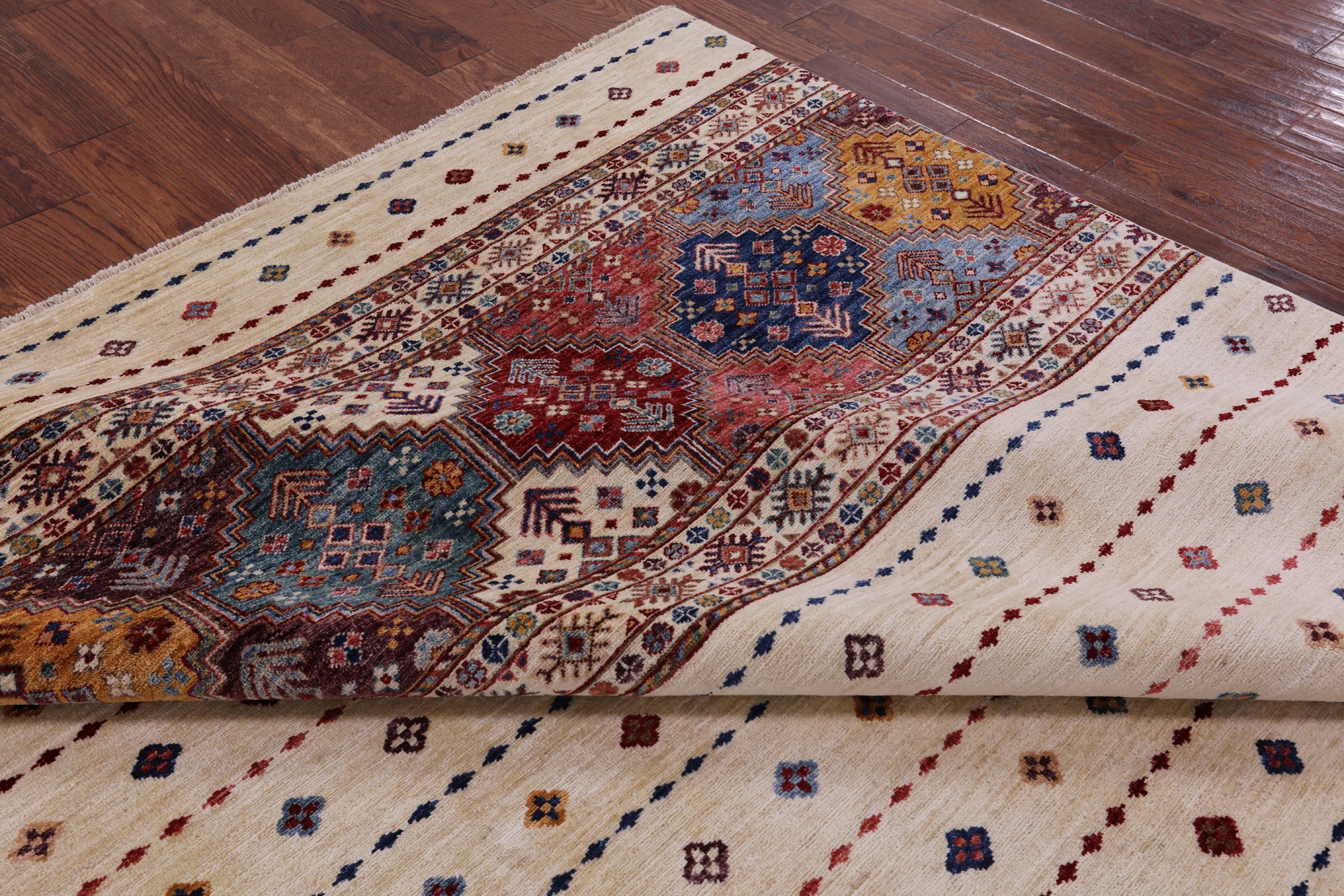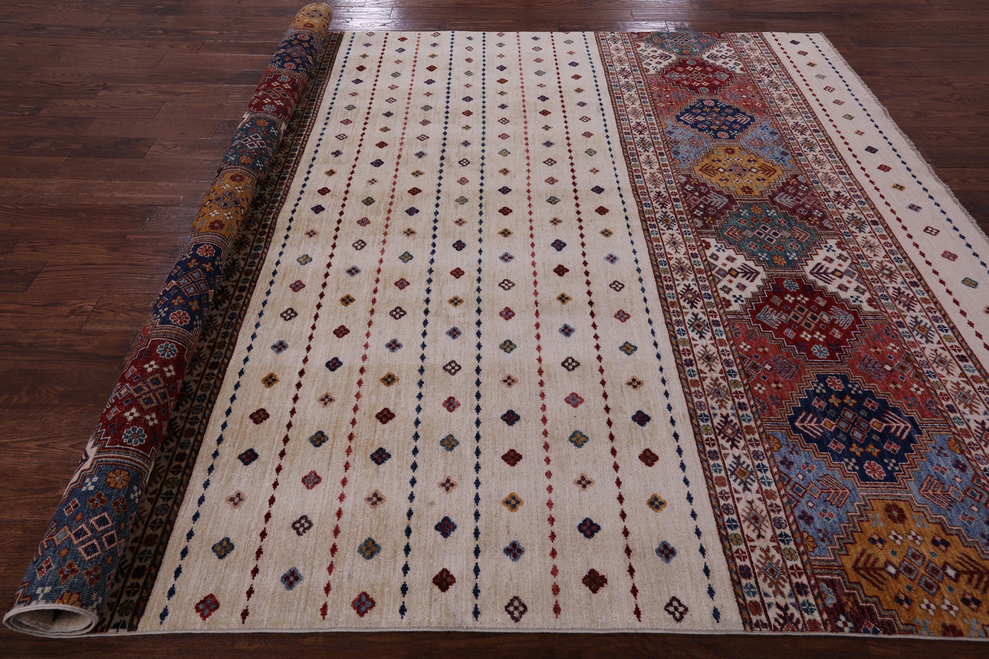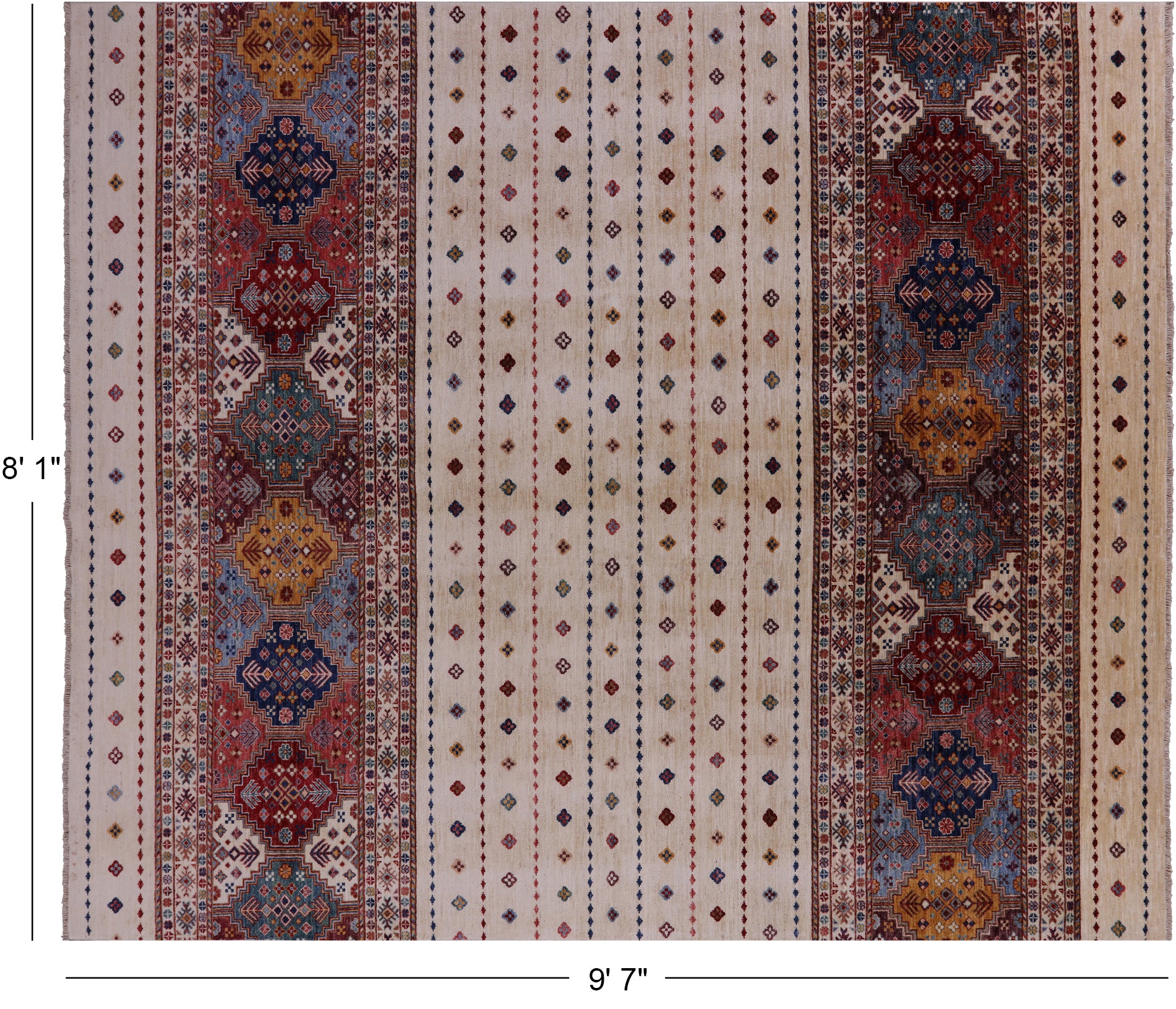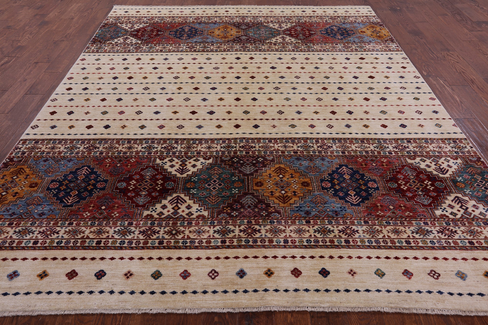 Ivory Handmade Khorjin Super Kazak Wool Rug 8' 1" X 9' 7" - Q5242 is backordered and will ship as soon as it is back in stock.