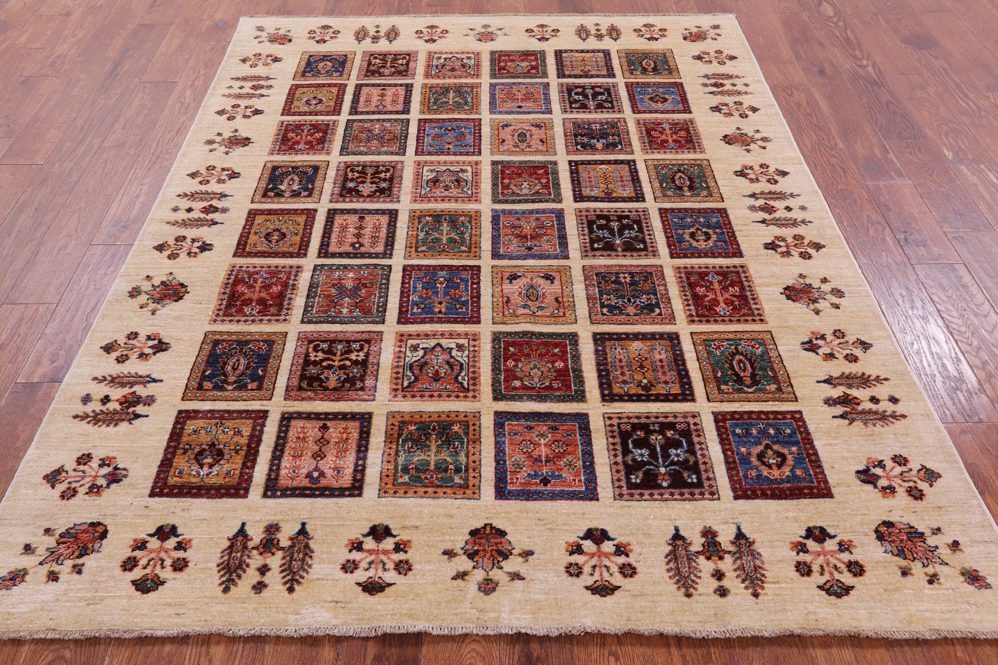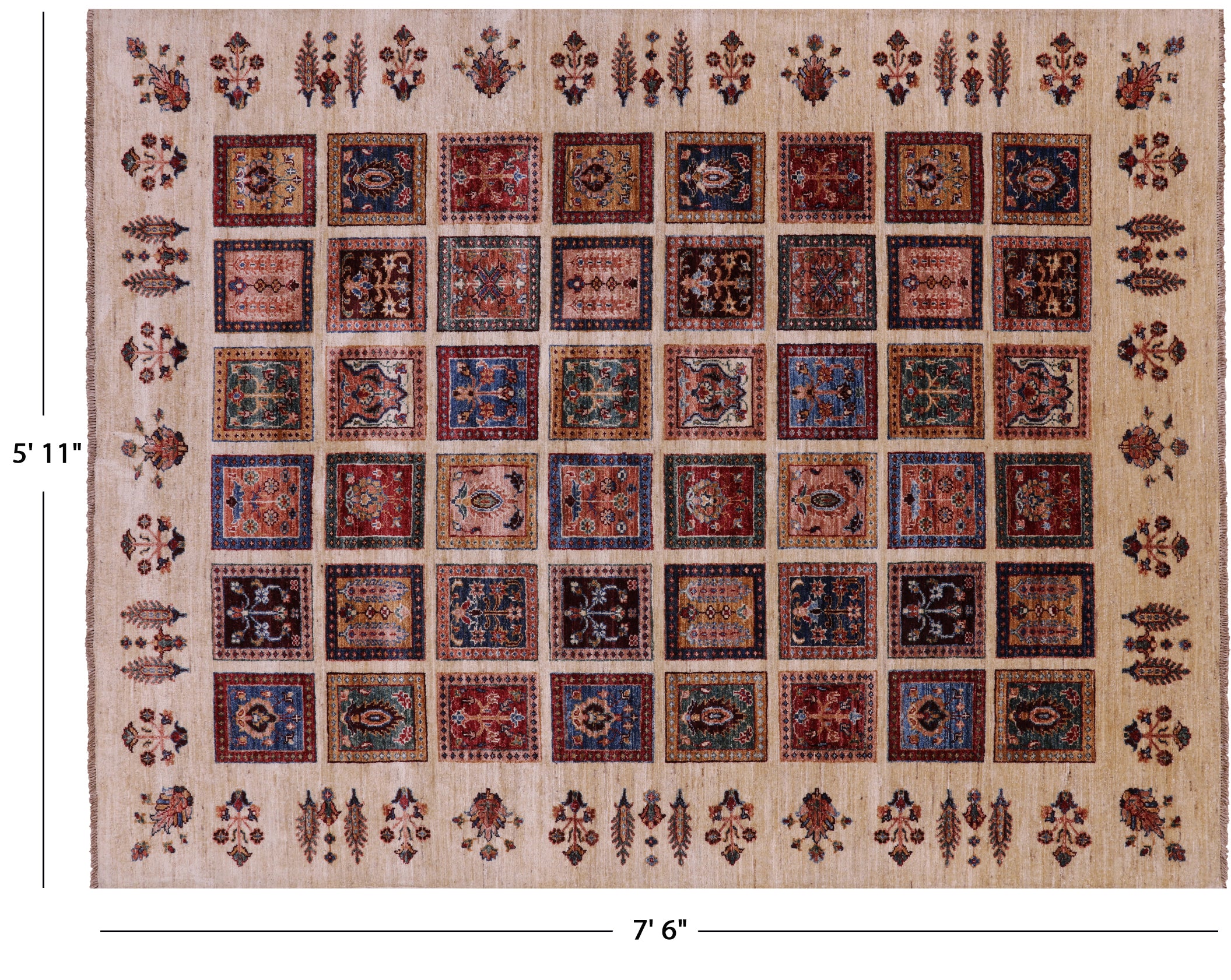 Ivory Handmade Persian Garden Design Wool Rug 5' 11" X 7' 6" - Q18309