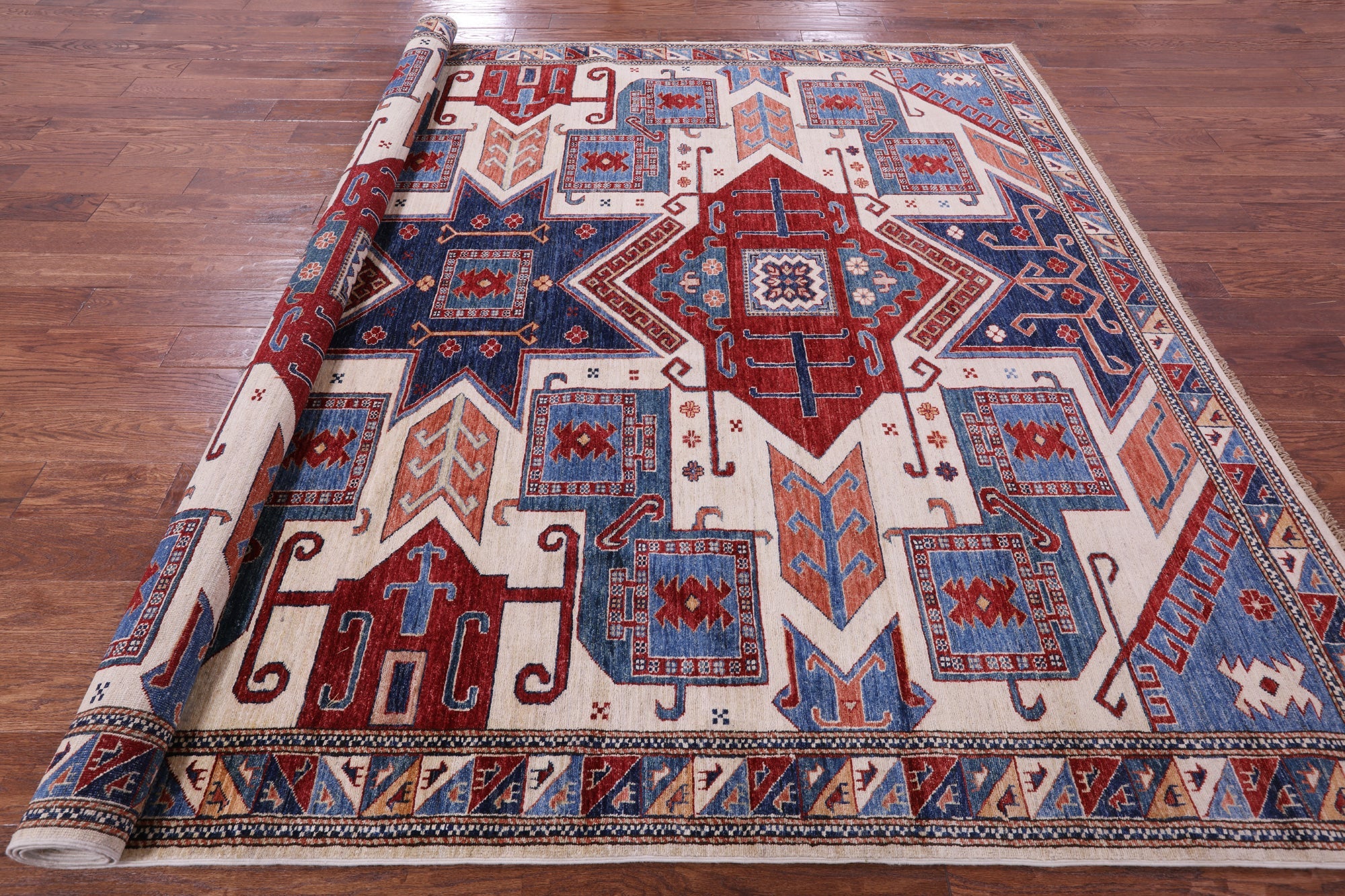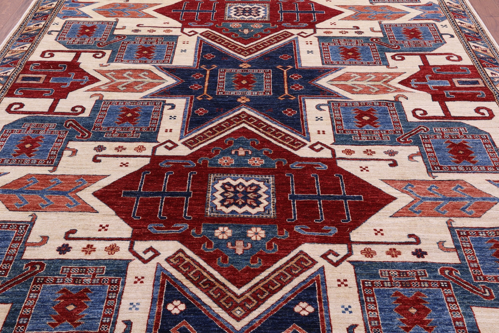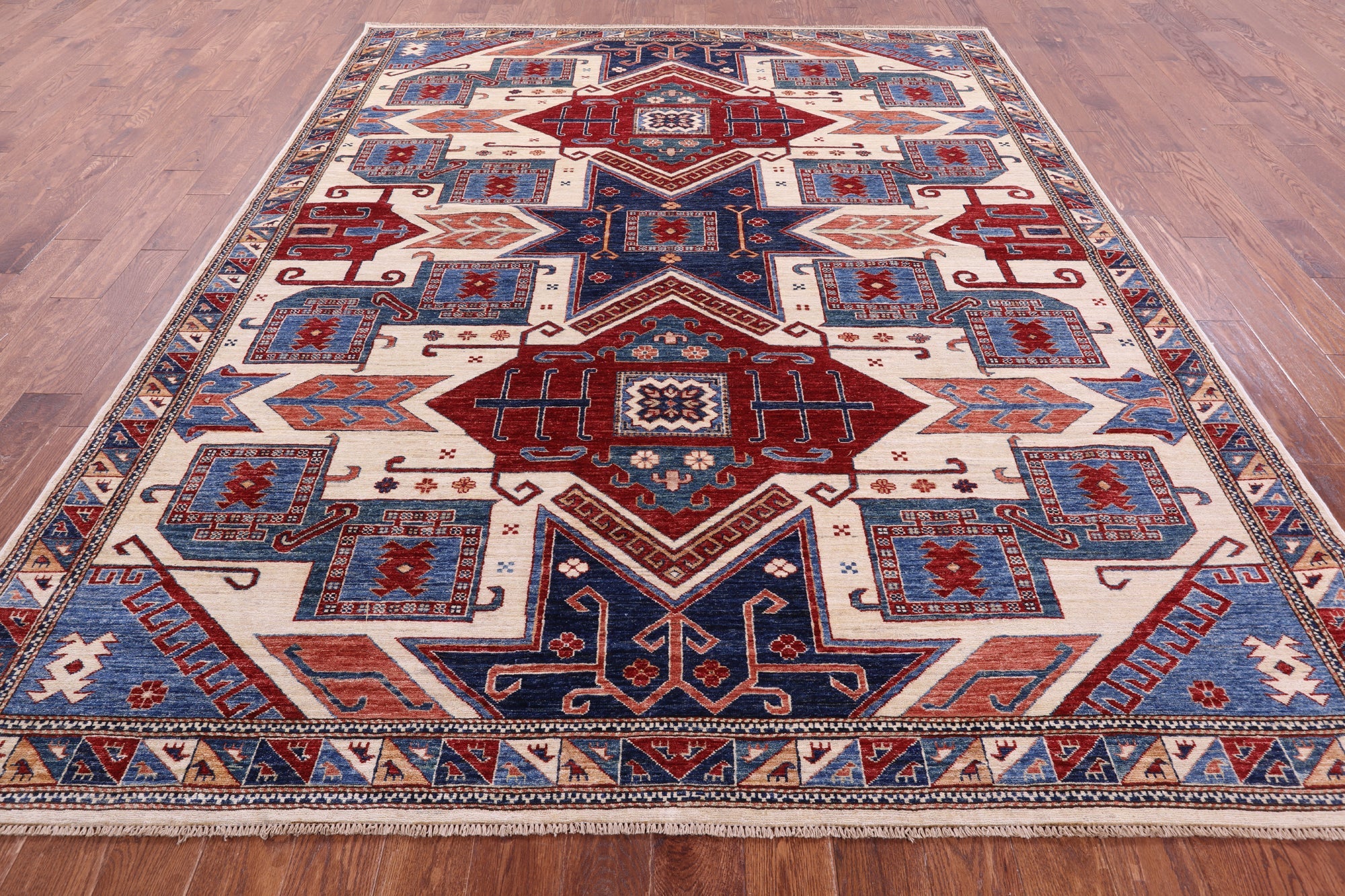 Ivory Handmade Super Kazak Wool Rug 8' 2" X 9' 11" - Q18223 is backordered and will ship as soon as it is back in stock.