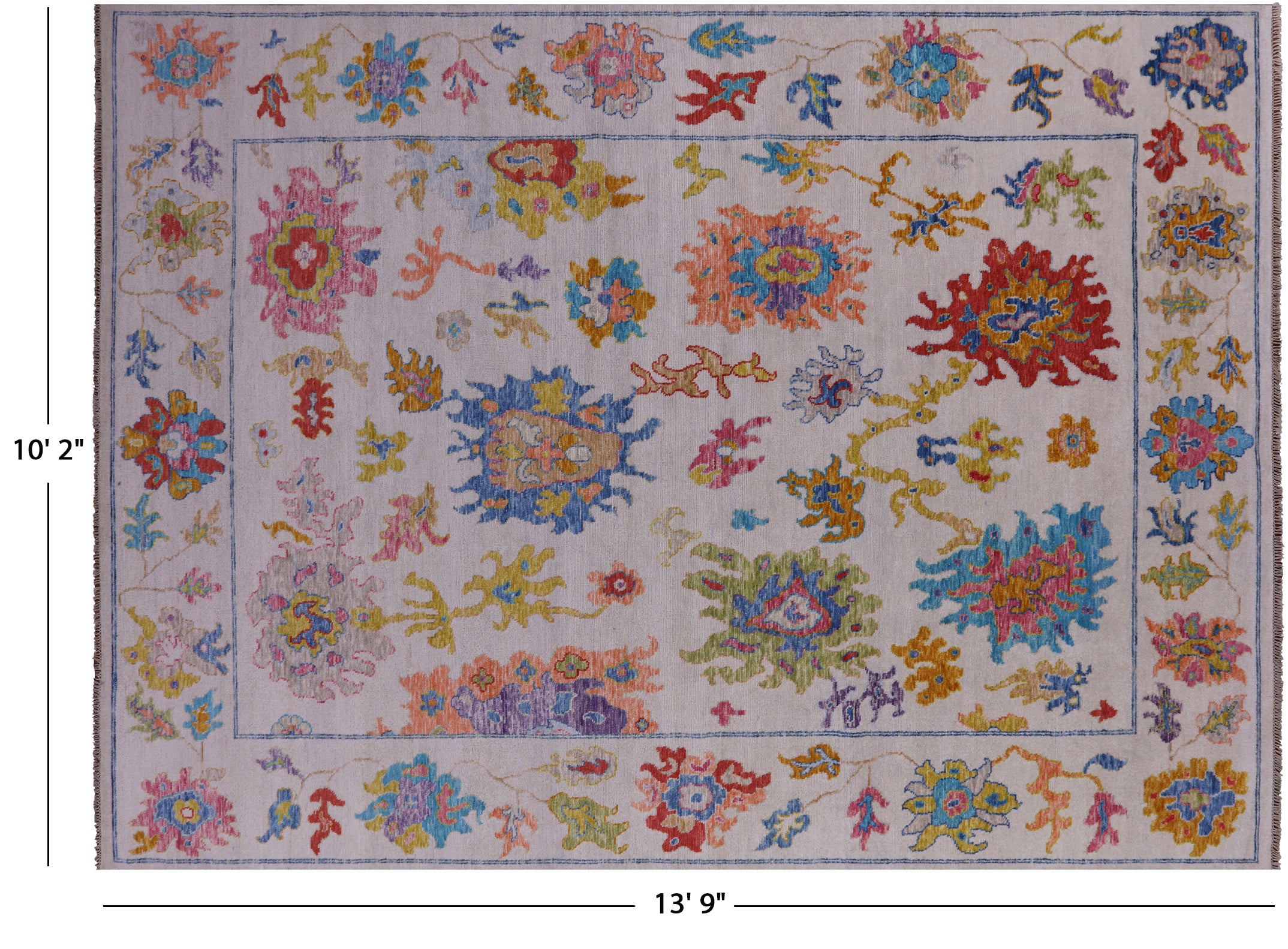 Ivory Handmade Turkish Angora Oushak Wool Rug 10' 2" X 13' 9" - Q14811